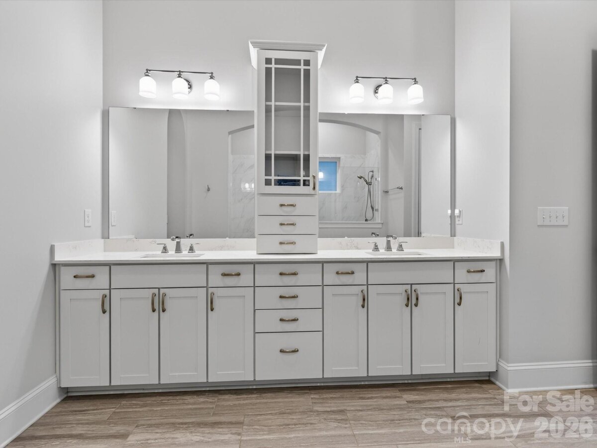 A Designer's personal residence in the heart of Ballantyne, this exceptional home showcased distinctive finishes and thoughtful upgrades throughout. The dramatic open- concept interior features and elegant living room or home office with a beamed ceilings and statement chandelier, setting the tone for refined living. The stunning chef's kitchen is the heart of the home, offering an expansive island with breakfast bar, stainless steel appliances include, a 5 burner gas cooktop with custom range hood, and classic white subway tile extending to the ceiling. A large pantry and convenient laundry room add everyday ease. The dining area flows seamlessly into the light-filled great room with fireplace, opening to a covered porch overlooking a private, fenced backyard- ideal for grilling, entertaining or a quiet retreat. The main- level primary suite features a trey ceiling, generous custom walk in closet, and spa-like bath with an expansive walk-in shower. Upstairs, you'll find two ensuite bedrooms, a spacious bonus and a versatile loft or home office. Additional highlights include HOA-maintained lawn care, plantation shutters, whole- house water filtration, custom wall covering, designer lighting and more. Perfectly located near Ballantyne Village, Ballantyne Bowl, the Ballantyne YMCA, shopping, dining and with easy access to I-485, this designer gem truly has it all. WELCOME HOME
