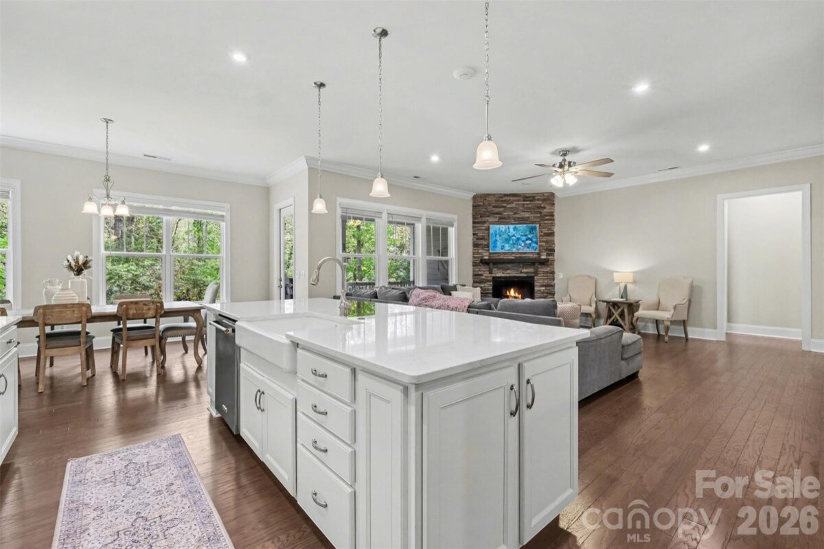 Welcome to 113 Cross Current, an exceptional residence in McLean–South Shore, a sought-after waterfront community offering lake access, a private kayak launch, and resort-style amenities that define effortless luxury living. Ideally located near Charlotte, Charlotte Douglas International Airport, and the charm of nearby Belmont and Daniel Stowe Conservancy, this home delivers the perfect balance of convenience and retreat, with marinas and waterfront recreation just moments away. Thoughtfully designed and meticulously maintained, this home features a refined yet highly livable floor plan anchored by a main-level primary suite. Each bedroom offers direct access to a bathroom and walk-in closet, providing comfort and privacy for family and guests alike. Expansive living areas and versatile flex spaces create endless possibilities for entertaining, working from home, or simply relaxing in style. The home is further enhanced by a whole-house reverse osmosis water filtration system, delivering exceptional water quality throughout. The gourmet kitchen is a true centerpiece, showcasing an oversized island, butler's pantry, and seamless flow into the main living spaces. The open floor plan, striking stone fireplace, and built-in drop zone add both character and everyday functionality. The main-level primary suite offers a luxurious retreat, complete with a custom walk-in closet featuring a center island. Abundant easily accessible storage throughout and a spacious three-car garage with over-sized driveway for onsite parking further enhance the home’s practicality. Step outside to the inviting covered porch with ceiling fan and a private, level backyard framed by mature trees, where a fire pit invites quiet evenings and gatherings under the stars. A rare opportunity to own a home that perfectly blends timeless design, modern convenience, and an elevated waterfront lifestyle.