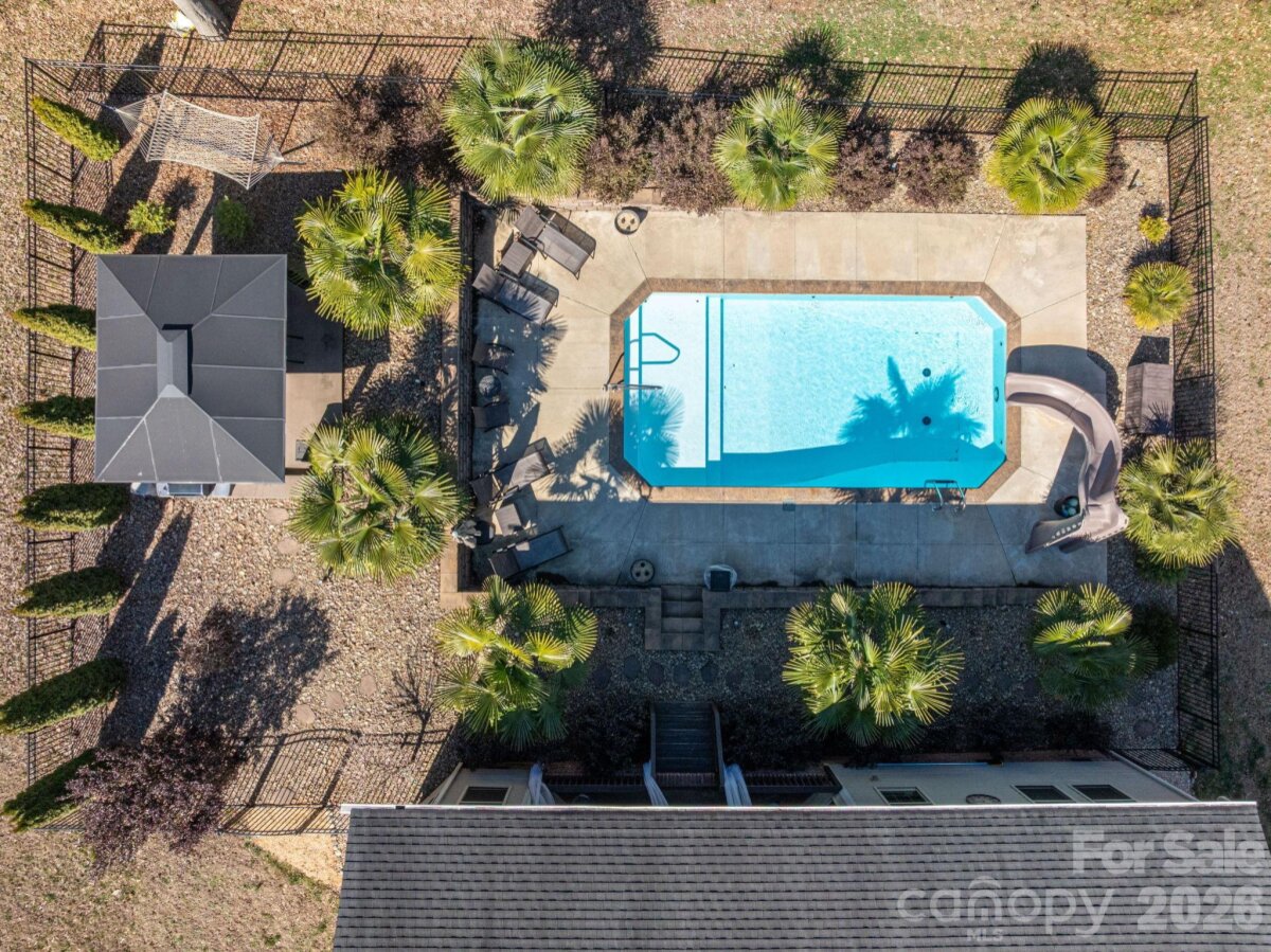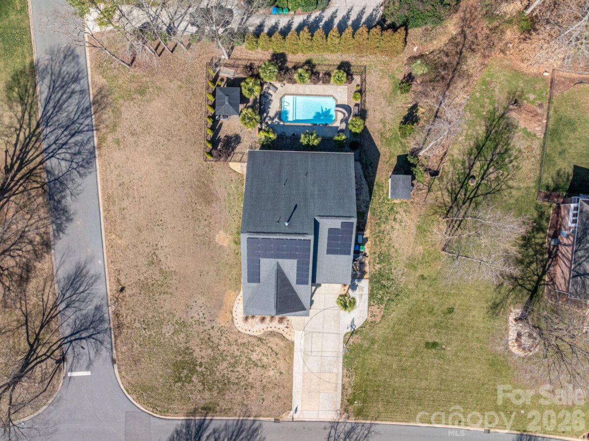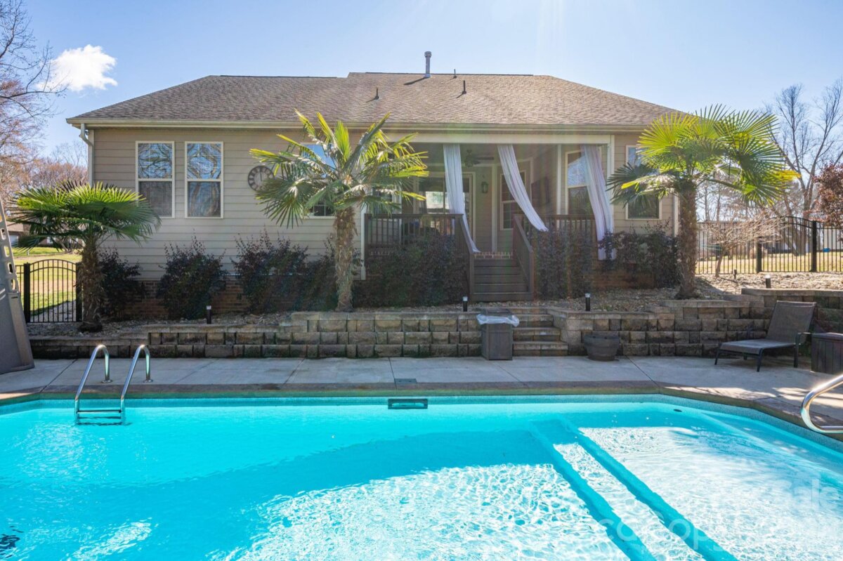 Say goodbye to restrictive fees and hello to your own private paradise! Located in the desirable Timberlake community, this uniquely designed home offers the ultimate indoor-outdoor lifestyle. The star of the show is the backyard pool oasis, featuring a sparkling pool surrounded by an expansive lounging area. Whether you're relaxing under the massive covered pergola or grilling on the attached covered back patio, this space is a dream for summer entertaining—complete with extra dedicated parking to accommodate all your guests during those long days and nights of fun. Inside, the open-concept floor plan is anchored by a cozy fireplace visible from both the den and dining areas. The chef’s kitchen is a true centerpiece, fully equipped for hosting with a gas cooktop, double wall ovens, a wine fridge, and two additional mini-fridges for effortless beverage service. The main level features a sought-after split-bedroom plan for maximum privacy. The primary suite is a sophisticated sanctuary, boasting elegant hardwood floors, a tray ceiling, and a beautifully designed walk-in tile shower and large customized closet. Upstairs, discover a versatile retreat with a large bonus room (being used as a bedroom now), an additional bedroom, and a full bath—perfect for guests or a home office. Solar panels cover 50% of electric bill! All of this is just minutes from the boutiques and bistros of Belmont and Cramerton, with an easy 20-minute commute to Charlotte!