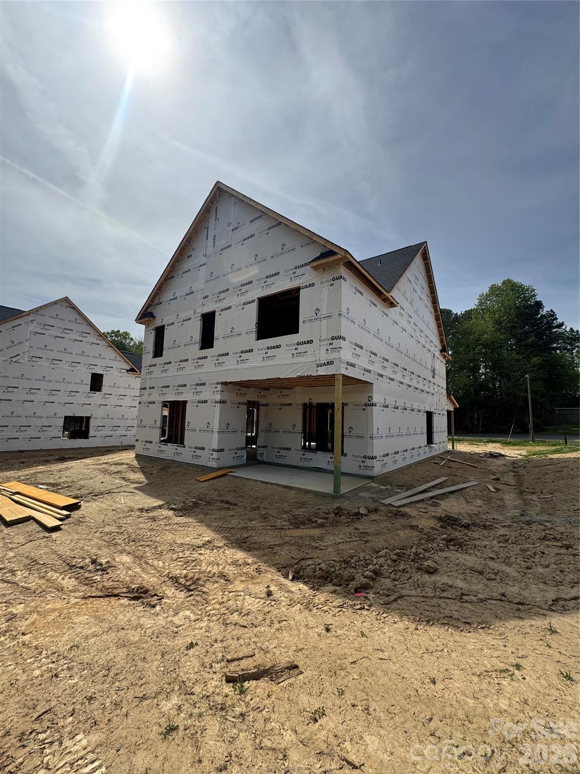 Welcome to 205 Parkdale Drive, a beautifully designed new construction home in Belmont offering 4 bedrooms, 3 full baths, and 2,986 square feet of thoughtfully crafted living space on a generous 0.56-acre homesite. Located approximately one mile from downtown Belmont, you’ll enjoy convenient access to local shops and dining. The exterior showcases James Hardie lap and board-and-batten siding in Pewter Green, accented by Centurion Grey ledgestone and rustic black architectural shingles for a timeless yet modern curb appeal. A covered front porch creates a warm and inviting entrance, while the rear covered porch provides the perfect space for outdoor entertaining or relaxing evenings at home. Inside, a light and airy palette sets the tone with Pure White walls, crisp trim, and cove crown moldings. Hand-scraped engineered hardwood floors flow throughout the main living areas, adding warmth and character. The two-story layout offers a functional and flexible design, including a main-level primary suite along with an additional bedroom and full bath ideal for guests or a home office. The kitchen serves as the heart of the home, featuring white shaker cabinetry, glass-front upper cabinets with LED lighting, quartz countertops including a striking Sahara Quartz island and Marengo Quartz perimeter surfaces, and a classic white subway tile backsplash. A KitchenAid appliance package and chrome Moen fixtures complete this beautifully appointed space. The family room centers around a ledgestone fireplace with a cedar mantle, and upgraded iron balusters enhance the architectural detail of the staircase. The primary suite offers a spa-inspired retreat with quartz countertops, white shaker cabinetry, framed mirrors, chrome fixtures, and a tiled shower finished in matte porcelain with basketweave accents. With a two-car attached garage, quality finishes throughout, and a prime location just minutes from the heart of Belmont, this home perfectly blends style, comfort, and convenience.