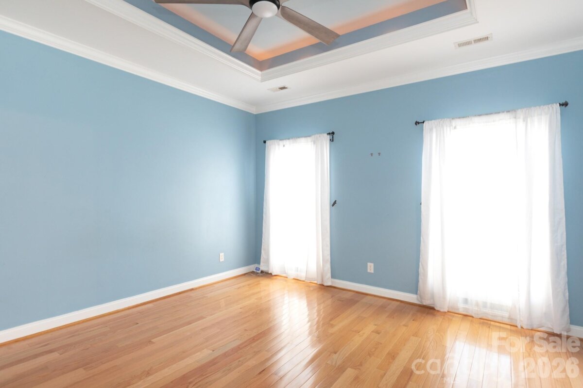 This home has everything on your wishlist. The primary bedroom is on the main level with a beautiful trey ceiling, walk-in closets and double vanities. Across the living area you will find two additional bedrooms. The kitchen has a beautiful and timeless design with a breakfast nook and separate formal dinning area. Upstairs you will find a massive bedroom/flex space (16x24) with a oversized closet and ensuite bathroom. You will spend as much time outdoors here as you do inside! The new screened-in patio overlooks a private serene backyard with a heated saltwater pool and spa. You will have an additional detached garage providing an opportunity for extra storage, gym or whatever you need. Come tour today!