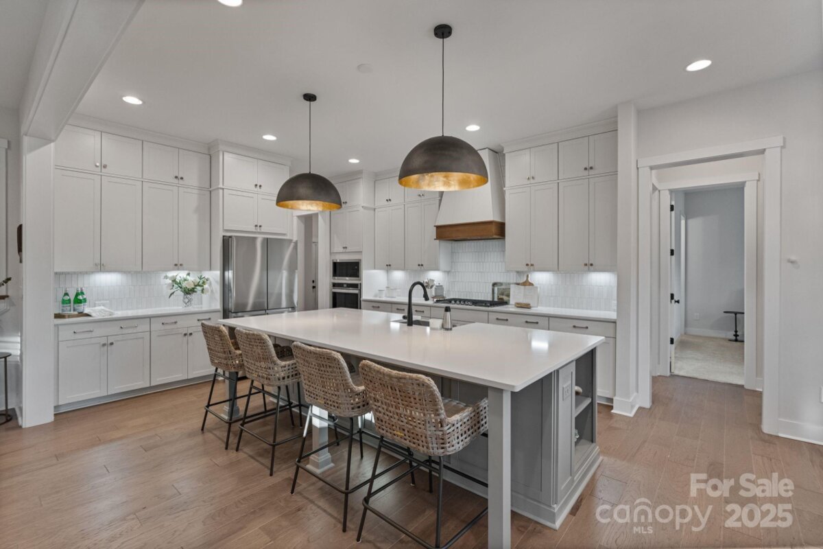 Welcome home to Paddlers Cove in Lake Wylie — where charm meets modern luxury. This residence features one of the largest and most luxurious floor plans in the community, built by Fielding Homes with every available upgrade, then enhanced with additional premium finishes and thoughtful design. From the chef’s kitchen with custom cabinetry, abundant storage, and an oversized island, to the Butler’s pantry with wood shelving, and the open living area with a gas-tiled fireplace — every space was created for connection and comfort. Upstairs, the expansive media and living spaces offer both excitement and retreat, while the extended covered porch invites evenings by the fire and effortless entertaining. With five bedrooms, custom built-in closets in every room, and a 2-car garage that accommodates three vehicles with epoxy flooring and organized storage, this home defines effortless elegance and Southern living at its finest.