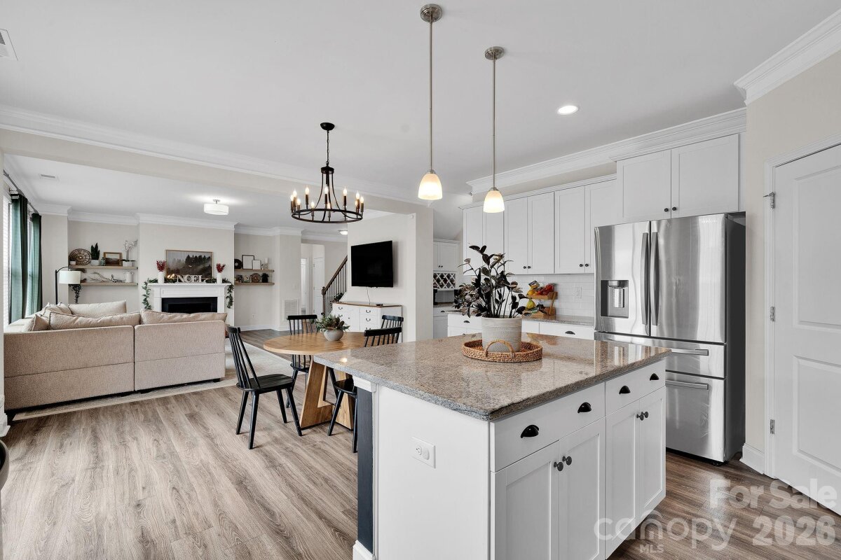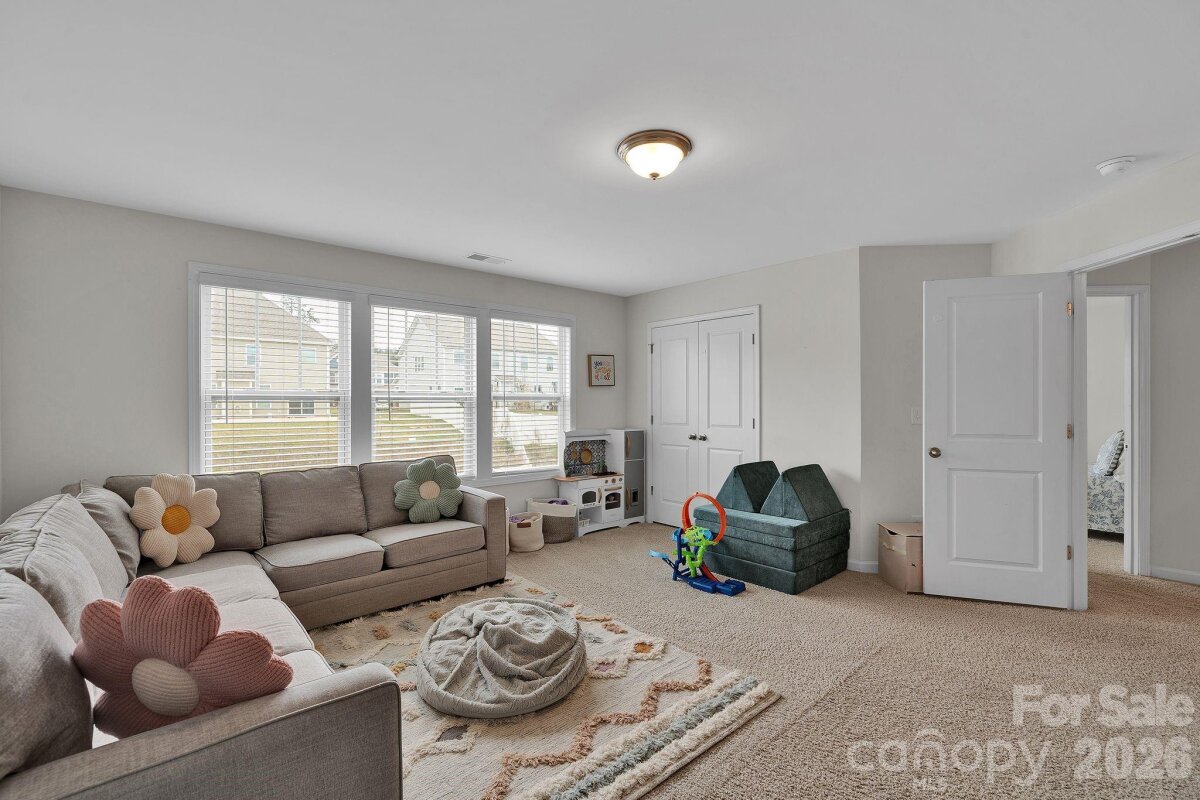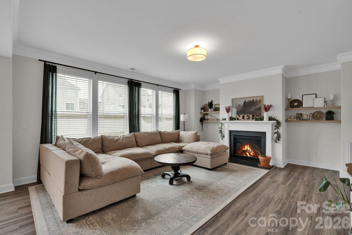 Welcome to Cypress Point! This spacious two-story home offers over 3,500 square feet with 5 bedrooms and 4 full bathrooms. The main level features an open floor plan with luxury vinyl plank flooring, a dining room with coffered ceiling, a private office, and a bedroom with a full bath attached. The kitchen includes granite countertops, stainless steel appliances, a large island, and a butler’s pantry, opening to the living area with a gas fireplace. Upstairs, the primary suite is accompanied by additional bedrooms, bathrooms, and a versatile loft space that can be used as a flex room, office, or additional sleeping area. Outdoor living includes a fenced backyard with an extended patio and fire pit area. The home sits on a cul-de-sac lot and includes a two-car attached garage. Community amenities include pool, playground, fitness center, tennis courts, and sidewalks. Located near shopping, dining, and recreation around Lake Wylie, with convenient access to Charlotte and Charlotte Douglas International Airport. Preferred Lender will provide approved buyers up to $1,750 lender credit to use toward interest rate or closing costs.