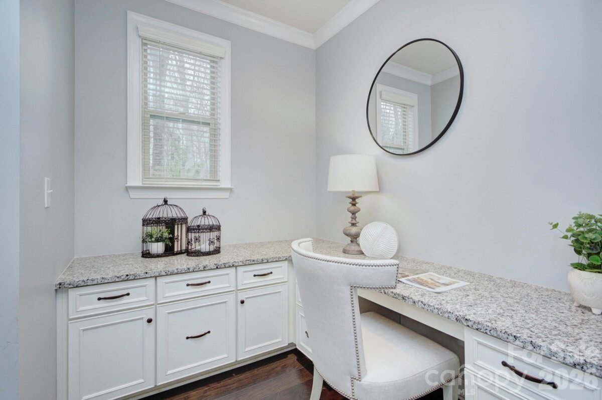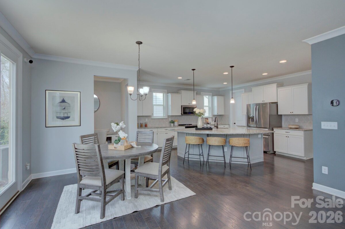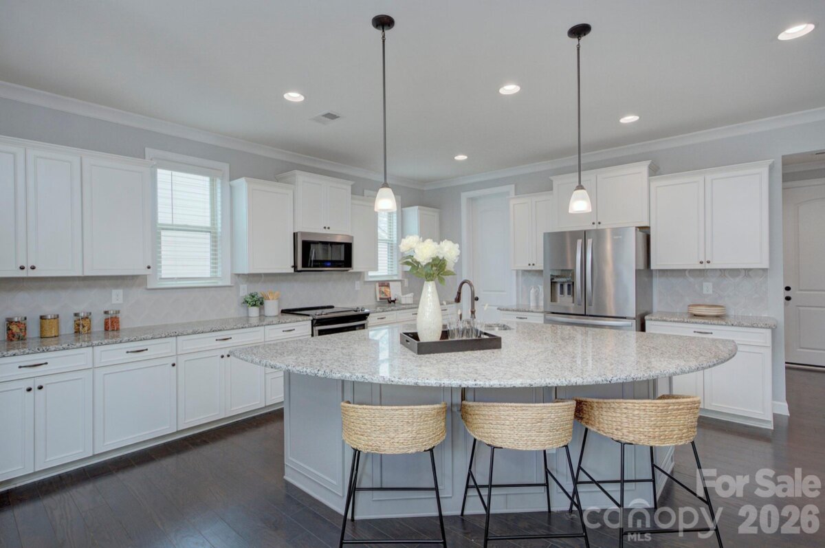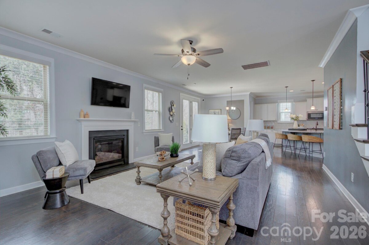 Beautiful Craftsman-style home with Hardie Plank siding and striking stone accents located in the popular Lake Crest community at Lake Wylie. Offering more than 3,000 square feet of well-designed living space, this move-in ready 4-bedroom, 2.5-bath home delivers the open layout, flexible rooms and architectural charm buyers are seeking in today’s Lake Wylie real estate market. Decorative gable details, arched window elements, classic shutters and a welcoming covered front balcony create standout curb appeal and lasting exterior appeal. The interior layout is both comfortable and functional, making it easy to host gatherings or enjoy quiet evenings at home. A spacious family room with gas fireplace connects seamlessly to the dining area and expansive kitchen, creating a natural flow for entertaining. The oversized island offers seating, prep space and sink access, serving as the central gathering point of the home. Just steps away, a built-in workspace nook provides an ideal setting for remote work, studying or managing everyday tasks while remaining connected to the main living areas. Everyday organization is enhanced by a generous mudroom and drop zone entry off the garage. A main-level flex room adds tremendous versatility and can function as a guest bedroom, dedicated home office, playroom or additional living space depending on lifestyle needs. Upstairs, the private primary suite provides a relaxing retreat and features access to the charming front balcony along with a spa-like bath designed for comfort. Two additional bedrooms offer ample space and share convenient access to a full hall bath. The oversized loft or bonus room creates excellent opportunity for a media room, fitness area, game space or second family room. A large upstairs laundry room contributes to the thoughtful design and everyday ease of living. The home’s layout includes approximately 1,589 square feet on the main level and 1,441 square feet on the second floor, offering both openness and defined living areas for modern households. Outdoor enjoyment is enhanced by wooded views behind the home, providing a sense of privacy and connection to nature. Residents of Lake Crest benefit from desirable neighborhood amenities including a community pool, walking trails and preserved green space that support an active and social lifestyle. Ideally positioned near Lake Wylie shopping, dining and recreation, the home also offers convenient commuting access to Charlotte employment centers and major thoroughfares. Located within the highly regarded Clover School District and benefiting from lower York County property taxes, this property represents an exceptional opportunity for buyers seeking newer construction, architectural style and location convenience in one appealing package.