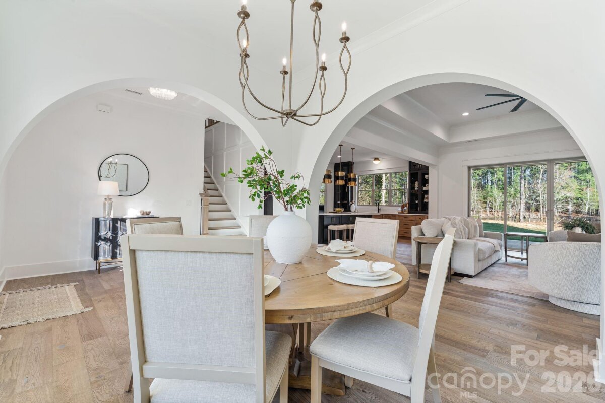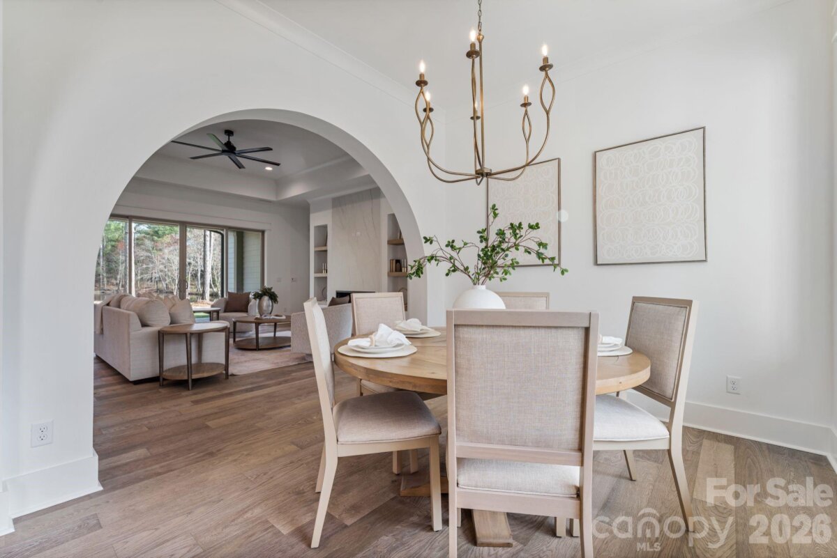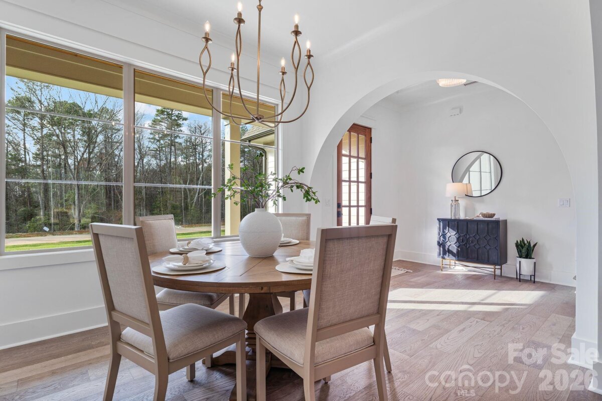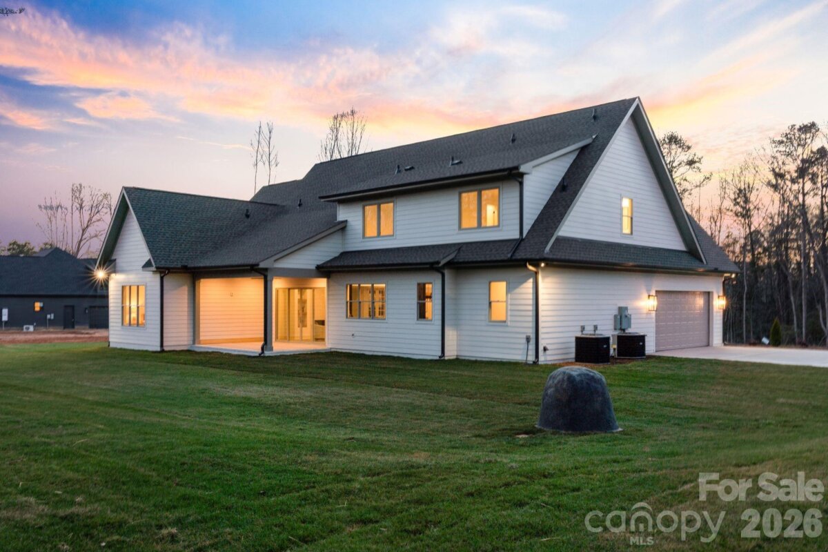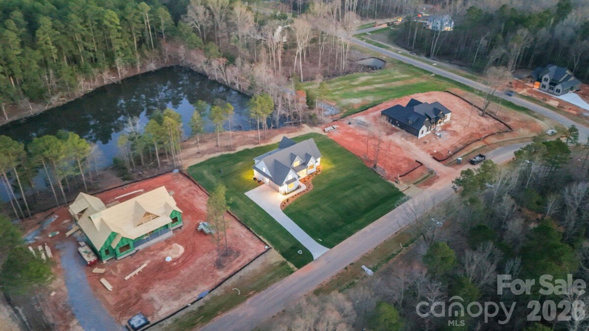 Nestled within an intimate 36-homesite community where every residence sits on over an acre of land, this exceptional home represents a level of craftsmanship and architectural detail rarely found in the Clover market. Perfectly positioned along the community pond, the property enjoys peaceful water views and a setting that blends privacy, space, and natural beauty. From the moment you arrive, the striking exterior architecture and beautifully manicured grounds set the tone for what lies inside. Full sod and irrigation frame the home, while the thoughtfully designed layout and placement on the homesite create an inviting sense of openness and tranquility. Step inside and immediately appreciate the refined design and attention to detail. Elegant architectural arches create graceful transitions throughout the home, adding a level of character and sophistication rarely seen in newer construction. The open floor plan allows natural light to fill the main living spaces, while a carefully curated lighting package enhances the warm and welcoming atmosphere. At the heart of the home is a stunning chef’s kitchen that balances beauty and functionality. Extensive custom cabinetry, a statement vent hood, marble countertops, farmhouse sink, and high-end appliances create a space designed for both entertaining and everyday living. The kitchen flows seamlessly into the spacious living area, where a sleek fireplace and thoughtfully designed built-ins create the perfect setting for gathering with family and friends. The primary suite offers a peaceful retreat, featuring a beautifully designed bath complete with a large walk-in shower, freestanding soaking tub, and custom cabinetry that blends elegance with everyday comfort. Upstairs, additional bedrooms and well-appointed bathrooms provide comfortable accommodations for family and guests, while a spacious upper-level bonus area offers flexibility for a media room, playroom, home office, or secondary living space. Outdoor living is equally inviting. The covered rear patio overlooks the community pond, creating a serene backdrop for morning coffee, evening relaxation, or entertaining while enjoying the quiet natural surroundings. Located just minutes from dining, shopping, coffee shops, and everyday conveniences — and only a short drive to Charlotte Douglas International Airport — this remarkable property offers the rare opportunity to enjoy space, privacy, and luxury living in one of Clover’s most distinctive communities. This is more than a home — it is a showcase of quality, thoughtful design, and timeless craftsmanship.