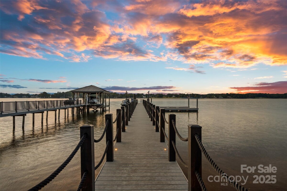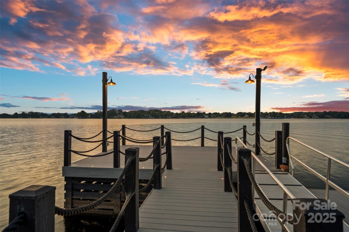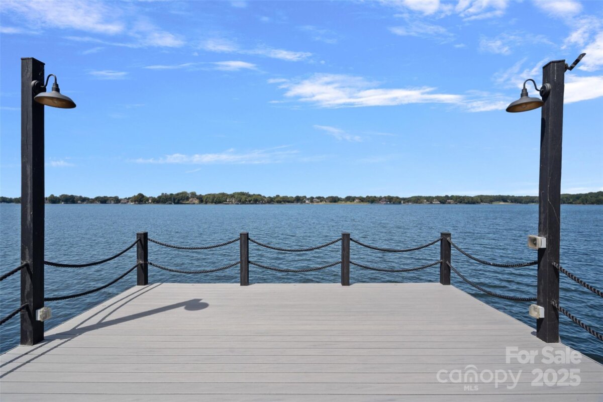 A rare offering on Lake Norman, this gated luxury waterfront estate redefines resort-style living in the heart of Cornelius. Perfectly situated to capture the breathtaking long-range views, this home blends architectural elegance with modern luxury, creating a private retreat designed for elevated yet effortless entertaining. Beyond your secluded courtyard adorned with gas lanterns, a world of refinement unfolds from soaring 10’ ceilings, wide plank white oak floors, and walls of glass that frame the water from nearly every room. The gourmet chef's kitchen is anchored by a grand island, 8-burner Wolf range with double oven, scullery, wine room, planning center, and bespoke coffee bar. Seamless transitions connect the dining and living spaces to an expansive veranda with gas fireplace, separate pool bath and built-in grilling area, all overlooking the heated pool & spa, and stunning lake views. The main-level primary retreat is a sanctuary unto itself with exceptional finishes, spa style bath, his-and-hers closets with private laundry, and tranquil water views. Upstairs, a sizable family lounge, flex room, built-in homework station, and three generously sized ensuite bedrooms provide comfort and privacy, while a breezeway leads to a private second living quarters, complete with kitchenette, full bath, and balcony. Outdoors, a private pier with sundeck and floating dock extends the living space onto the lake, offering the ultimate backdrop for boating, entertaining, or simply watching the sun set in seclusion. With no HOA, a premier Cornelius location, and every modern luxury thoughtfully curated, this residence stands among the most exclusive lakefront properties on Lake Norman. Offered fully furnished with every piece and accessory intentionally selected and professionally designed.
