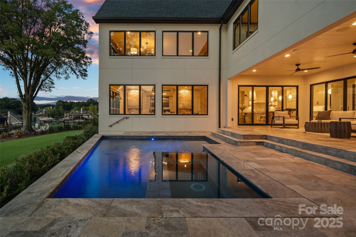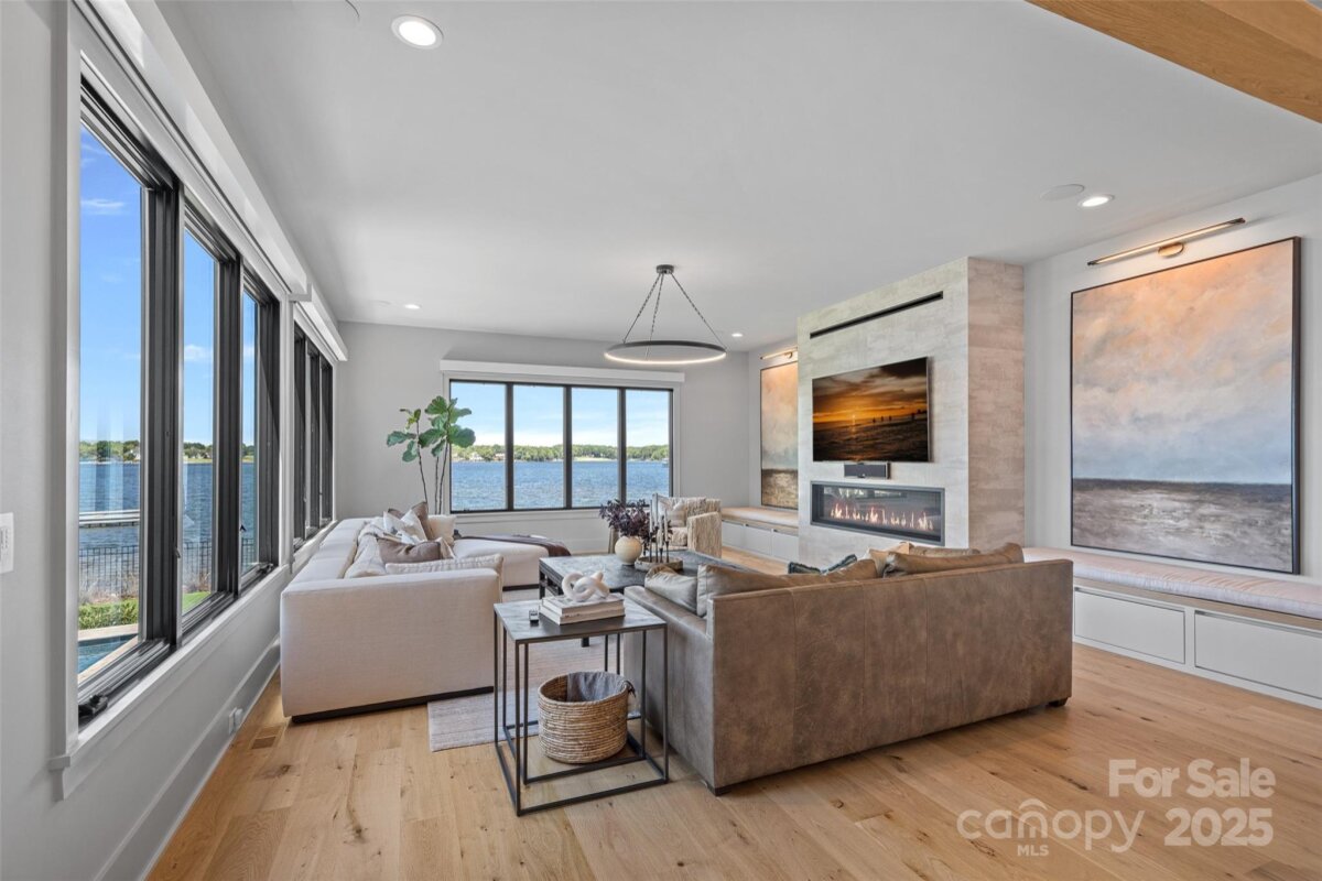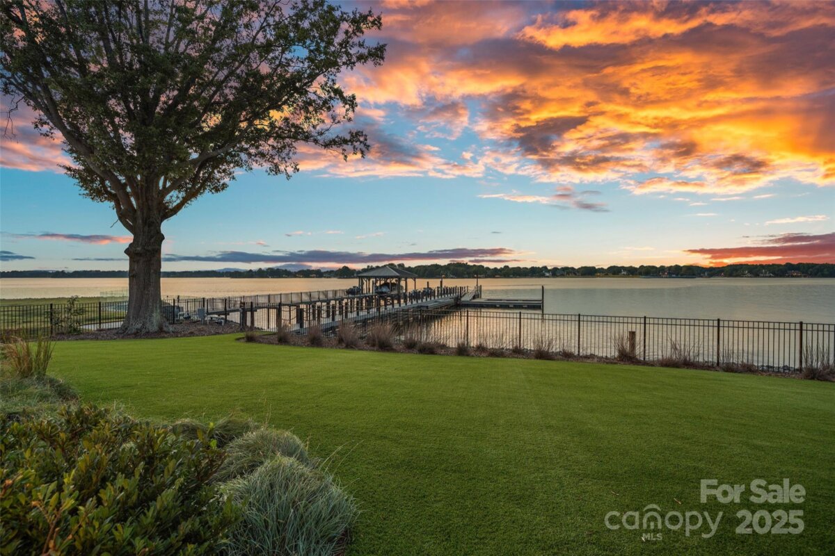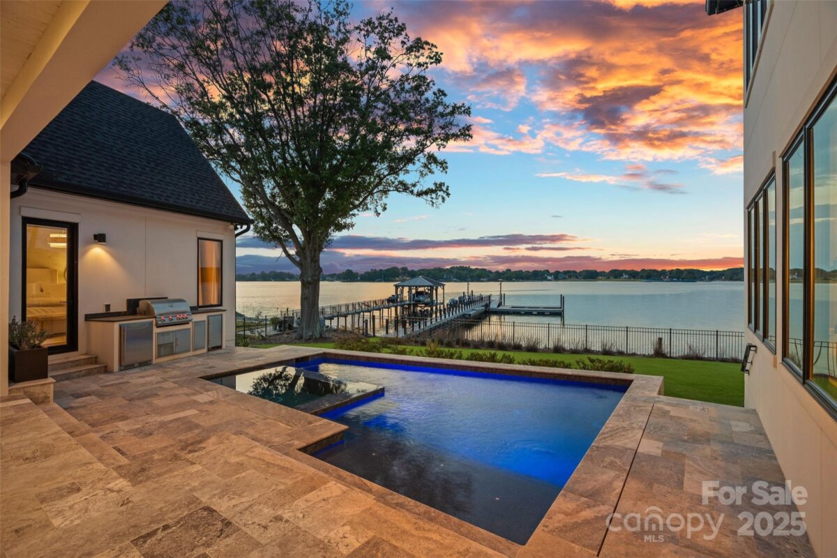 A rare offering on Lake Norman, this gated luxury waterfront estate redefines resort-style living in the heart of Cornelius. Perfectly situated to capture the breathtaking long-range views, this home blends architectural elegance with modern luxury, creating a private retreat designed for elevated yet effortless entertaining. Beyond your secluded courtyard adorned with gas lanterns, a world of refinement unfolds from soaring 10’ ceilings, wide plank white oak floors, and walls of glass that frame the water from nearly every room. The gourmet chef's kitchen is anchored by a grand island, 8-burner Wolf range with double oven, scullery, wine room, planning center, and bespoke coffee bar. Seamless transitions connect the dining and living spaces to an expansive veranda with gas fireplace, separate pool bath and built-in grilling area, all overlooking the heated pool & spa, and stunning lake views. The main-level primary retreat is a sanctuary unto itself with exceptional finishes, spa style bath, his-and-hers closets with private laundry, and tranquil water views. Upstairs, a sizable family lounge, flex room, built-in homework station, and three generously sized ensuite bedrooms provide comfort and privacy, while a breezeway leads to a private second living quarters, complete with kitchenette, full bath, and balcony. Outdoors, a private pier with sundeck and floating dock extends the living space onto the lake, offering the ultimate backdrop for boating, entertaining, or simply watching the sun set in seclusion. With no HOA, a premier Cornelius location, and every modern luxury thoughtfully curated, this residence stands among the most exclusive lakefront properties on Lake Norman. Offered fully furnished with every piece and accessory intentionally selected and professionally designed.