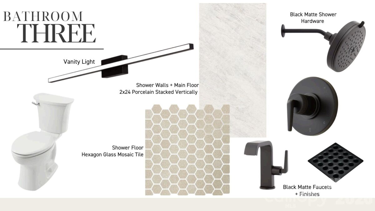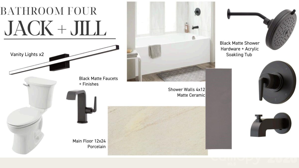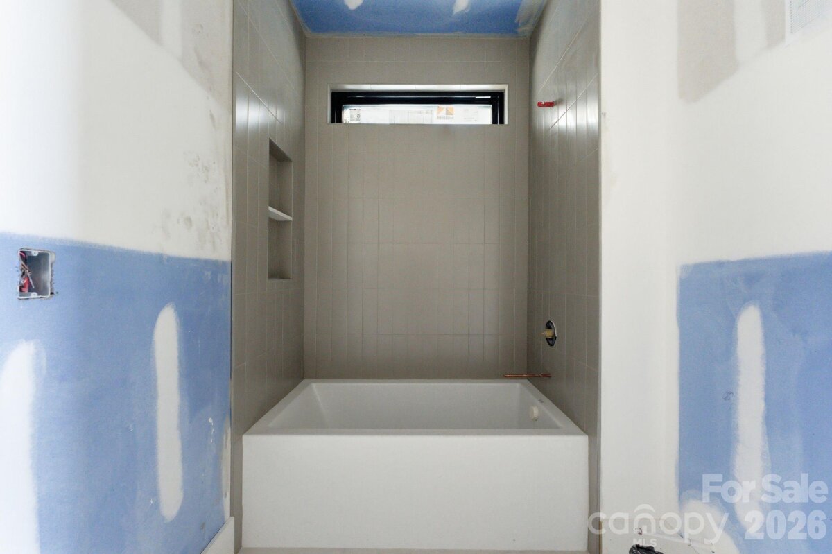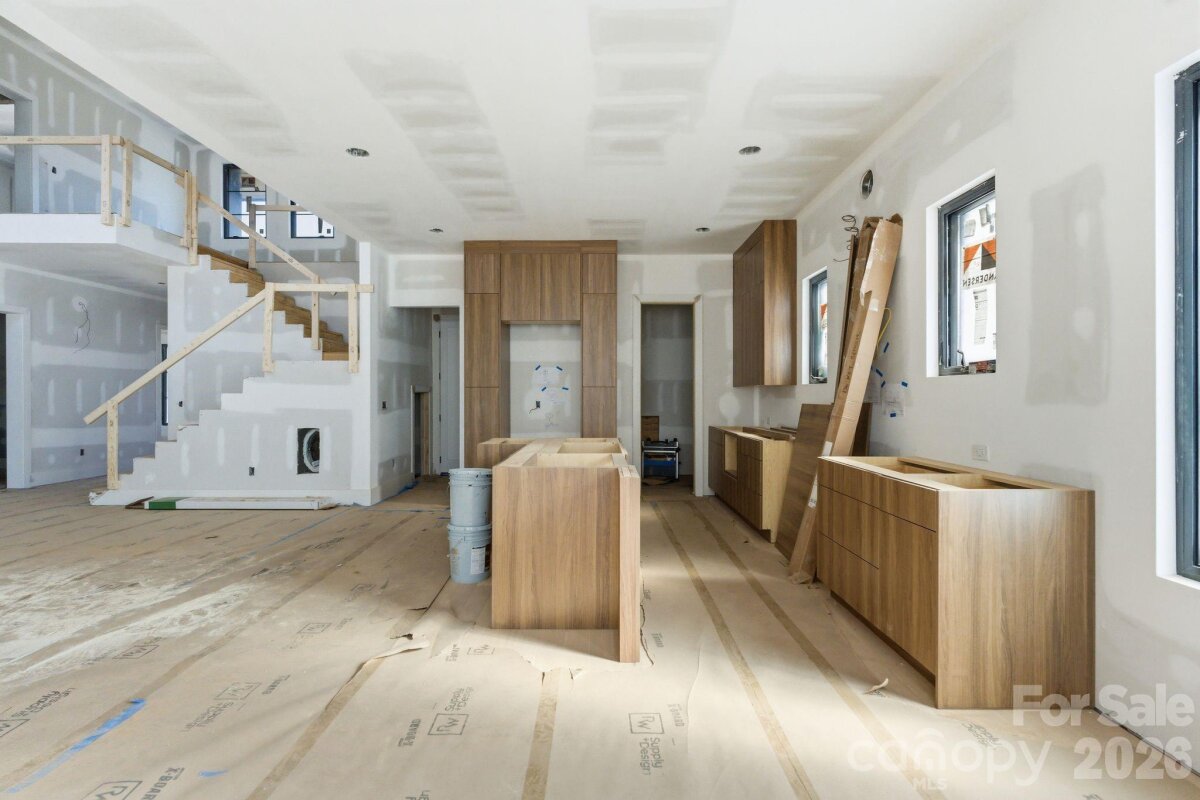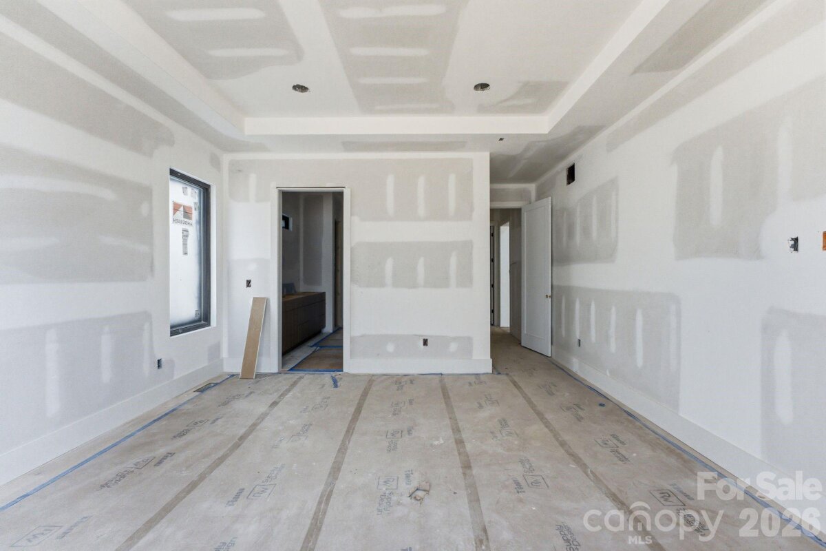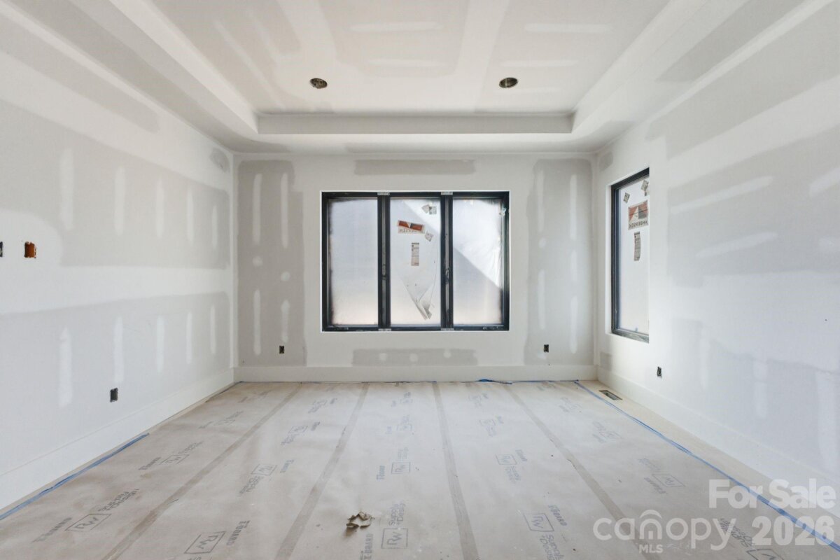 Exceptional new construction featuring 5 bedrooms, 3.5 baths, and just under 3,400 square feet on a 0.35-acre lot in a prime Charlotte location. Ideally situated just minutes from Cotswold, Plaza Midwood, and SouthPark, with convenient access to Uptown Charlottes shopping, dining, and everyday amenities. The main living area features vaulted ceilings open to the second level and a sleek electric fireplace that anchors the space. The kitchen is designed for both everyday living and entertaining with almond cabinetry, a large L-shaped quartz island with seating, a walk-in pantry, and a 48-inch gas range. The open floor plan flows seamlessly between the kitchen, dining, and living areas. The primary suite is located on the main level and features a spacious walk-in closet with direct access to the laundry room for added everyday convenience. The primary bath showcases a beautifully designed wet room with a freestanding tub and walk-in shower, creating a spa-like retreat. A pocket office provides a dedicated work-from-home space, while a drop zone adds practical storage just off the main living areas. Upstairs, a spacious media room offers flexible space for movie nights, additional living, or a playroom. The upper level also includes three additional bedrooms, two of which share a Jack-and-Jill bath with separate vanities, while the third bedroom features its own en-suite bath. Enjoy the covered rear patio overlooking the large fenced backyard with plenty of room for entertaining and space with potential for a future pool. Additional features include a two-car garage with EV charger, tankless water heater, and prairie-modern architectural design, all in a central Charlotte location close to dining, shopping, and everyday conveniences. Tax Value will change upon completion of the house.