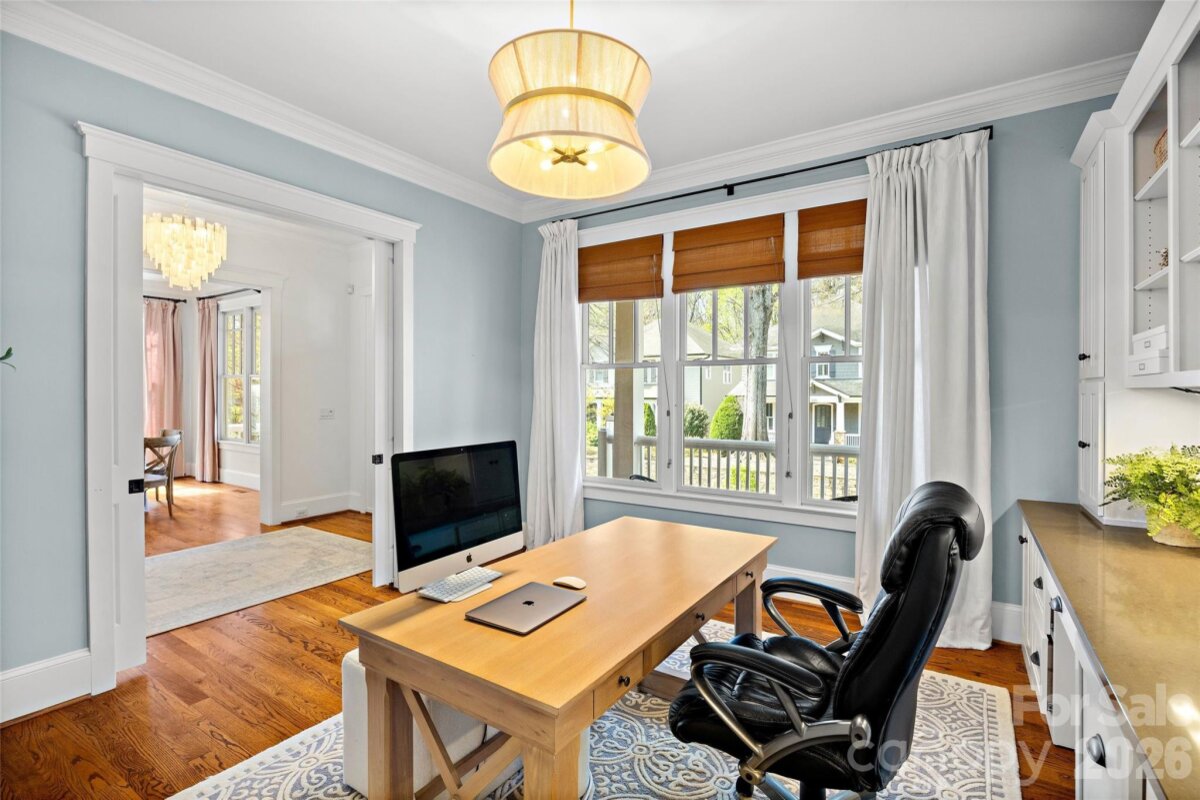 Fabulous home nestled on the most charming cul-de-sac street in Cotswold. This special street is lined with beautiful gas lanterns and sidewalks, and has the feel of a true classic neighborhood. This one of a kind property blends timeless character with modern convenience, showcasing exceptional craftsmanship by Pfahl Custom Builders (2007). Relax on the inviting rocking chair front porch or entertain with ease in the open floorplan. This home features a spacious great room and a screened porch perfect for year round enjoyment. The updated kitchen is a true centerpiece, complete with a large eat-in island, a walk in pantry, and adjoining butler’s pantry. Hardwood floors run throughout the home and large moldings add warmth and elegance. Upstairs, you’ll find four generously sized bedrooms, including a well appointed primary suite, along with three full bathrooms and a convenient upstairs laundry room. Additional highlights include a dedicated office, formal dining room, and a two car garage. Perfectly located just minutes from Cotswold Shopping Center, SouthPark, and Uptown, this home offers both charm and unbeatable convenience. A rare opportunity to own a truly special home in one of Charlotte’s most desirable neighborhoods. Welcome home!