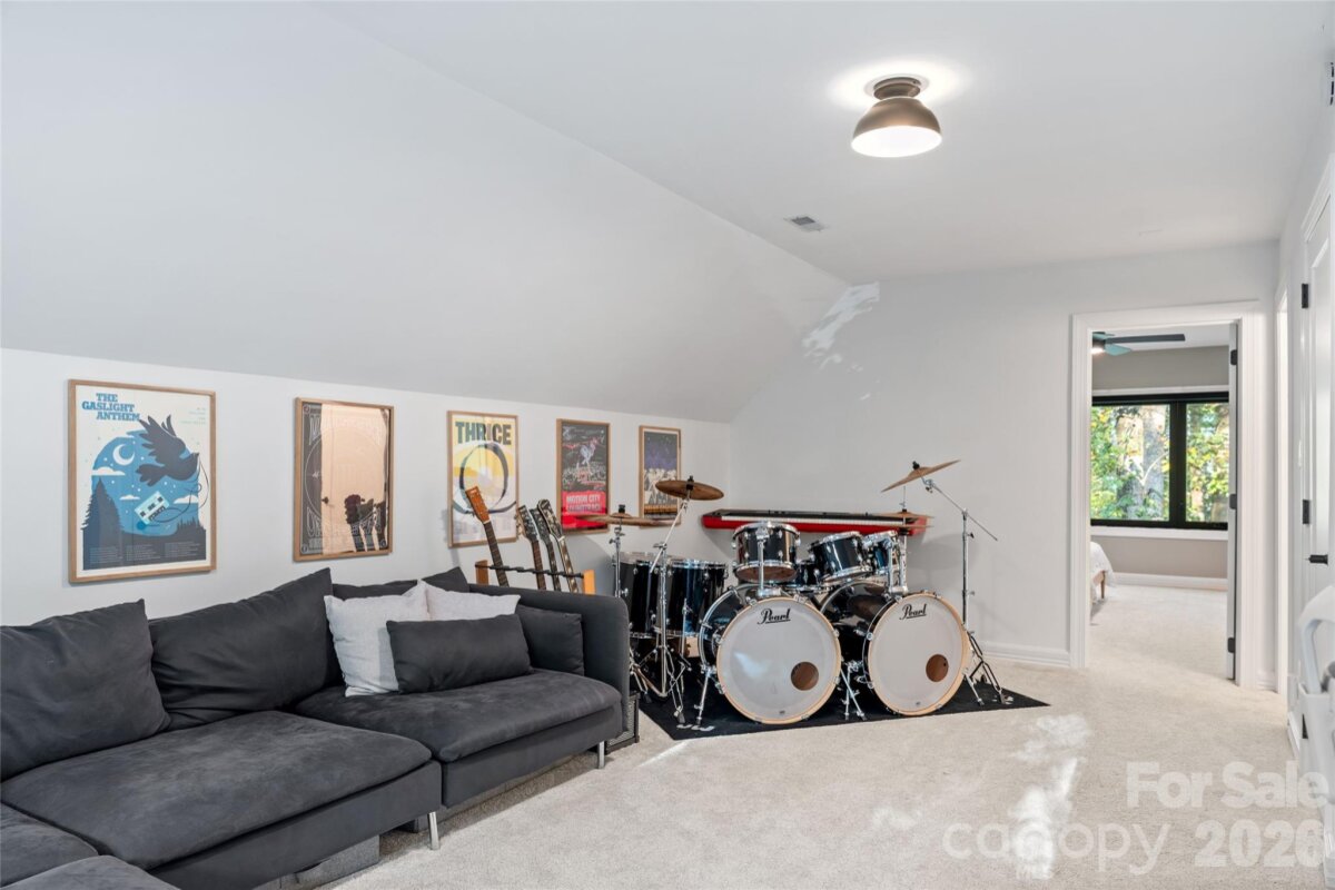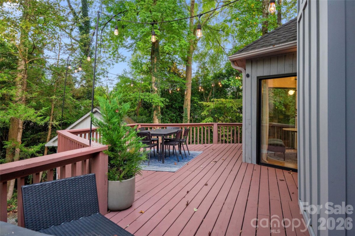 Cotswold designer retreat on a private 0.62-acre wooded lot. No HOA. Private wraparound driveway leading to side. This home is ideally located less than a mile to Cotswold Village, the farmers market, parks, the planned McMullen Creek Greenway, and only minutes to SouthPark, Uptown, hospitals, and top schools. Scandinavian-inspired, the home is light-filled with floor-to-ceiling picture windows, living-room skylights, vaulted ceiling, and an open floor plan. Over $250,000 in renovations between 2020 and 2025 include white-oak floors, floating built-ins, stone waterfall counters, integrated-panel appliances, and a modern gas fireplace with granite hearth, new windows and exterior doors (2020–2021), new hardwoods (2022), new interior doors and whole-house paint (2023), main-house garage door (2024), new HVAC duct work (2025), and an encapsulated crawlspace with dehumidifier and UV purification. The beautiful chef’s kitchen was updated in 2022 and fitted with Wolf dual-fuel range with griddle, Wolf microwave, Sub-Zero refrigerator and freezer, Cove dishwasher, and walk-in pantry with wine fridge. California Closets in bedrooms and pantry/mudroom with a pocket door. You are welcomed by a large open kitchen and great room. The stunning main-level primary suite offers two walk-in closets, soaking tub, walk-in shower, and double vanities. Two additional bedrooms are on the main level. Upstairs is a fourth bedroom, full bath, and large bonus room with a full-wall bookshelf, and walk-in attic. An expansive deck graces the exterior over a tree-canopied backyard. The private wraparound driveway extends to the side street and there is ample parking, including a 1-car attached garage, a 1-car detached garage, and two additional spaces. The detached garage with attic storage has no power but could function as a studio, gym, or office. Throughout the home are bonus smart features and technology: fiber internet, smart thermostats, IoT lighting, Hunter Douglas smart blinds, updated security, and a smart garage door.