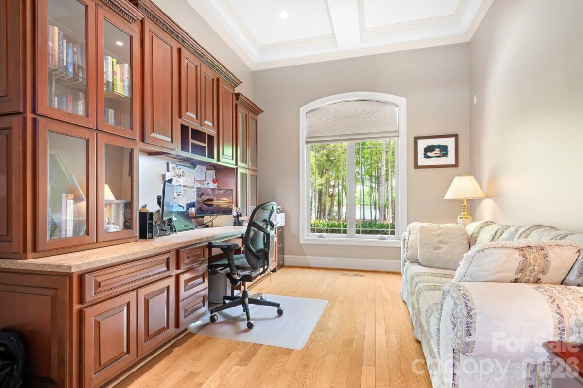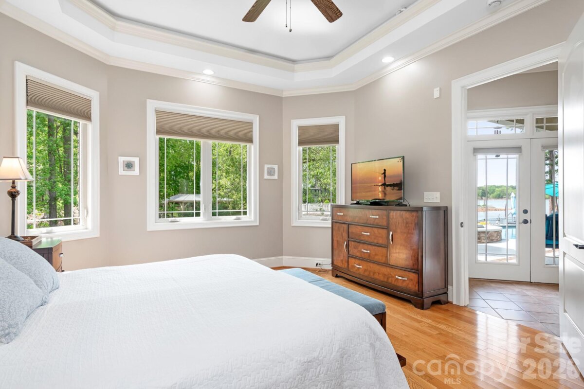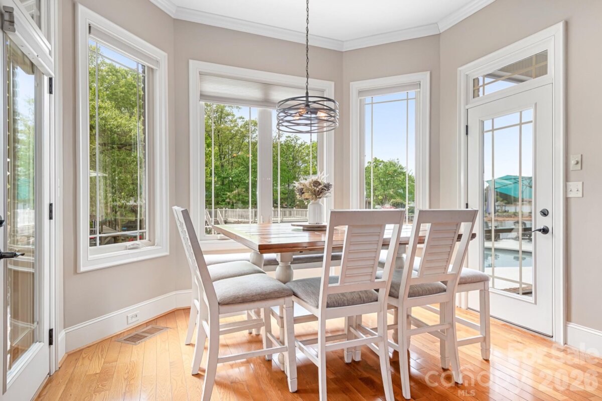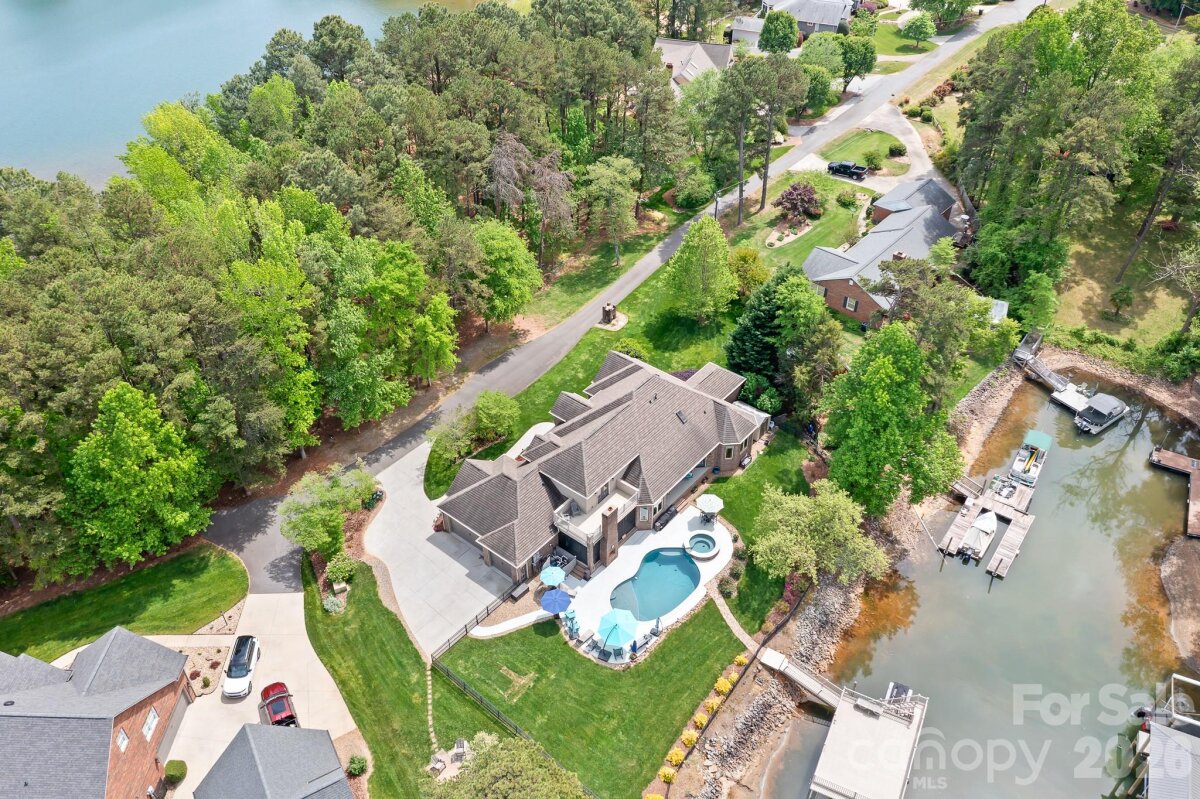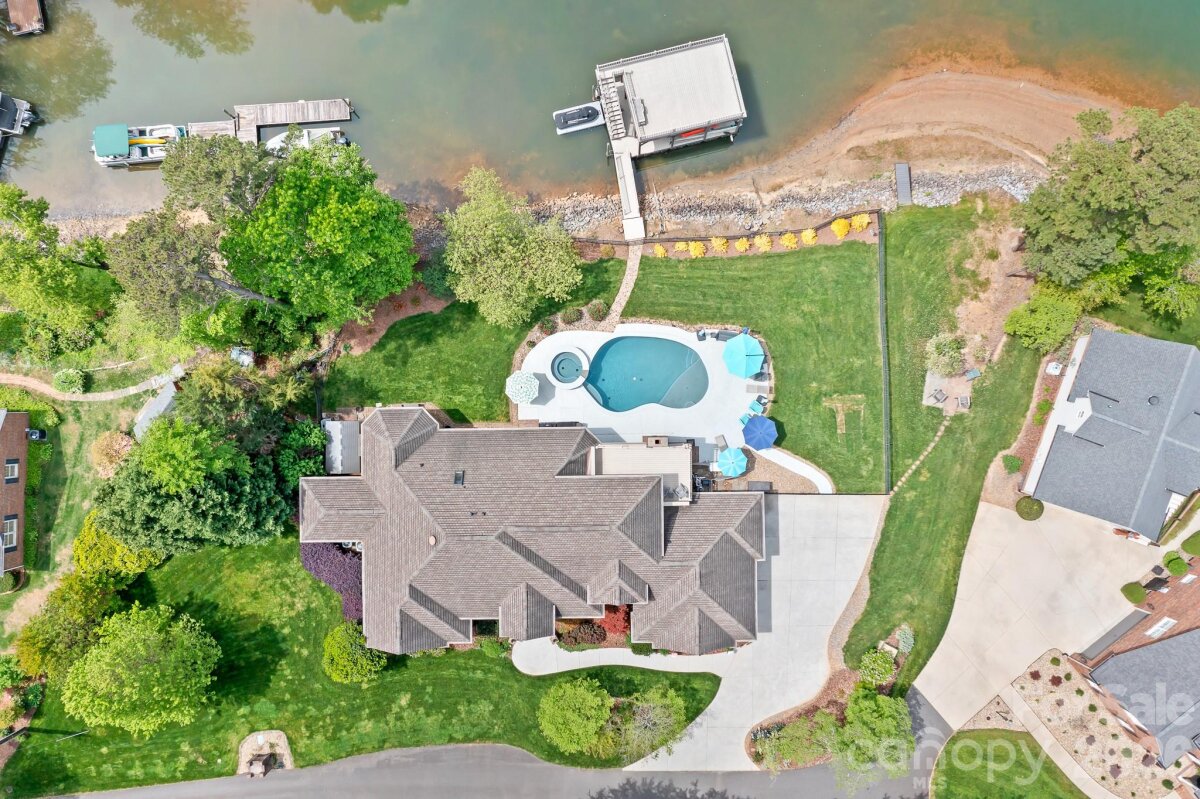 Enjoy lake living at its finest this summer on Lake Norman in this exceptional custom waterfront home! Designed for both luxury and lifestyle, outdoor spaces are truly an entertainer’s dream featuring a covered slip with boat lift and PWC docking, second-level seating area, inground saltwater pool with heated spa, fenced yard, and a screened porch with fireplace overlooking the pool. Gather lakeside around the fire pit and take in the peaceful, private setting. This property truly has it all. Inside, expansive windows throughout the home beautifully frame the water views, complemented by hardwood floors, dedicated home office, custom light fixtures in the dining room and foyer, and stunning coffered ceiling in the great room. A spacious layout includes two additional bedrooms with access to private full bath and luxurious waterfront primary suite with a tiered, lighted ceiling. The spa-like primary bath offers a separate shower, soaking tub, and a large walk-in closet with built-in drawers. Oversized kitchen and breakfast area flow seamlessly into the great room, all capturing views of the backyard and pool. Highlights include large center island, double ovens, abundant cabinetry, generous counter space, and additional seating. Convenient pool bath with shower is located just off the screened porch. Upper level features a private bedroom with full bath, a walk out balcony offering elevated lake views, and versatile flex space ideal for a gym, teen suite, hobby room, or guest retreat. Additional features include an oversized three car garage with epoxy flooring, ample walk in storage, and a moisture controlled crawlspace. Lake area beneath the dock has been dredged to ensure excellent water depth for year round enjoyment. Situated at the end of a quiet road, this home offers both privacy and tranquility.