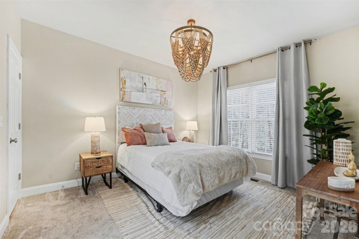 Welcome to this beautiful home in the highly desirable Eastwind Cove community—move in ready and designed for comfortable living and effortless entertaining. The spacious family room features a soaring ceiling that fills the space with natural light and opens seamlessly to the breakfast area and the large, well appointed kitchen. Home chefs will appreciate the gas cook top, double ovens, quartz countertops, generous island and large pantry, creating the perfect gathering spot for family and friends. Step from the breakfast area onto the expansive screened in porch overlooking the partially wooded backyard. The property extends beyond the fenced area into the treed section, offering additional privacy and space. A main level bedroom with a walk in closet and direct access to a full bath provides an ideal setup for overnight guests or visiting family. Dual staircases lead to the upper level, where you’ll find a spacious primary suite with a tray ceiling and two sizable walk in closets. Three additional bedrooms and a large bonus room offer plenty of flexibility for work, play, or relaxation. Recent updates include the screened in porch, quartz countertops in the kitchen and all baths, updated lighting, and a professionally designed office featuring a unique accent wall. Enjoy warm summer days with a short walk to the community pool. The oversized three car garage provides ample storage for lake gear, and a small community lake access point allows for kayak launching or peaceful fishing outings. A public lake access is also conveniently located nearby off Burton Lane. With close proximity to Lake Norman, shopping, restaurants, breweries, and top rated schools—including Rock Springs Elementary, ranked #119 in North Carolina and #1 among Lincoln County Schools in the 2026 U.S. News & World Report—this home offers the perfect blend of comfort, convenience, and lifestyle.