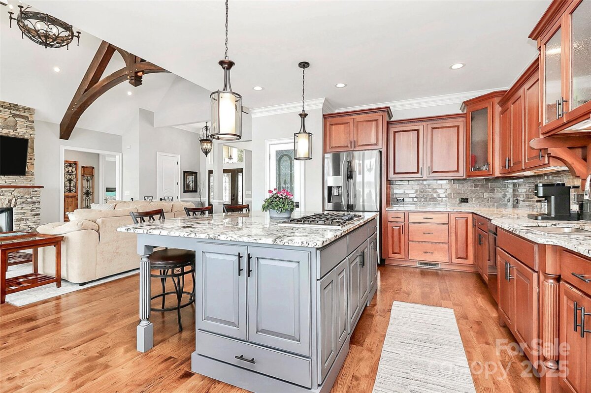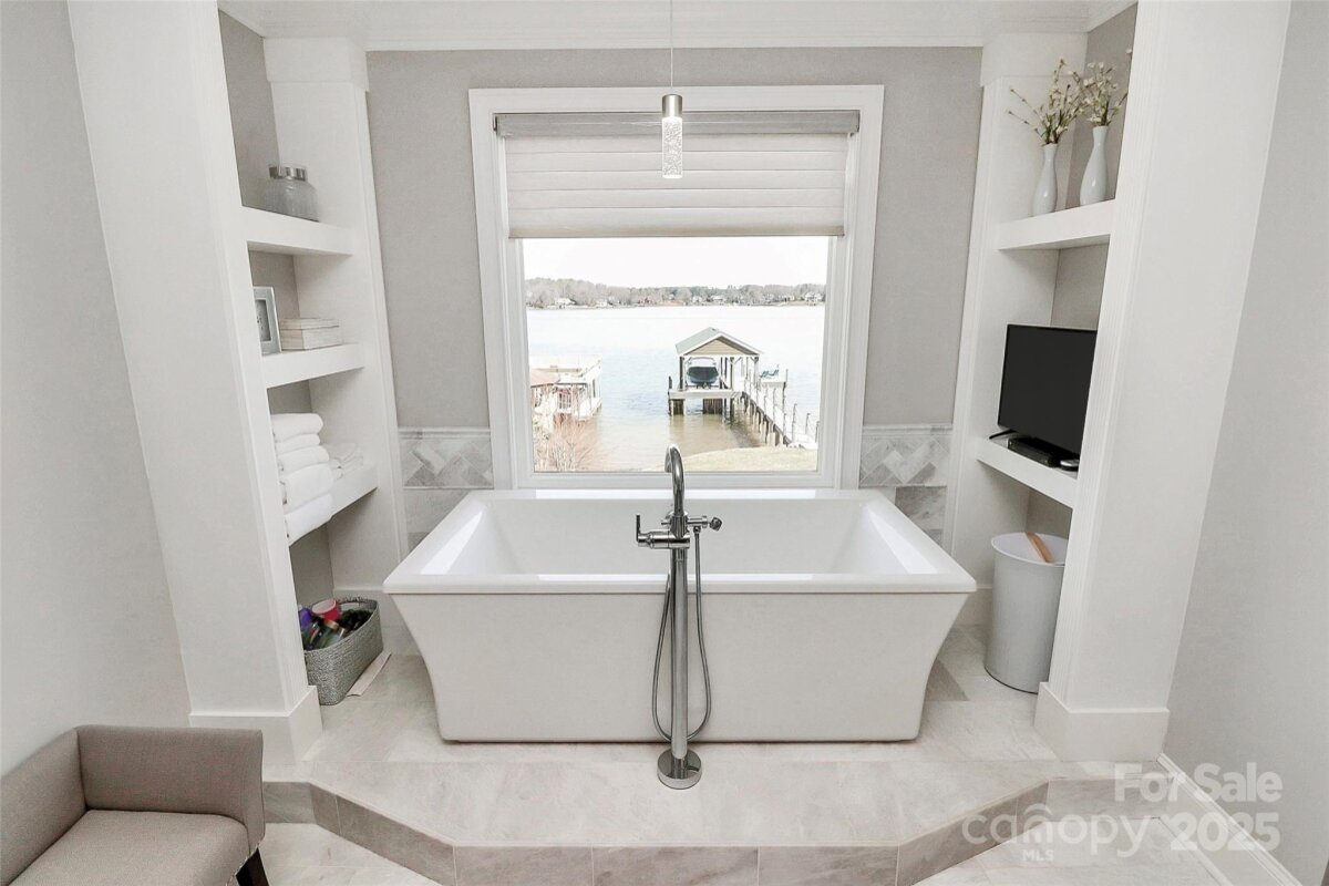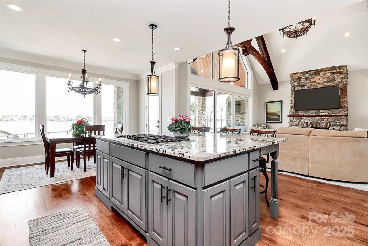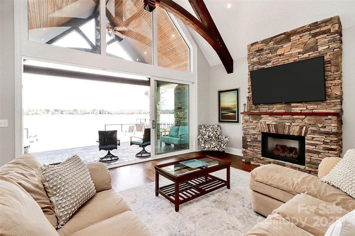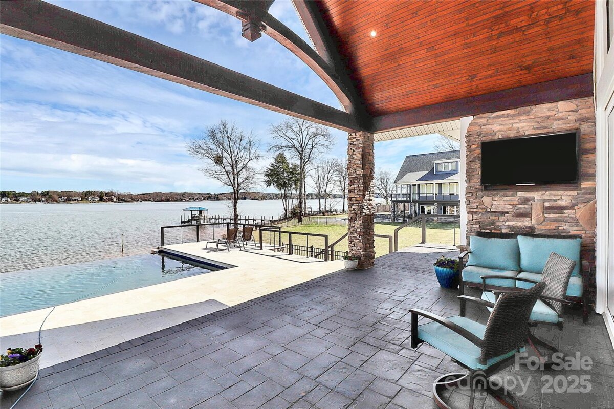 Beautiful, waterfront home. Enjoy the lake life in this 4534 sq ft home located on Lake Norman's main channel with stunning long range views from nearly every room. Beautiful custom real timber beams greet you as you enter and extend onto the covered porch. This home is made for entertaining with sliding doors located in the living area, office and primary bedroom that open directly to the porch and pool deck, complete with spa and infinity pool. Upgrades throughout in this builder's personal home. No HOA fees in this quiet community. 3 BR, 3 1/2 bath with office, flex areas and large loft area upstairs. Enjoy the functionality of the beautiful custom primary closet complete with vanity, window seat and large island. Over 460 square feet of unfinished area above the garage for future expansion or storage. The large 3 car garage has hard-coated flooring, and a large parking area for a multitude of guests. Private dock with boat lift and a private boat ramp located on the property.