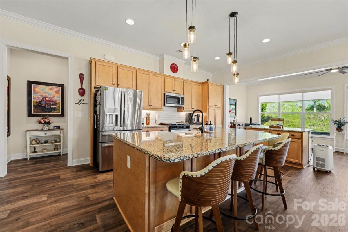 Welcome to Trilogy, not just a home but a whole living experience! This 55+ Community is known for its amenities including: Gated Community, Club House, Fitness Center, Indoor and Outdoor Pools, Sports Court, sidewalks, concierge and restaurant. You're sure to fall in love with this beautiful, large, ranch home from the street. The exterior features beautiful curb appeal, an amazing wrap around porch (covered, ceiling fans, recessed lighting, epoxy), a spacious back paver patio, solar panels, and an extended two car epoxy garage. Inside, you will love the wide-open floor plan featuring tons of natural light, high ceilings, crown molding, recessed lighting, modern fixtures, and LVP flooring throughout. The large living area features a separate sitting area around the gas log fireplace. The functional kitchen features beautiful wood cabinetry, stainless steel appliances, and an oversized kitchen island with storage and seating that flows into the dining area and large sunroom area. Surrounded by windows and sliding glass doors the home is filled with much desirable natural lighting but also boast beautiful window treatments for when it's time to turn down the lights. You will love the large primary bedroom, bathroom with dual sinks, and spacious closet. The secondary bedroom also has its own bathroom. Additional key selling points that will check all the boxes include a large office or bonus room, a huge walk in pantry or storage area separate from the kitchen, a large laundry area that acts as a drop zone and includes a wash basin and cabinetry, and worth mentioning again, that sunroom!