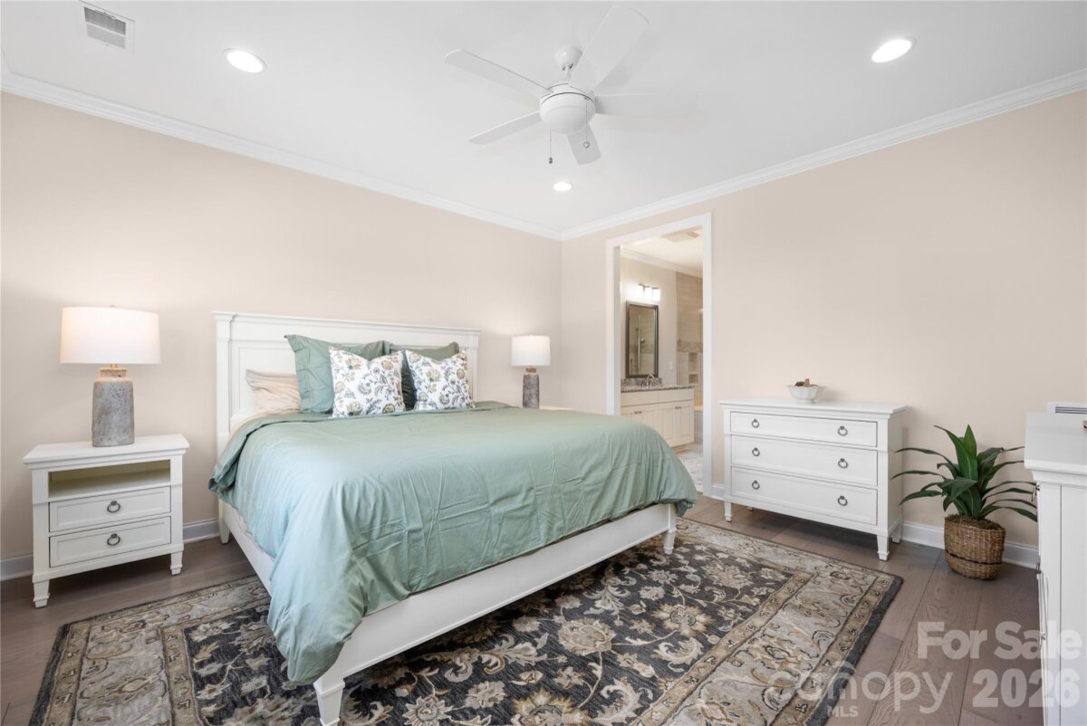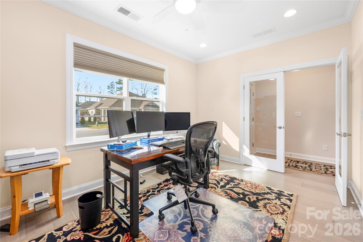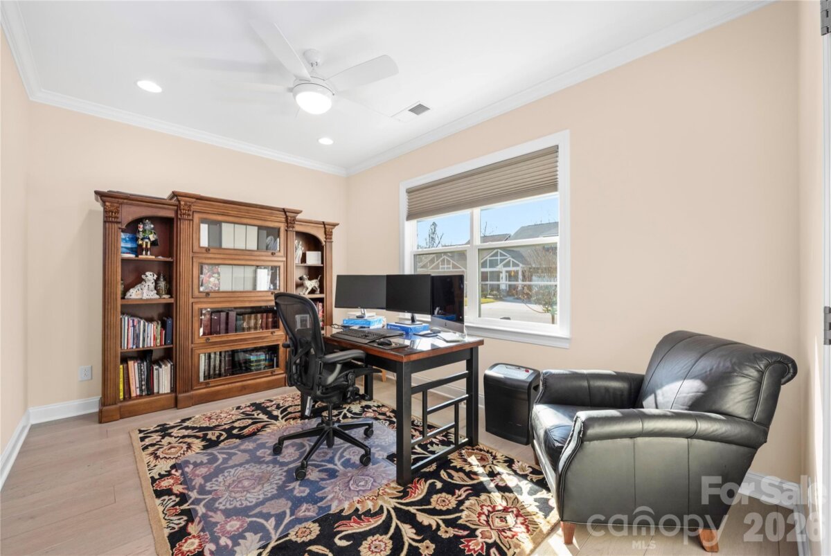 This home has it ALL! Stunning 3 bedroom/3 bath + den move-in ready home in the gated, amenity rich, 55+ Community of Trilogy Lake Norman! The ever-popular Affirm w/ loft floor plan includes the "Got to have it! " (top level upgrade package) plus many extras! This like new home provides an open split bedroom layout w/ beautiful hardwood floors throughout the first floor! Gorgeous kitchen w/ cream cabinets, oversized island w/ granite countertops, under cabinet lighting & top level KitchenAid appliances overlook a large great room & dining area. Large primary bedroom & bath w/ tile floors, large tile shower, dual vanity w/ granite countertops & WIC. A second bedroom, study & a full bath are off foyer. Upstairs you will find a large loft area, and third bedroom with en suite bath-perfect for hosting guests. The back yard is an outdoor lovers dream, a rolling wall of glass leads to a covered porch overlooking a 10x20 paver patio and a premier flat fenced irrigated yard. A freshly painted, 2-car garage with 2ft extension, utility sink, built-in shelving, and cabinets allow for tons of extra storage. Additional upgrades include Hunter Douglas Motorized Window Blinds, upgraded crown molding, radiant barrier sheathing, tiled showers in both secondary baths, buried downspouts, recessed lighting throughout, and exterior gas line for grill (full list attached). Trilogy Lake Norman amenities include a club house, indoor and outdoor pool, hot tub, restaurant, tennis and pickle ball courts, billiard room, full time activities director, membership in freedom boat club and much more (full list attached). This home is a MUST see!