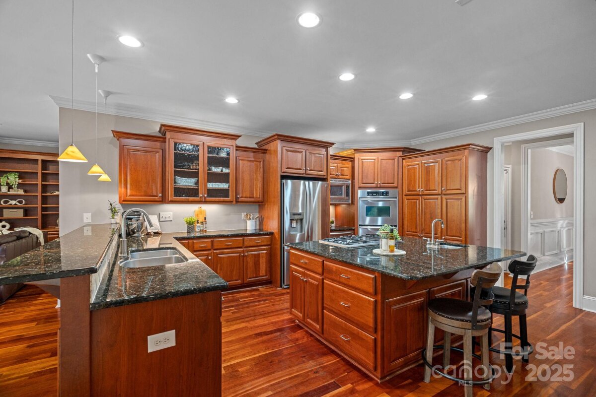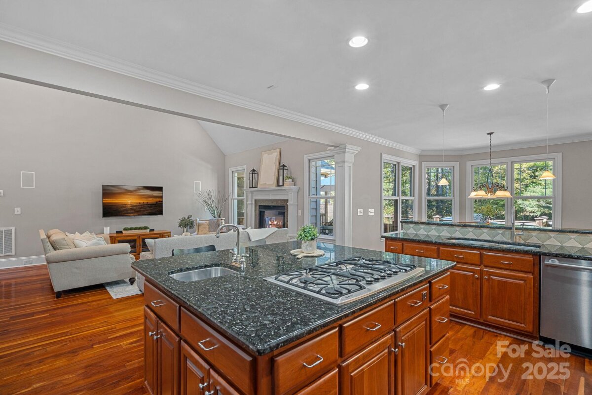 Set on over an acre in a quiet, natural setting, this beautifully designed home offers space and seclusion, just steps from community docks with kayak and paddleboard launch access. From the moment you enter, you’ll notice the thoughtful layout and expansive living areas built for both comfort and connection. The two-story family room with a gas fireplace creates a warm focal point, opening to a chef’s kitchen with high-end appliances, generous counter space, double ovens, and a warming drawer — ideal for everyday living or hosting a crowd. A cozy gathering room with fireplace overlooks the private backyard, while the spacious main-level primary suite offers a peaceful escape. A private study and formal dining room add functional elegance to the main floor. Upstairs, you’ll find two additional bedrooms and a large bonus room—perfect as a second living area, media room, or flexible space to suit your lifestyle. The finished walkout basement expands your options with a media room, game room, sitting area, guest bedroom, full bath, and three large walk-in storage rooms. Step outside to your personal retreat: a sparkling pool, holistic garden, covered terrace with hot tub, outdoor shower, and screened porch. With direct access to the community boat launch and day dock, this home offers an unmatched blend of space, serenity, and lake living.