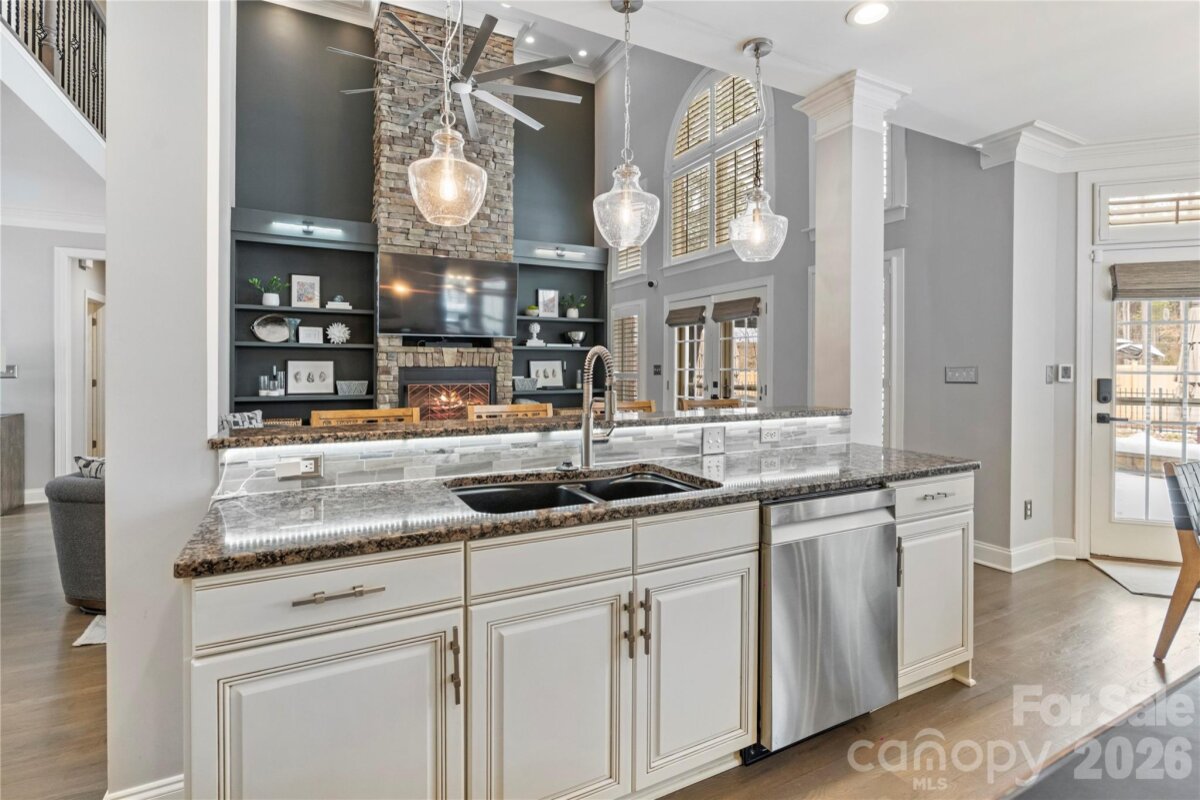 Located in the highly sought-after Pebble Bay neighborhood, this beautifully renovated custom home sits on over an acre of land, offering rare privacy, tranquility, and an exceptional setting for both everyday living and entertaining. Thoughtfully updated throughout, the home blends timeless design with modern luxury. The interior features custom walk-in showers throughout, a spa-inspired primary bathroom with a soaking garden tub, and carefully curated finishes at every turn. The inviting great room showcases custom built-ins and a warm fireplace, creating the perfect space for relaxed evenings or gathering with guests. A stunning chef’s kitchen anchors the home, complemented by designer lighting, quality craftsmanship, and an open, functional layout that flows effortlessly from room to room. Step outside and experience an entertainer’s dream. The backyard is designed for enjoyment on any scale, featuring a resort-style pool and hot tub, expansive patio areas, and a well-appointed outdoor kitchen ideal for hosting summer gatherings, game-day parties, or casual nights under the stars. Covered seating areas and generous hardscape create a seamless indoor-outdoor lifestyle rarely found. One of the home’s most impressive features is its exceptional garage capacity—an attached 2-car garage plus a detached garage with space for four additional vehicles, perfect for car enthusiasts, hobbyists, or extra storage. A recently added full custom bathroom on the lower level of the detached garage offers unmatched convenience after pool days or garage projects. Above the detached garage, a second living quarters has been framed and drywalled, presenting an incredible opportunity for a guest suite, in-law quarters, private office, or future income-producing space. The layout allows for a full bath, kitchenette, sleeping area, and living room, ready for your final touches. Whether you’re entertaining poolside, showcasing a car collection, or enjoying peaceful living with space and privacy, this Pebble Bay home delivers it all—conveniently located just minutes from I-485, Mooresville, and Charlotte Douglas International Airport. A rare offering that combines luxury, versatility, and lifestyle—this exceptional property is ready to welcome its next owner.