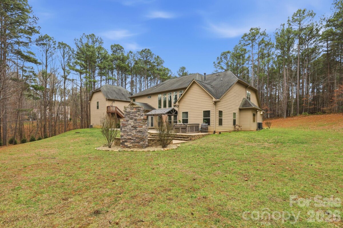 Located in the sought-after gated lakeside community of Pebble Bay — complete with a community boat ramp — this exceptional property offers the rare feeling of a private retreat while remaining close to everyday conveniences. Set on 2.1 acres at the end of a long driveway, the home welcomes you with remarkable privacy, peaceful surroundings, and a quiet sense of escape. The home features 4 bedrooms, 4.5 baths, and versatile bonus spaces on each level — ideal for an office, hobbies, or media area. Total heated living area is approximately 4,576 sq ft and includes a beautiful 576 sq ft finished room with full bath above the detached garage (permit expired; info available). Five total garage spaces include an oversized attached 3-car garage PLUS a detached 2-car garage, offering flexibility for storage, hobbies, or car enthusiasts. Soaring two-story ceilings and a dramatic wall of windows with custom motorized shades fill the home with natural light, highlighting a fabulous living area designed for both everyday comfort and entertaining. The chef’s kitchen features double ovens, a gas cooktop, granite countertops, upgraded cabinetry, and a large island with seating for six, flowing seamlessly into the living room with a gas fireplace. A secondary staircase adds everyday convenience. Outdoor living truly defines the lifestyle here — from evenings in the hot tub beneath the stars to cozy gatherings around the paver fire pit or entertaining by the outdoor fireplace after a day on the lake. The main-level primary suite offers comfort and ease, while three ensuite bedrooms upstairs provide privacy for guests or family. Ample storage includes a spacious floored attic. Located in Denver, NC with convenient access to Highway 16, shopping, dining, and daily essentials nearby. Easily accessible to Mooresville, Hickory, and Huntersville, with a simple commute via Highway 16 to I-485 and Charlotte Douglas International Airport. The perfect place to call home.