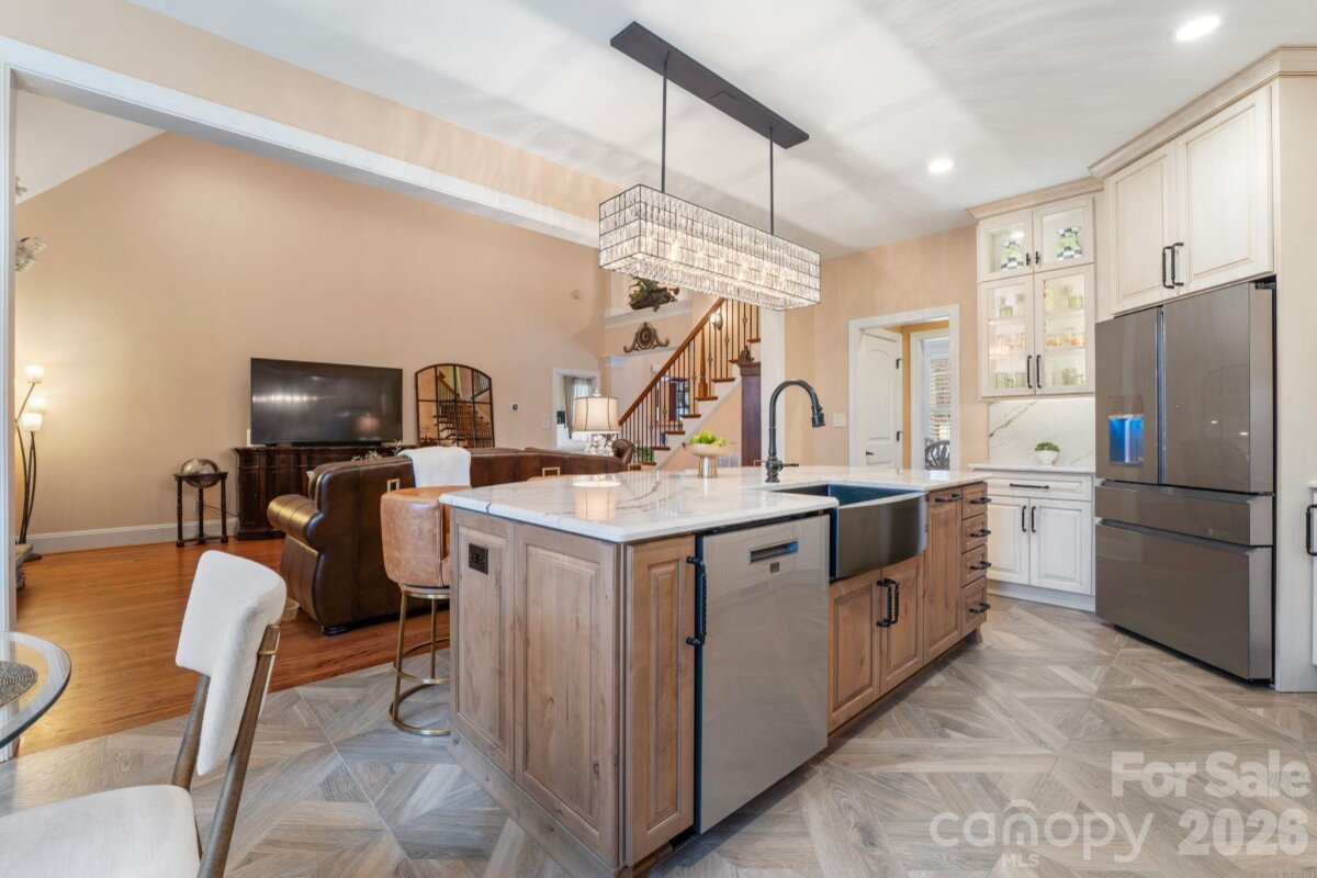 Tucked within the highly desirable gated community of Pebble Bay, this beautifully maintained residence offers privacy, elegance, and the relaxed lifestyle that makes Lake Norman living so special. Situated on a meticulously landscaped lot surrounded by mature trees, the home enjoys seasonal lake views and a peaceful setting that feels private while remaining conveniently close to everything. Inside, the home welcomes you with warm hardwood floors, abundant natural light, and thoughtfully designed living spaces. The recently updated gourmet kitchen is a true centerpiece, featuring quartz countertops, custom cabinetry, high-end appliances, and elegant finishes that make it both functional and visually stunning. The kitchen flows seamlessly into the main living area where a beautiful stone fireplace creates an inviting space for gathering and entertaining. The spacious primary suite is conveniently located on the main level, offering comfort, privacy, and ease of living. Additional living spaces provide flexibility for family, guests, or work-from-home needs. One of the home’s most special features is the fully enclosed rear porch — a versatile space perfect for relaxing year-round, entertaining friends, or simply enjoying the quiet wooded surroundings. Additional highlights include a desirable three-car garage, a beautifully manicured yard, and a private setting that enhances the peaceful atmosphere of the property. Located just a short drive to Mooresville, Uptown Charlotte, major interstates, and Charlotte Douglas International Airport, this home combines the tranquility of Pebble Bay with exceptional convenience. This is a rare opportunity to enjoy refined living in one of Lake Norman’s most sought-after gated communities.