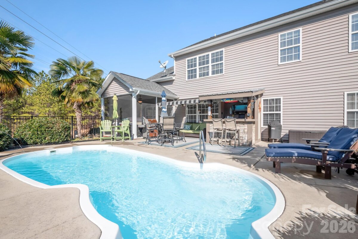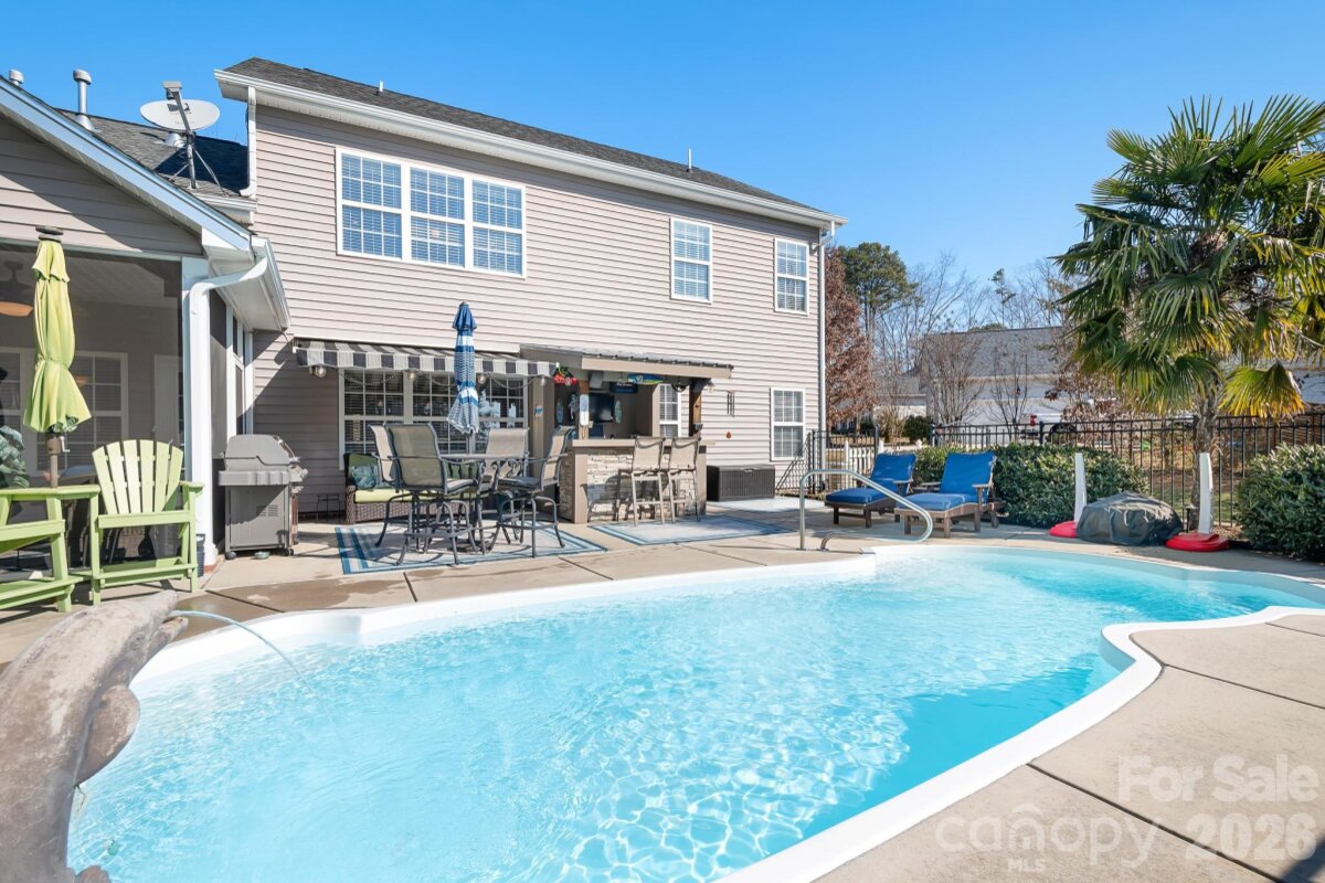 If you love entertaining, this is the home for you! Tucked away on a quiet cul-de-sac, this exceptional home is situated on one of the largest lots in the community and offers the perfect blend of everyday comfort spaces and outdoor living. Step outside to your own private backyard retreat featuring an inground swimming pool, outdoor cabana, and screened porch, which makes it ideal for summer gatherings, quiet mornings, or relaxing evenings at home. Inside, the great room is warm and inviting with a gas fireplace accented by stone and flanked by custom built-ins, creating a stunning focal point and cozy gathering space. Kitchen is both stylish and functional, featuring granite countertops, stainless steel appliances, and a custom backsplash that adds a polished touch. A thoughtfully designed floor plan includes a main level primary suite that offers convenience and privacy, highlighted by an elegant tray ceiling that adds warmth and character. The dining room also features a tray ceiling, creating a welcoming space for special dinners and celebrations. Upstairs, you will find three additional bedrooms plus a generous bonus room with a full bathroom, providing flexible living space for guests, recreation, or a bedroom. Located in a desirable Denver location, this home offers exceptional convenience with walkability to Cowans Ford Golf & Country Club and proximity to shopping, dining, and Lake Norman amenities. A rare opportunity combining location, privacy, and lifestyle.