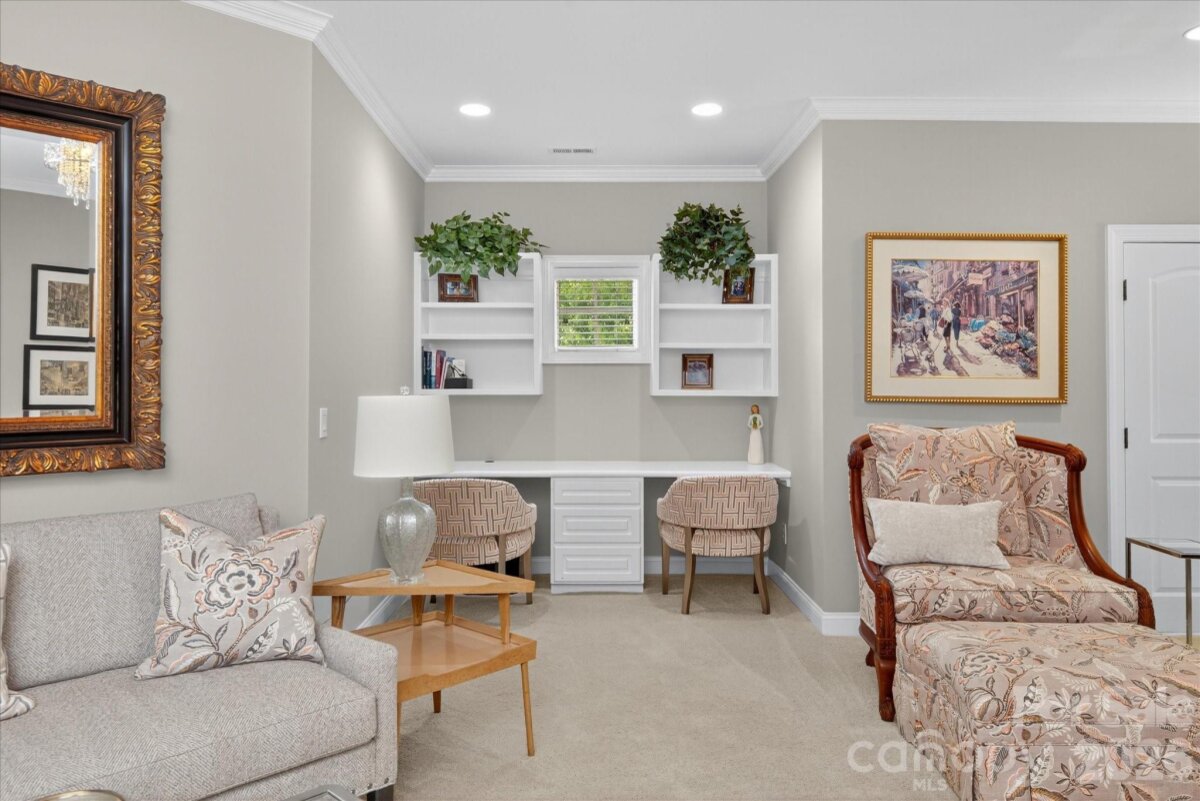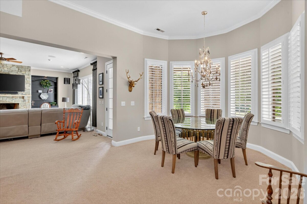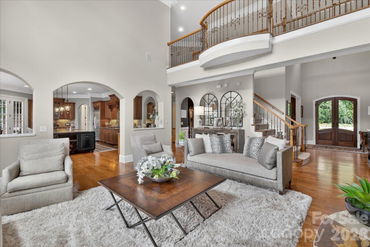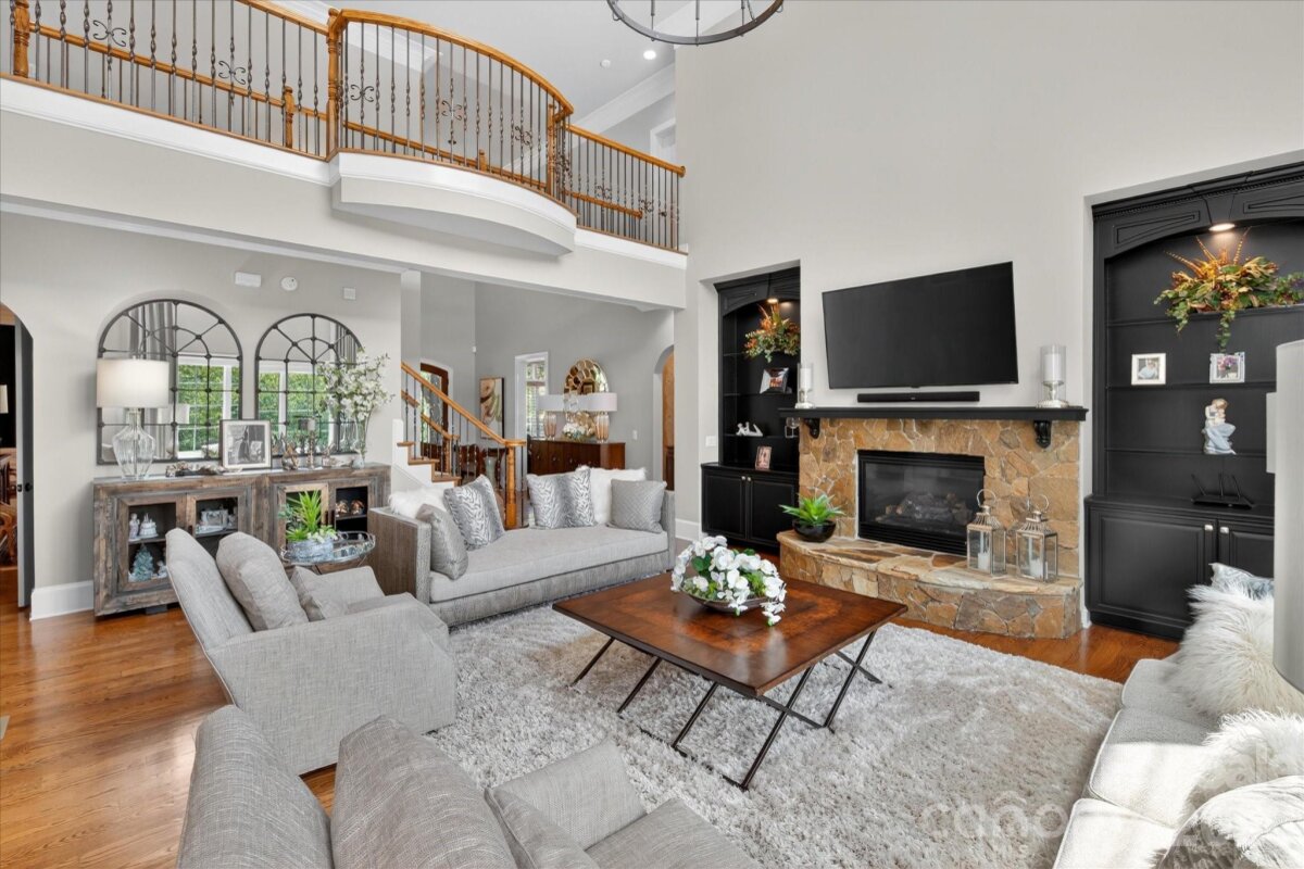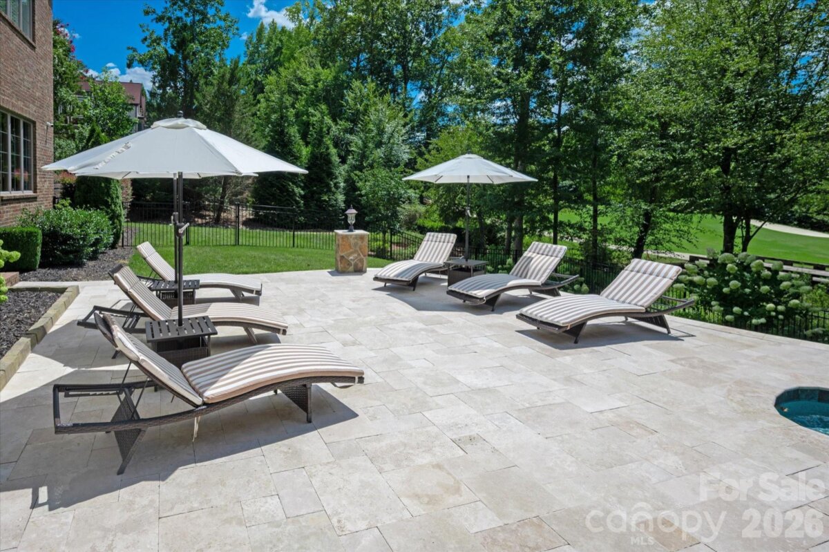 Exceptional brick home on 13th tee box of Country Club of the Carolinas w/ a private backyard oasis. Heated pool, spa & travertine pavers create resort-style retreat. Main level features:10' ceilings, oak floors, office w/ vaulted ceilings, wet bar & built-ins. Spacious primary suite on main w/ vaulted ceilings, 2 walk-in custom closets & dual vanities. Main-level guest suite w/ full bath. 2 story great room opens to chef’s kitchen w/ oversized granite island. Upstairs offers 3 bedrooms, 3 full baths & private living room suite. Expansive basement includes a bar w/ dishwasher, family room w/ fireplace, full bath & over 1600 sq ft of unfinished space—already stubbed for plumbing & has HVAC—perfect for a gym, guest suite, or flex rooms. 2022 roof, whole-home water filtration, irrigation, landscape lighting, screened porch w/ fireplace, covered patio w/ fireplace & 4-car garage. Golf course views in a premier country club setting complete this entertainer’s dream right on the state line.