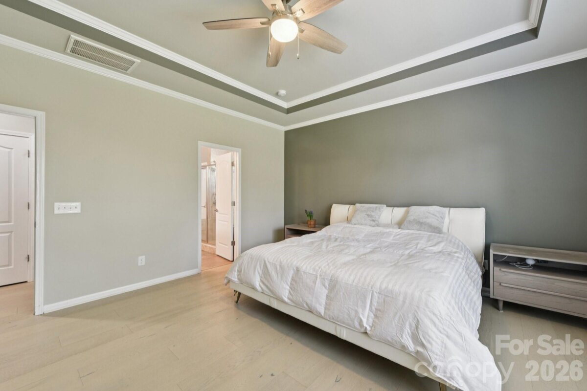 This 5-bedroom, 3.5-bathroom masterpiece in the Habersham community offers a perfect blend of luxury and functional design. The spacious main-level primary bedroom features a striking trey ceiling, a massive walk-in closet, and a deluxe bath suite with double vanity & unwind in the spa-like shower after a long day. The culinary hub is equipped with a gas cooktop, kitchenaid in-wall oven and microwave, elegant granite counters, a large island, a walk-in pantry, and a vented exhaust hood. Host formal dinners in the dedicated dining room showcasing a trey ceiling & moldings, or utilize the butler's pantry with a beverage refrigerator and breakfast room for more casual gatherings. A unique meal planning station and a dedicated home office make daily organization effortless. The great room is open to the kitchen with gas fireplace showcasing a beautiful stone surround. New 9" Mokawk engineered flooring, updated paint and beautiful moldings add an elegant touch to this stunner. The second floor opens to a large loft, ideal for a media room or playroom. You'll find secondary bedrooms spacious with walk-in closets, two full bathrooms, and walk-in storage. Relax under the pergola patio or on the custom paver patio. The yard features an irrigation system. The tandem 3 car garage with epoxi floor & EV charging station has ample space for three vehicles or extra storage and a workshop area. The easy connectivity to shopping, dining, parks & entertainment along with the community pool, playground, walking trails & sidewalks makes Habersham a wonderful place to call home!