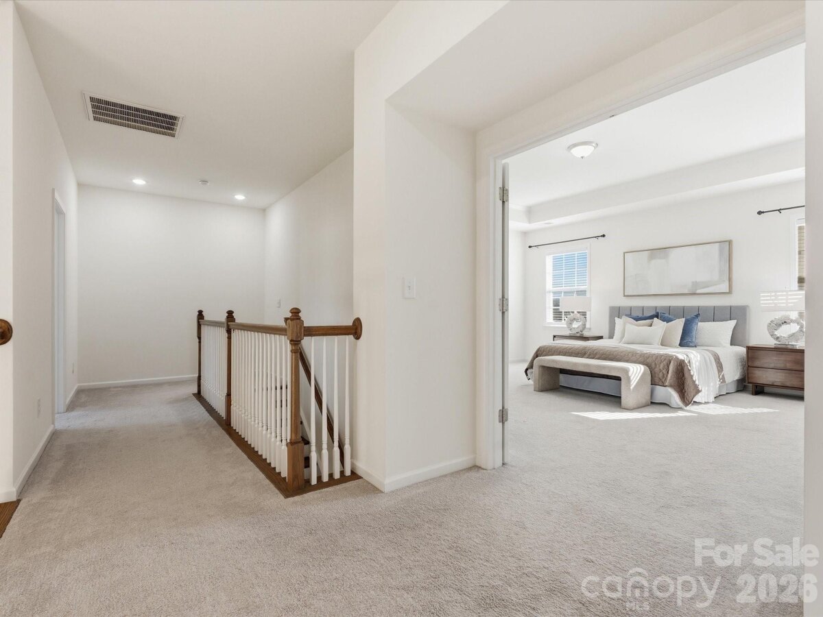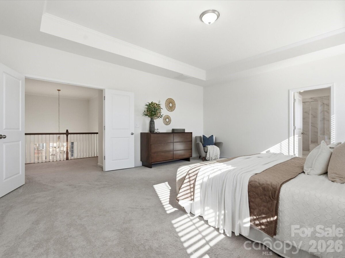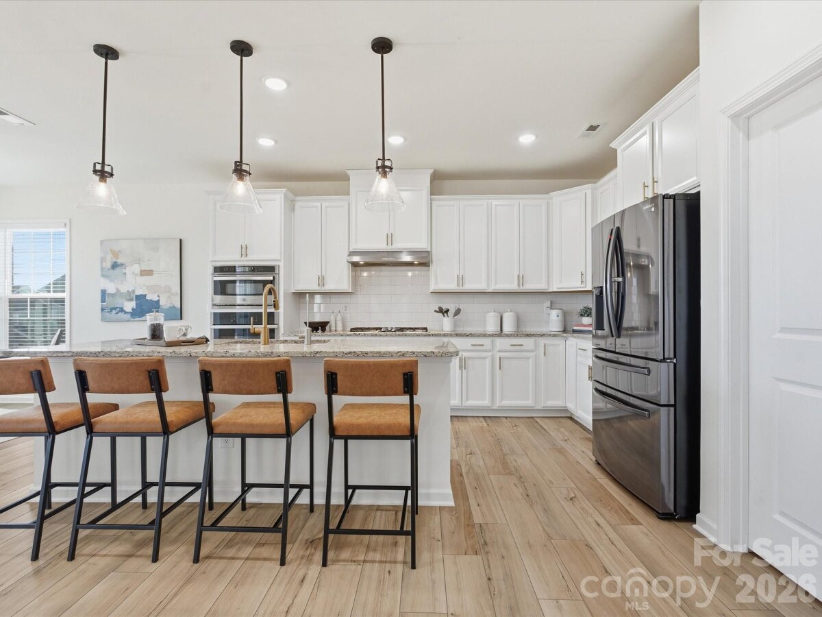 Exceptional, move-in-ready living awaits in this stunning 5-bedroom, 4-bath residence adorned with elegant stone accents, nestled in the highly sought-after Covington community—just minutes from Charlotte’s prestigious Ballantyne area, offering premier shopping, dining, and effortless highway access for an easy commute. A grand two-story foyer sets the tone, leading into a beautifully appointed main level featuring durable, designer LVP flooring and a sophisticated neutral palette throughout. The expansive formal dining room is ideal for hosting unforgettable gatherings. At the heart of the home, the gourmet kitchen impresses with crisp white cabinetry accented by antique gold hardware, wall ovens, gas cooktop with vented hood, oversized island with seating, sun-filled breakfast area, and a spacious walk-in pantry—perfect for both everyday living and elevated entertaining. The main level also offers a private guest bedroom with full bath, an inviting great room with a gas fireplace, and a convenient office nook. Step outside to unwind on the covered patio, creating a serene outdoor retreat ideal for morning coffee or evening relaxation. The upper level is highlighted by an expansive primary suite featuring a tray ceiling and a spa-inspired bath with a generous walk-in closet, dual-sink vanity, tiled shower, and a separate soaking tub. A conveniently located upstairs laundry room with a utility sink adds everyday ease. Three additional bedrooms and two full bathrooms complete the second level, offering ample space and comfort. Residents enjoy a community pool, clubhouse and playground.