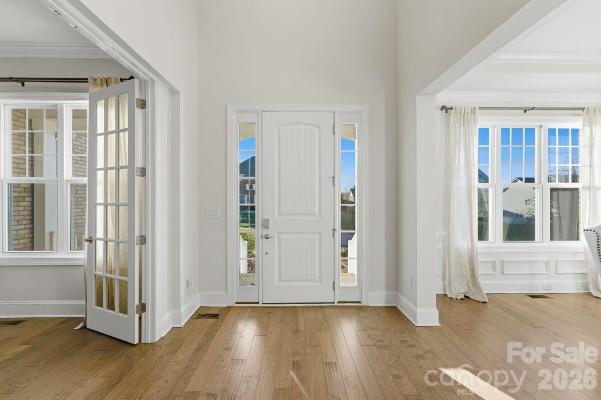 Welcome to 374 Hampton Trail, Shea Homes builder, a stunning full-brick luxury home located in the heart of Fort Mill’s desirable Habersham community, known for its family-oriented atmosphere, sidewalks, amenities, and top-rated schools. This residence offers the rare combination of timeless architecture, modern livability, privacy, and location — ideal for families, relocation buyers, and executives seeking space and convenience. Spanning approximately 4,300 square feet, this thoughtfully designed home features soaring 12-foot ceilings, abundant natural light, and elegant finishes throughout. A grand two-story foyer creates an immediate sense of scale and sophistication, leading into formal and casual living spaces that flow seamlessly for both everyday living and entertaining. The gourmet kitchen serves as the heart of the home, showcasing an oversized island, Quartz countertops, gas cooktop, wall oven, and generous cabinetry — perfect for family gatherings and hosting. It opens directly to the dramatic family room, where tall windows, a cozy fireplace, and architectural details elevate the space. A highly sought-after main-level guest suite with a full bedroom and bathroom provides flexibility for multi-generational living, visitors, or a private home office. Upstairs, the primary suite is a private retreat featuring a spa-inspired bathroom, separate jacuzzi tub and shower, and an expansive walk-in closet with custom built-ins. Step outside to the second-level balcony, shared with the oversized bonus room — an ideal space for morning coffee, quiet evenings, or entertaining. The bonus room is wired for surround sound, making it perfect for movie nights or a media lounge. Two additional bedrooms share a Jack-and-Jill bathroom, offering both functionality and comfort. The home sits on a flat, private backyard with mature landscaping and ample space for a future pool, outdoor entertaining, or play — a true extension of the home’s lifestyle appeal. Additional highlights include: • 3-car garage • Hardwood floors and plush New Carpet • High ceilings throughout • Custom closets and storage • Quiet, sidewalk-lined neighborhood with amenities Located just minutes from Baxter Village and Kingsley, near Tega Cay Golf, parks, and recreation, and approximately 30 minutes to Charlotte Douglas International Airport, this home offers exceptional access for commuters and relocation buyers while maintaining a peaceful residential setting. Zoned for Fort Mill’s highly acclaimed schools, this is a location buyers consistently seek. This is more than a home — it’s a lifestyle defined by space, privacy, luxury, top schools, and unmatched convenience