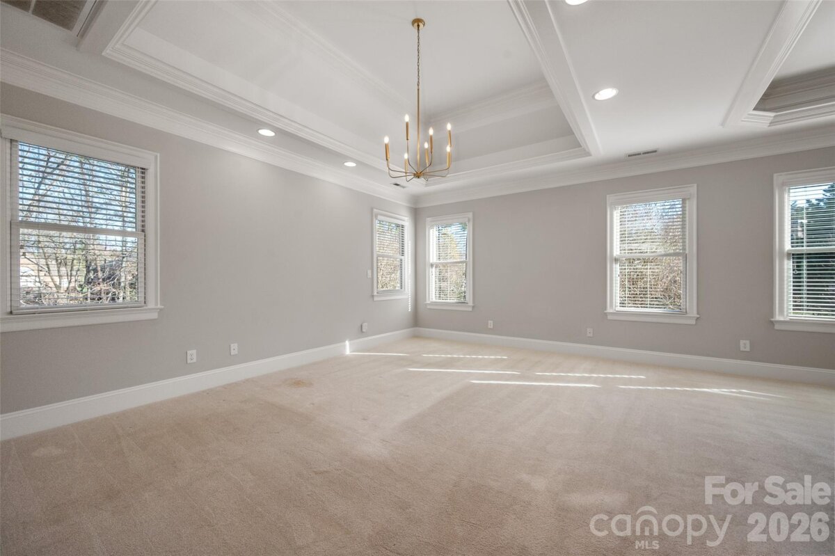 Stunning custom estate in the highly sought-after Springfield community. Perfectly positioned on a coveted cul-de-sac and set on one of Springfield’s largest homesites (.74 acres). From the moment you arrive, the home’s striking curb appeal and timeless Southern elegance make a lasting impression. Double wood entry doors, expansive flagstone front and rear porches, and an oversized 3-car garage welcome you home. Sun-filled interiors create a bright, inviting atmosphere throughout. Main Level: Grand two-story foyer; rich natural-tone flooring; executive office; impressive great room; bonus room and butler’s pantry with custom built-ins; extensive architectural moldings; private first-floor guest ensuite; and a highly desirable open-concept layout ideal for both everyday living and entertaining. Upper Level: Luxurious primary retreat featuring a sitting area, fireplace, and two spacious walk-in closets; three additional bedrooms plus a versatile bonus room. Third Floor: Private bedroom or flex space with full bath and an additional oversized bonus room—perfect for a media room, fitness space, or retreat. Springfield amenities include membership to Anne Springs Close Greenway, resort-style pool, tennis and pickleball courts, playground, clubhouse, pocket parks, and fitness center. An 18-hole public golf course is also located within the community.