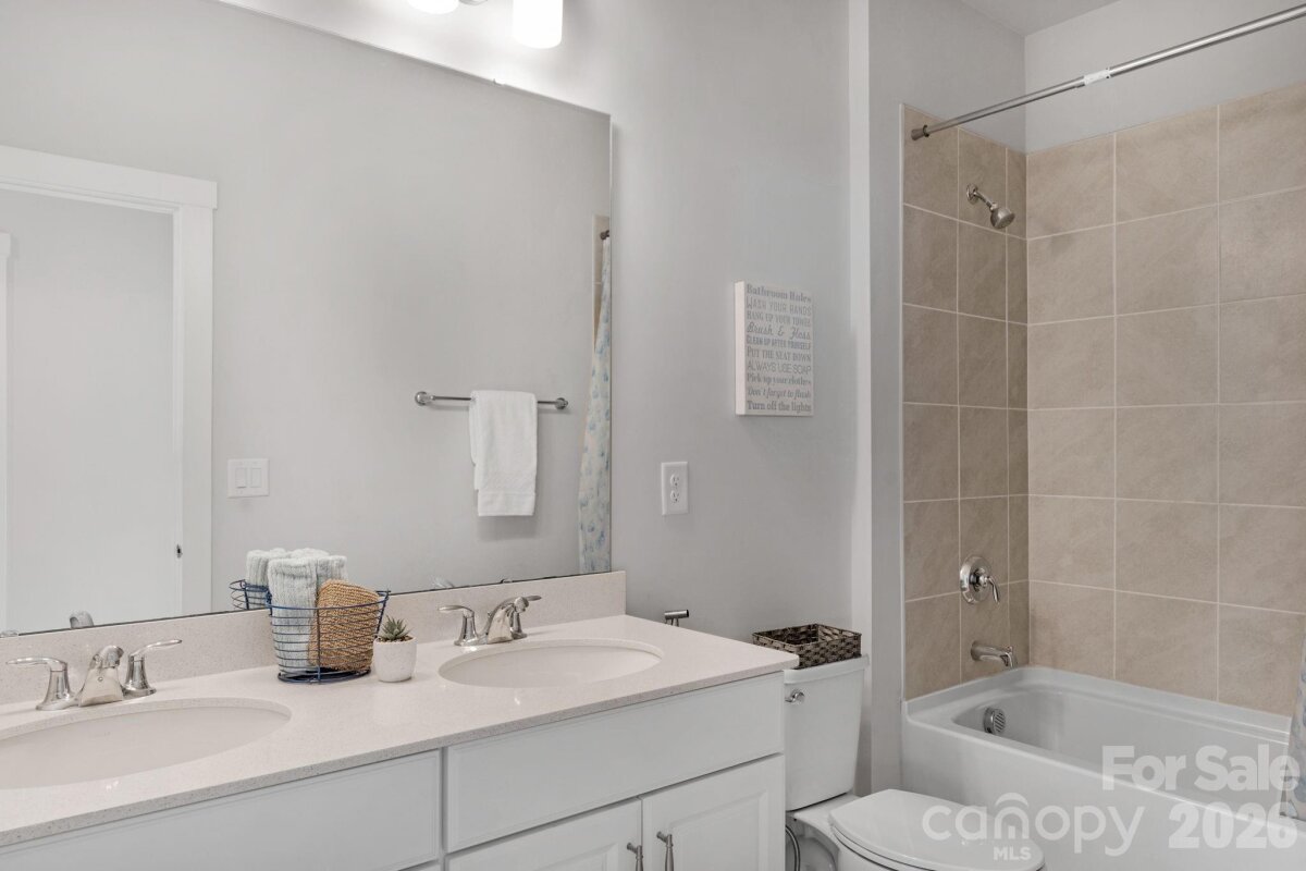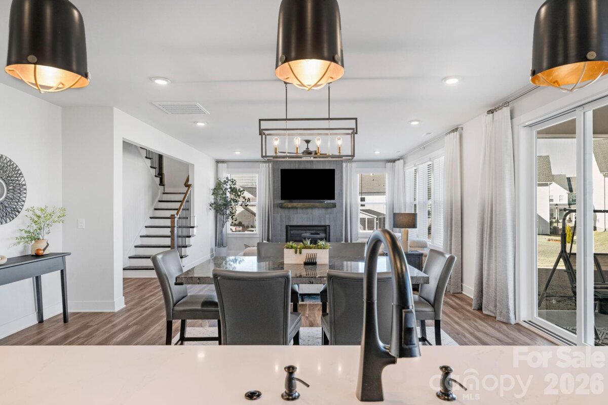 Stunning 3-bedroom, 2.5-bath modern farmhouse located in the highly sought-after Ridgecrest community, just minutes from shopping, dining, and convenient highway access. This beautifully appointed Toll Brothers home is filled with designer-selected finishes and shows like a model. The gourmet kitchen is a true showstopper, featuring elegant, stacked cabinetry, gleaming quartz countertops, designer lighting, a gas cooktop with vented hood, wall oven, expansive island with storage and seating, a generous dining area, and a large walk-in pantry. Entertain effortlessly as custom multi-slide stacked doors open to a covered patio complete with a charming stone fireplace—perfect for indoor-outdoor living. The open-concept main level showcases neutral tones and luxury vinyl plank flooring throughout, a spacious home office with French doors, a stylish powder room, and a sun-filled great room highlighted by a modern gas fireplace. An open staircase with wood treads and iron spindles leads to the second level, where a versatile loft/flex space awaits. Upstairs, retreat to the luxurious primary suite offering two walk-in closets and a spa-inspired en suite bath with a freestanding soaking tub and separate shower. Two additional bedrooms with walk-in closets, a full bath, and a conveniently located laundry room complete the upper level. Plus, a mud room and finished garage! This exceptional home blends style, comfort, and functionality in an unbeatable location.