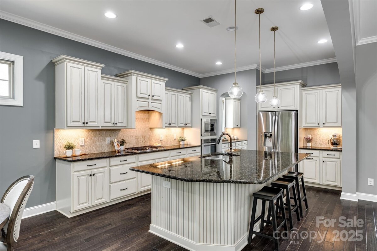Discover exceptional value with built-in equity in the sought-after Eppington South community! This spacious 5-bedroom, 4-bath home combines timeless design with modern livability. From the inviting two-story foyer with detailed wainscoting to the open-concept main level, every space is designed for comfort and style. The great room features a gas fireplace and built-in surround sound, seamlessly connected to a chef’s kitchen with granite countertops, a gas range, a convection oven, a large island, and a walk-in pantry, perfect for both daily living and entertaining. A main-level guest suite with a full bath adds flexibility for visitors or multi-generational living. Upstairs offers four additional bedrooms, a generous bonus room (ideal as a sixth bedroom or media space), and three full baths. The elegant owner’s suite features a coffered ceiling, dual vanities, a soaking tub, and a tiled shower. Enjoy outdoor living on the screened porch and deck overlooking a fenced, wooded backyard, ready for your personal touch. With ample space and privacy, it’s the perfect blank canvas to design your dream retreat with a pool, fire pit, or outdoor kitchen. A 3-car garage completes the picture of comfort, space, and possibility. Priced at $895,000, this Eppington South home delivers exceptional value and built-in equity for a lucky buyer!
