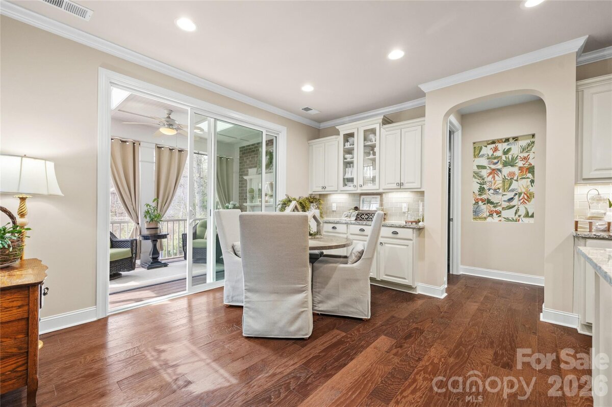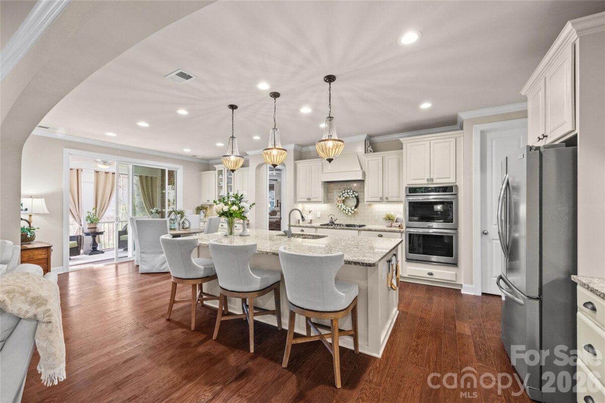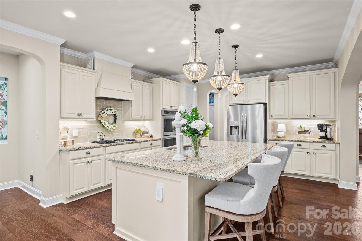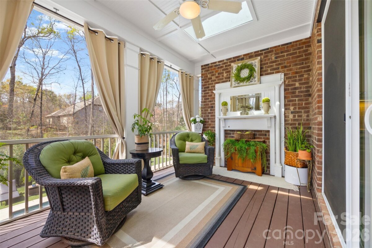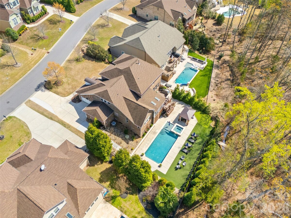 Nestled in a wooded backdrop, the immaculately maintained, full-brick home in prestigious Eppington South, features a heated pool with a hot tub as the centerpiece of this backyard retreat. You can feel the custom finishes from the moment you step in from the covered front porch, onto gleaming handscraped hardwoods that run throughout the entire home (no carpet). The entrance foyer is flanked by an office or flex space with gorgeous French Doors, and a dining room with a butler's pantry that leads into a chef's kitchen. An expansive island anchors the kitchen, which boasts a gas range with a wood hood, double ovens, microwave in the island, Frigidaire Gallery series stainless steel refrigerator (included), Rev-A-Shelf and additional cabinet pullouts, designer knobs, breakfast area, and more. The kitchen opens to the great room, which features a brick gas fireplace providing a cozy atmosphere, and the ample windows provide views to the tree-lined backyard. The oversized primary suite on the main floor is tucked away, and features ceiling trim, split-vanities in the bathroom, a tiled walk-in shower with a bench, soaking tub for evening relaxation, and dual custom owner's closets with convenient access to the laundry room. The laundry room provides loads of extra storage, and access through to the drop zone area with built-ins. The downstairs half bath has been upgraded with a custom vanity and designer tile on the walls, over board and batten wainscoting. The open stair rail leads you to a large upstairs loft area, and upstairs you'll find 3 bedrooms with walk-in closets, another generous bedroom or bonus space, 2 full bathrooms, and 2 walk-in attic areas for extra storage. As you head outside you start at a screened porch off the breakfast area, which is the perfect spot to enjoy your morning coffee. The uncovered deck space with a built-in grill center is perfect for entertaining, and offers great views of this outstanding backyard! The PebbleTec finish heated pool has a hot tub with a waterfall into the pool, providing a peaceful ambiance. There is turf around the pool for easy maintenance, and a pergola with a seating area to enjoy the shade. A golfer's dream with a putting green, or fun for the golf recreation novice. You'll find abundant seating around the pool, and even a pool area half bathroom, with storage for convenience. There is ample parking, including a three-car garage and an expanded driveway, and includes details such as landscape and accent lighting. The homeowners have maintained this home to perfection, adding additional landscaping and privacy trees in the front and backyard, Wi-Fi-controlled trim lighting, tinted windows for energy improvement, and more! Be sure to see the full list of seller upgrades. Eppington South has one of the most central locations in Fort Mill, just minutes from I-77, located right off Gold Hill Rd, and with low SC taxes and award-winning schools, look no further for your ideal Fort Mill home!