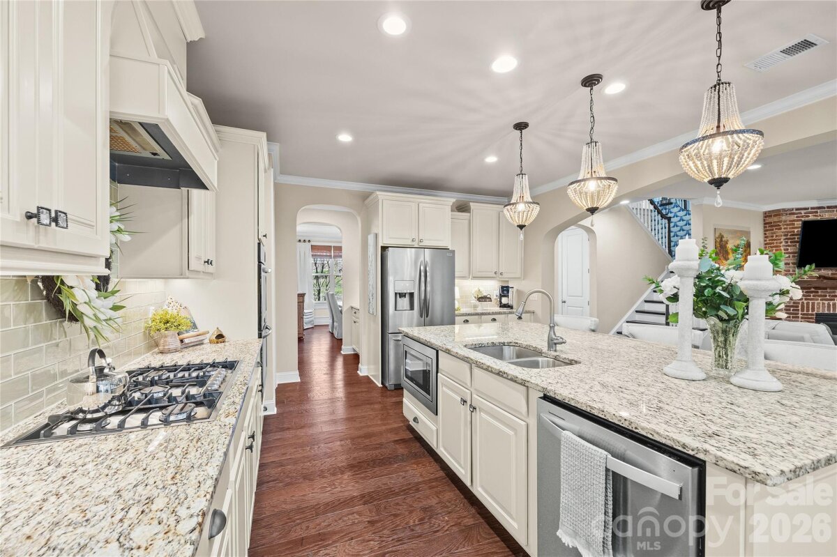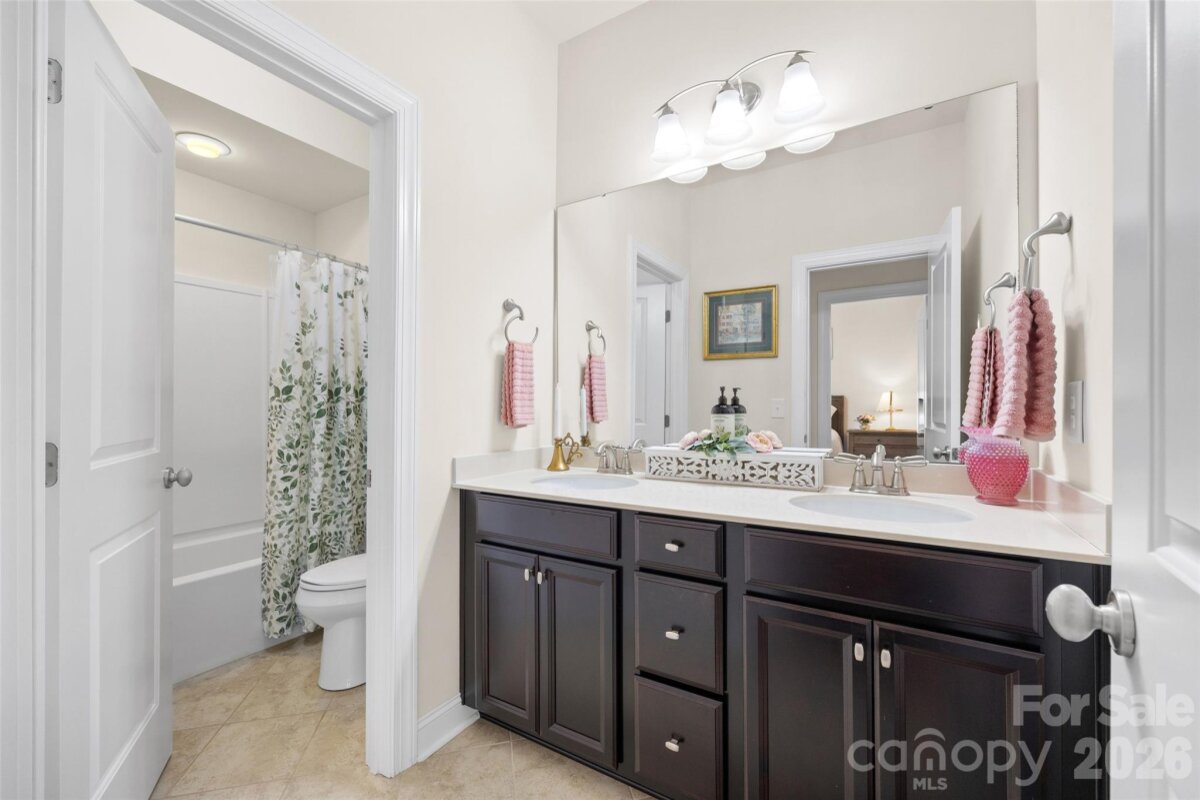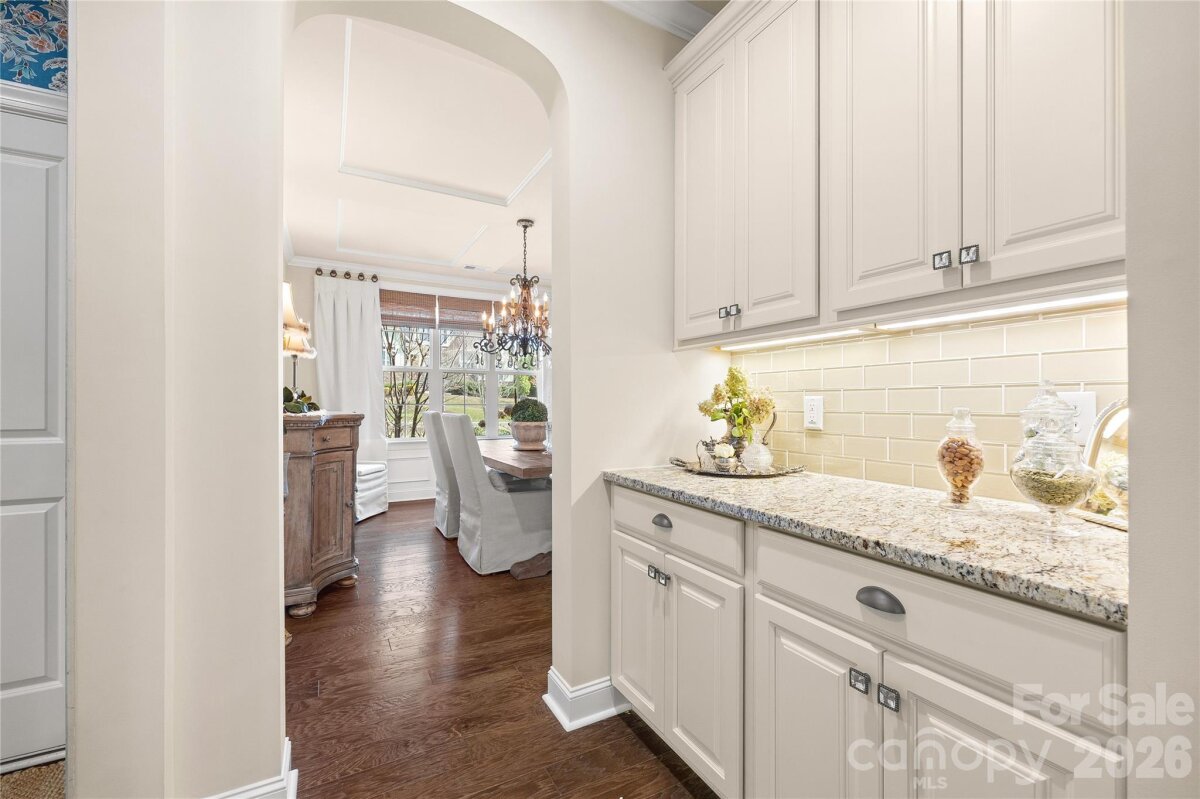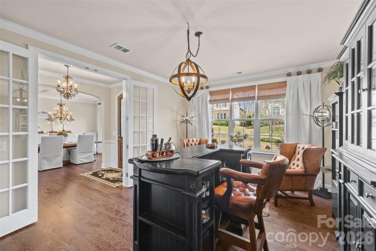 Nestled in a wooded backdrop, the immaculately maintained, full-brick home in prestigious Eppington South, features a heated pool with a hot tub as the centerpiece of this backyard retreat. You can feel the custom finishes from the moment you step in from the covered front porch, onto gleaming handscraped hardwoods that run throughout the entire home (no carpet). The entrance foyer is flanked by an office or flex space with gorgeous French Doors, and a dining room with a butler's pantry that leads into a chef's kitchen. An expansive island anchors the kitchen, which boasts a gas range with a wood hood, double ovens, microwave in the island, Frigidaire Gallery series stainless steel refrigerator (included), Rev-A-Shelf and additional cabinet pullouts, designer knobs, breakfast area, and more. The kitchen opens to the great room, which features a brick gas fireplace providing a cozy atmosphere, and the ample windows provide views to the tree-lined backyard. The oversized primary suite on the main floor is tucked away, and features ceiling trim, split-vanities in the bathroom, a tiled walk-in shower with a bench, soaking tub for evening relaxation, and dual custom owner's closets with convenient access to the laundry room. The laundry room provides loads of extra storage, and access through to the drop zone area with built-ins. The downstairs half bath has been upgraded with a custom vanity and designer tile on the walls, over board and batten wainscoting. The open stair rail leads you to a large upstairs loft area, and upstairs you'll find 3 bedrooms with walk-in closets, another generous bedroom or bonus space, 2 full bathrooms, and 2 walk-in attic areas for extra storage. As you head outside you start at a screened porch off the breakfast area, which is the perfect spot to enjoy your morning coffee. The uncovered deck space with a built-in grill center is perfect for entertaining, and offers great views of this outstanding backyard! The PebbleTec finish heated pool has a hot tub with a waterfall into the pool, providing a peaceful ambiance. There is turf around the pool for easy maintenance, and a pergola with a seating area to enjoy the shade. A golfer's dream with a putting green, or fun for the golf recreation novice. You'll find abundant seating around the pool, and even a pool area half bathroom, with storage for convenience. There is ample parking, including a three-car garage and an expanded driveway, and includes details such as landscape and accent lighting. The homeowners have maintained this home to perfection, adding additional landscaping and privacy trees in the front and backyard, Wi-Fi-controlled trim lighting, tinted windows for energy improvement, and more! Be sure to see the full list of seller upgrades. Eppington South has one of the most central locations in Fort Mill, just minutes from I-77, located right off Gold Hill Rd, and with low SC taxes and award-winning schools, look no further for your ideal Fort Mill home!