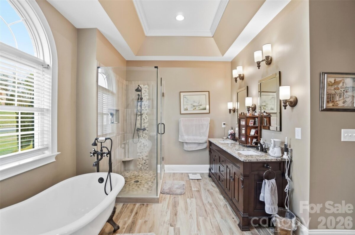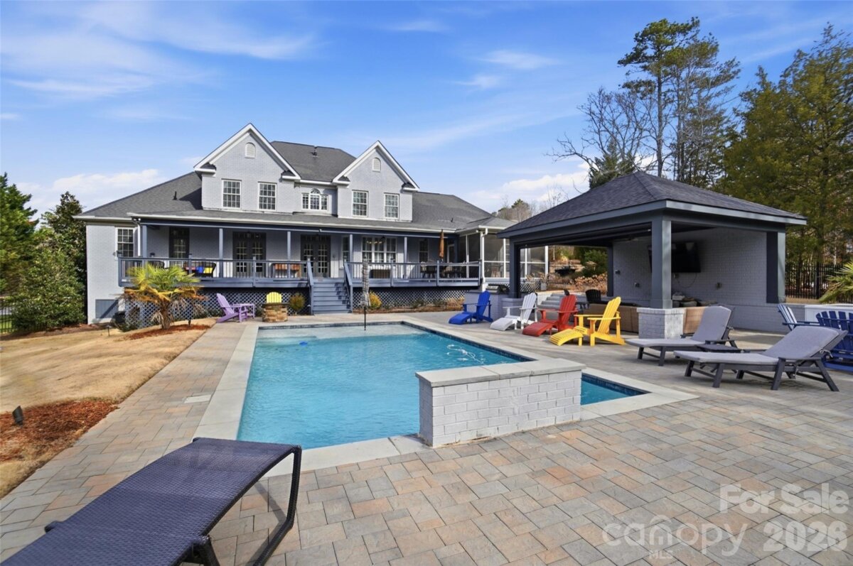 If you’ve been searching for the ultimate Fort Mill estate-style property, 704 Mayfield Court delivers. This custom full-brick home sits on 1.04 acres in Fort Mill’s award-winning school district and offers over 4,100 heated sq ft of refined living space, thoughtfully designed for both function and lifestyle. Inside, enjoy an open layout with extensive hardwoods on both levels and a beautifully updated kitchen featuring quartz countertops, stainless appliances, and freshly painted cabinetry—ideal for hosting or everyday living. The main-level primary suite is a true retreat with a tray ceiling and a luxurious bath including a tile-surround shower, clawfoot soaking tub, and dual granite vanities. Upstairs offers three large bedrooms plus a bonus room and a media room—giving you flexible space for work, play, and relaxation. Outdoors is where this home truly shines: a custom inground pool and covered cabana added in 2024, featuring a kitchen area and an incredible entertaining setup, all within a fenced backyard. Complete with a 3-car side-load garage, irrigation system, rear porch, and two wells (home + irrigation), this is a standout property in one of the area’s most desirable locations.