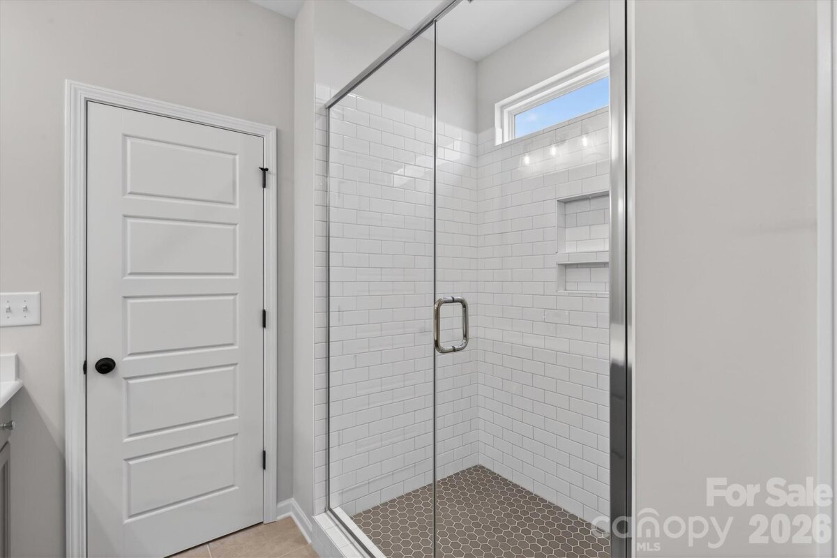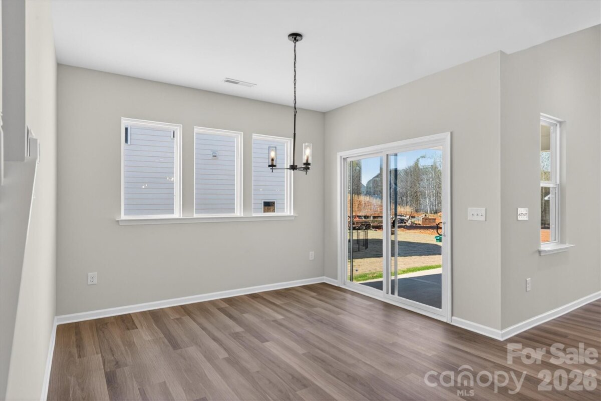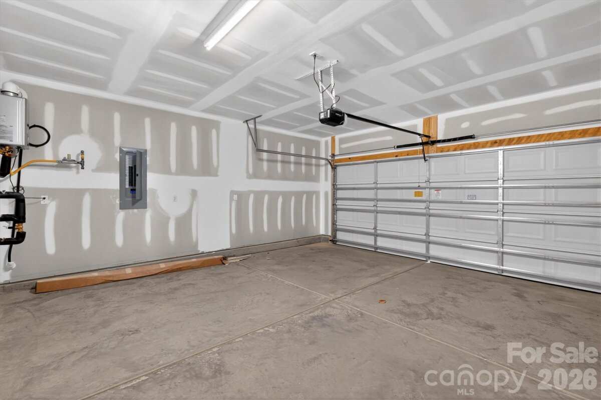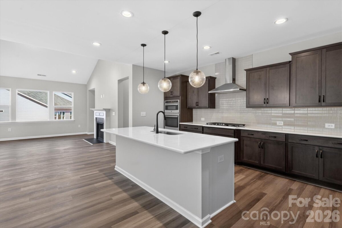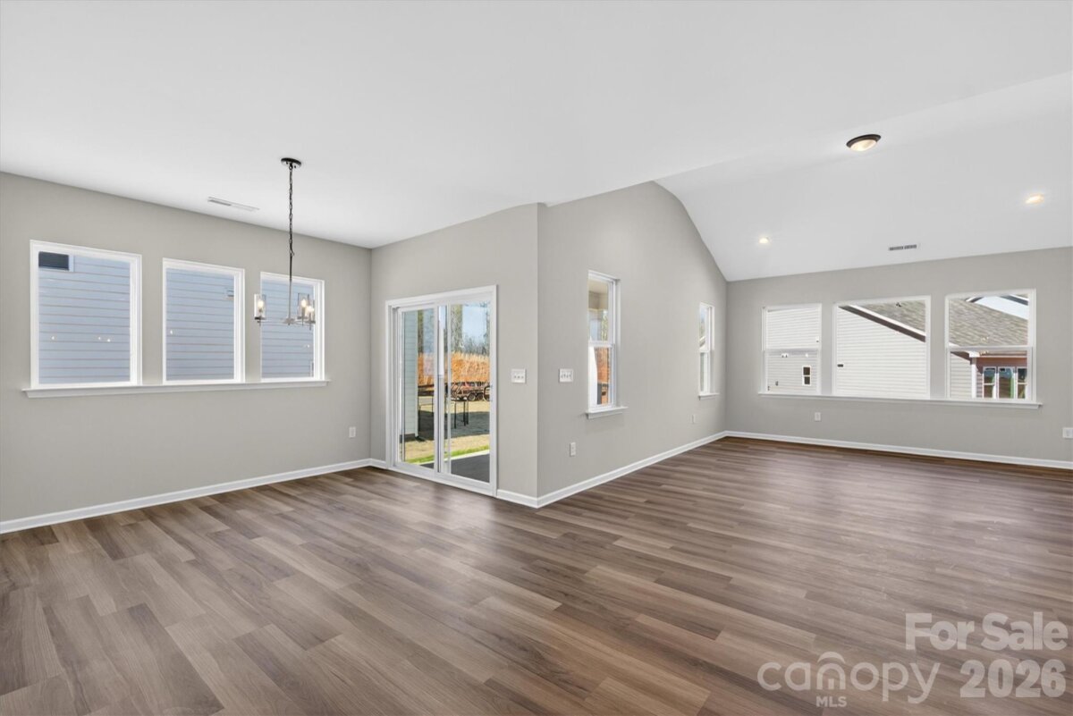 Enjoy first-floor living in this new 1.5-story home in Gastonia, with a blend of function, comfort, and style. The first floor has all the main living space, and upstairs is a spacious Rec Room, secondary bedroom and bath, plus unfinished storage space. Off the foyer is a guest bedroom and bath plus a Flex room. Beautiful, open-concept living with abundant windows for natural light; with the kitchen overlooking the dining area and family room. Kitchen features quartz counters, tile backsplash, GE stainless steel split cooking appliances with a 36" gas cooktop and extraction hood, with dark graphite-stained cabinets at the perimeter and white cabinets at the island. Off the kitchen is a Butler's Pantry which is great for entertaining, and a walk-in pantry. The Family room boasts a vaulted ceiling and gas fireplace with side niche. Enjoy the weather from the rear covered porch! Premier Suite has a tray ceiling, walk-in closet, and bathroom with large tiled shower with semi-frameless glass, quartz counters, and 12x24" floor tiles. Full baths feature quartz counters and dark-stained cabinets. LVP flooring throughout most of the first floor, with oak treads on the stairs. The laundry room is tucked away off the mudroom, which features a built-in drop zone. Home includes energy-saving features of a tankless hot water heater and radiant barrier sheathing. Community pool and tot lot! Easy access to Uptown Charlotte and the airport.