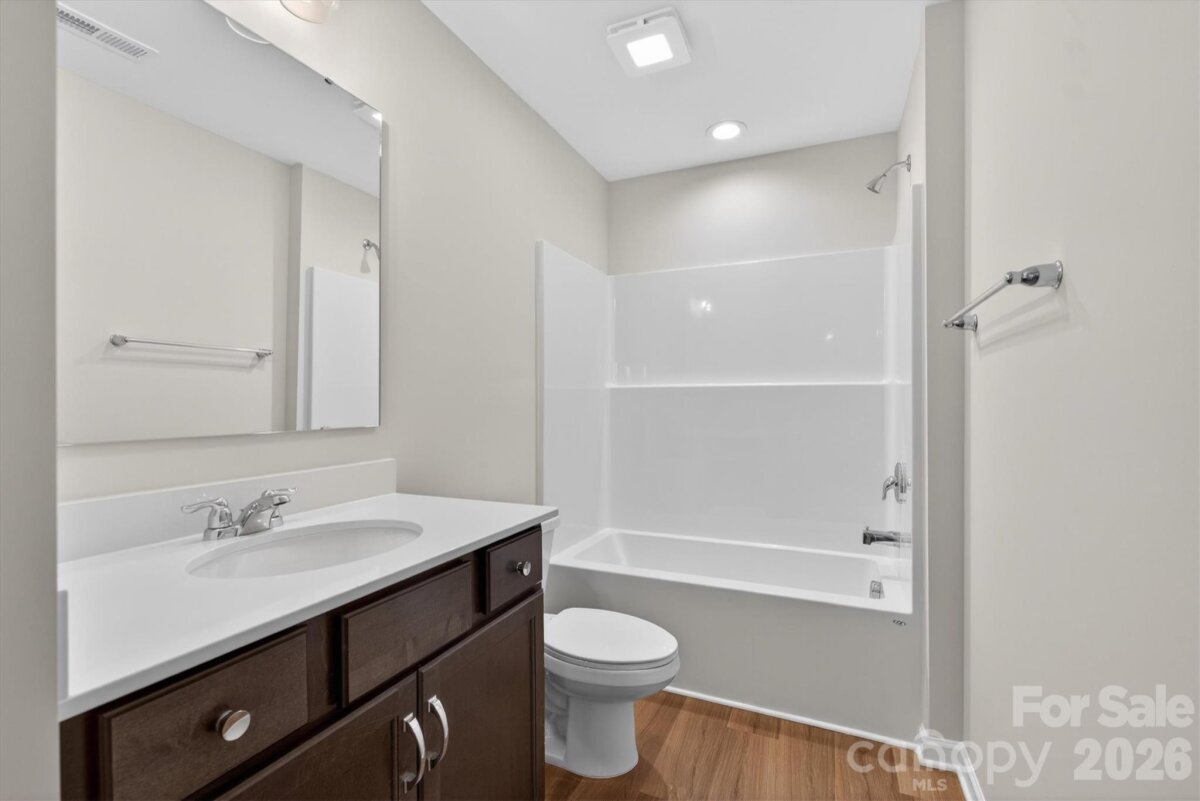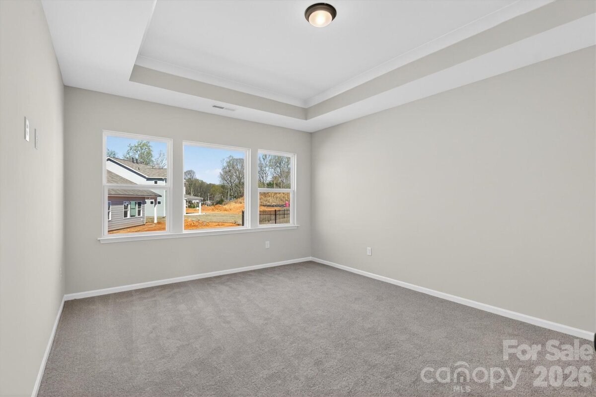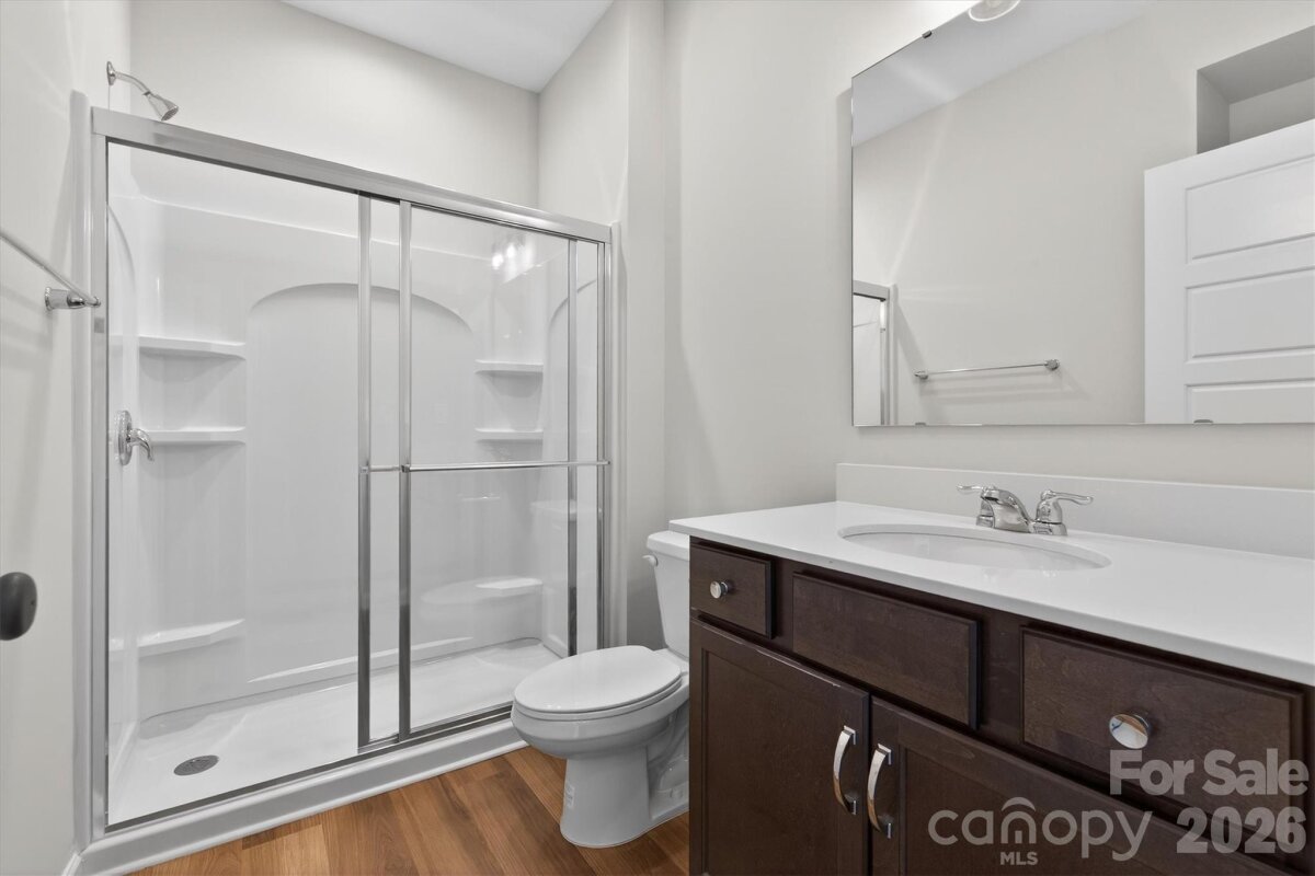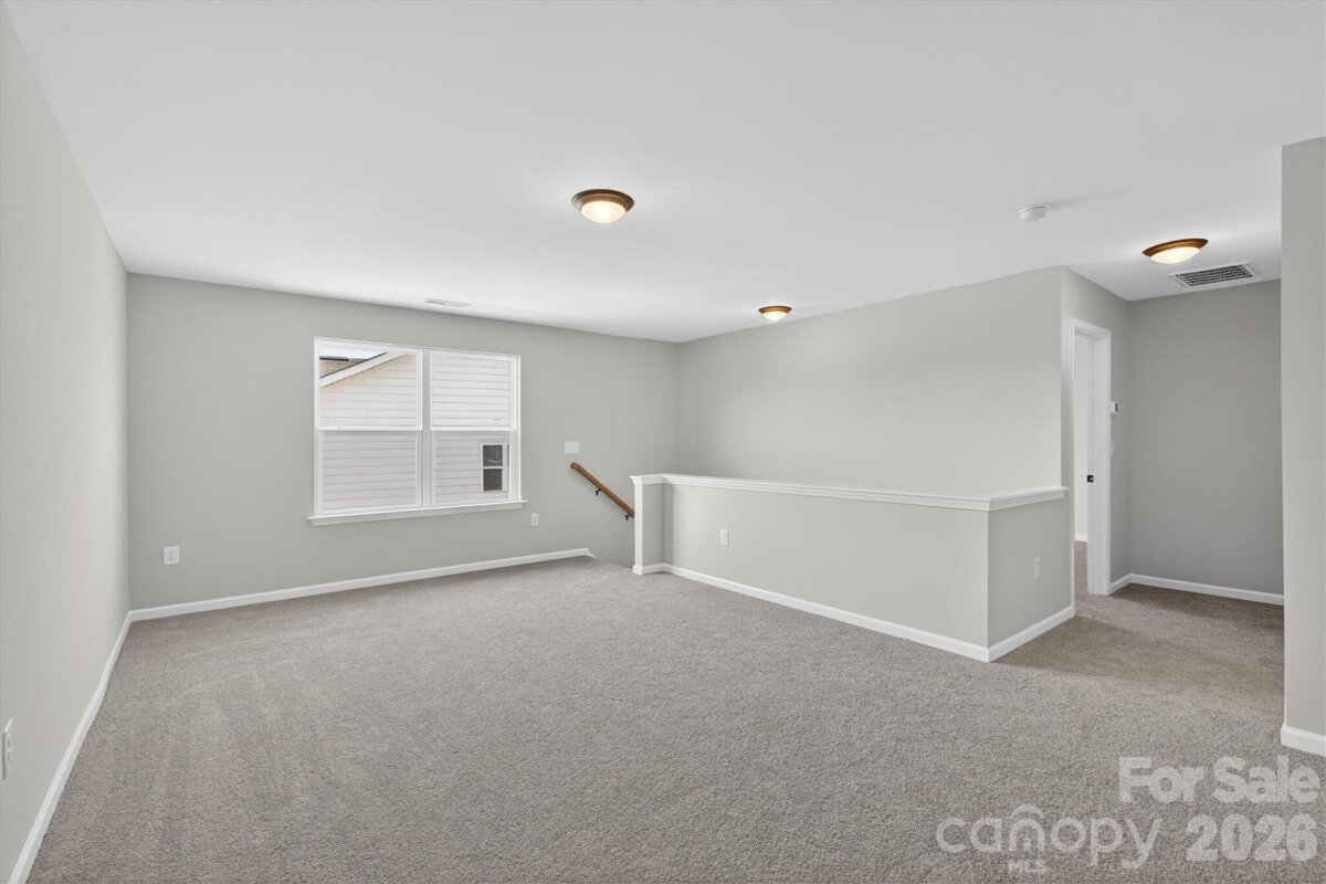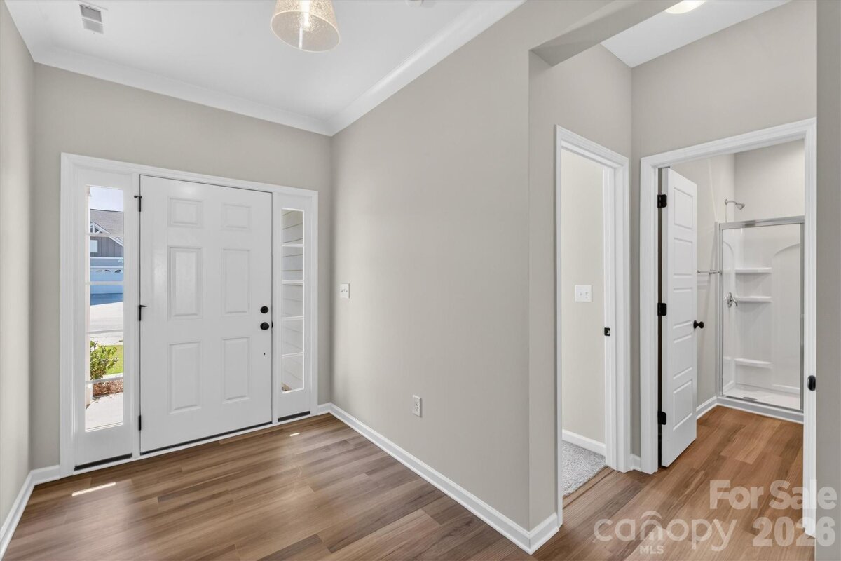 Enjoy first-floor living in this new 1.5-story home in Gastonia, with a blend of function, comfort, and style. The first floor has all the main living space, and upstairs is a spacious Rec Room, secondary bedroom and bath, plus unfinished storage space. Off the foyer is a guest bedroom and bath plus a Flex room. Beautiful, open-concept living with abundant windows for natural light; with the kitchen overlooking the dining area and family room. Kitchen features quartz counters, tile backsplash, GE stainless steel split cooking appliances with a 36" gas cooktop and extraction hood, with dark graphite-stained cabinets at the perimeter and white cabinets at the island. Off the kitchen is a Butler's Pantry which is great for entertaining, and a walk-in pantry. The Family room boasts a vaulted ceiling and gas fireplace with side niche. Enjoy the weather from the rear covered porch! Premier Suite has a tray ceiling, walk-in closet, and bathroom with large tiled shower with semi-frameless glass, quartz counters, and 12x24" floor tiles. Full baths feature quartz counters and dark-stained cabinets. LVP flooring throughout most of the first floor, with oak treads on the stairs. The laundry room is tucked away off the mudroom, which features a built-in drop zone. Home includes energy-saving features of a tankless hot water heater and radiant barrier sheathing. Community pool and tot lot! Easy access to Uptown Charlotte and the airport.