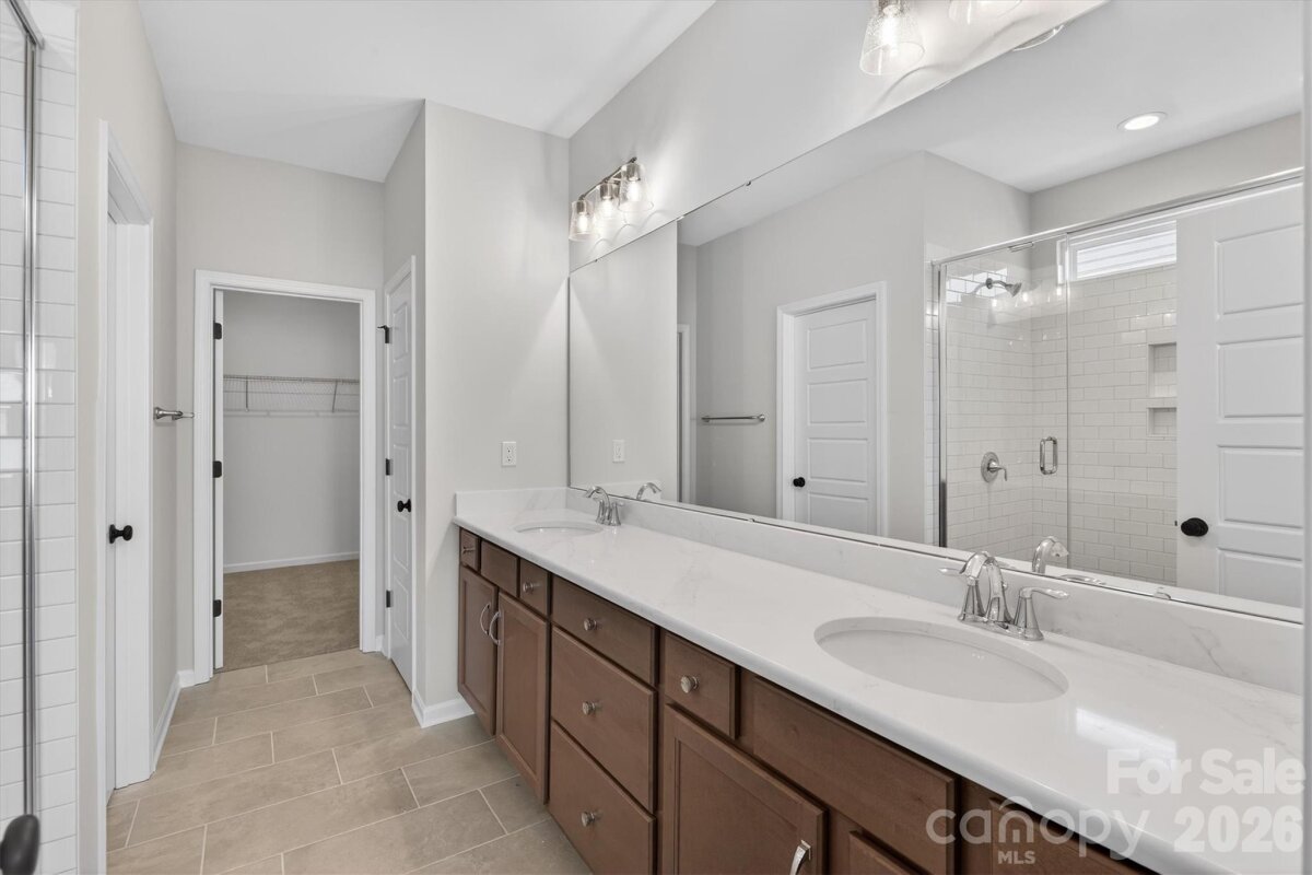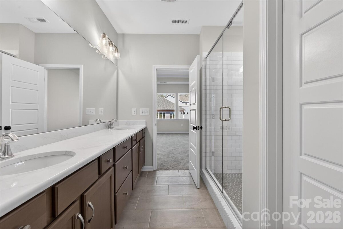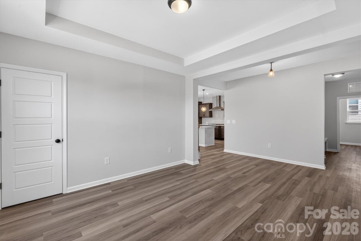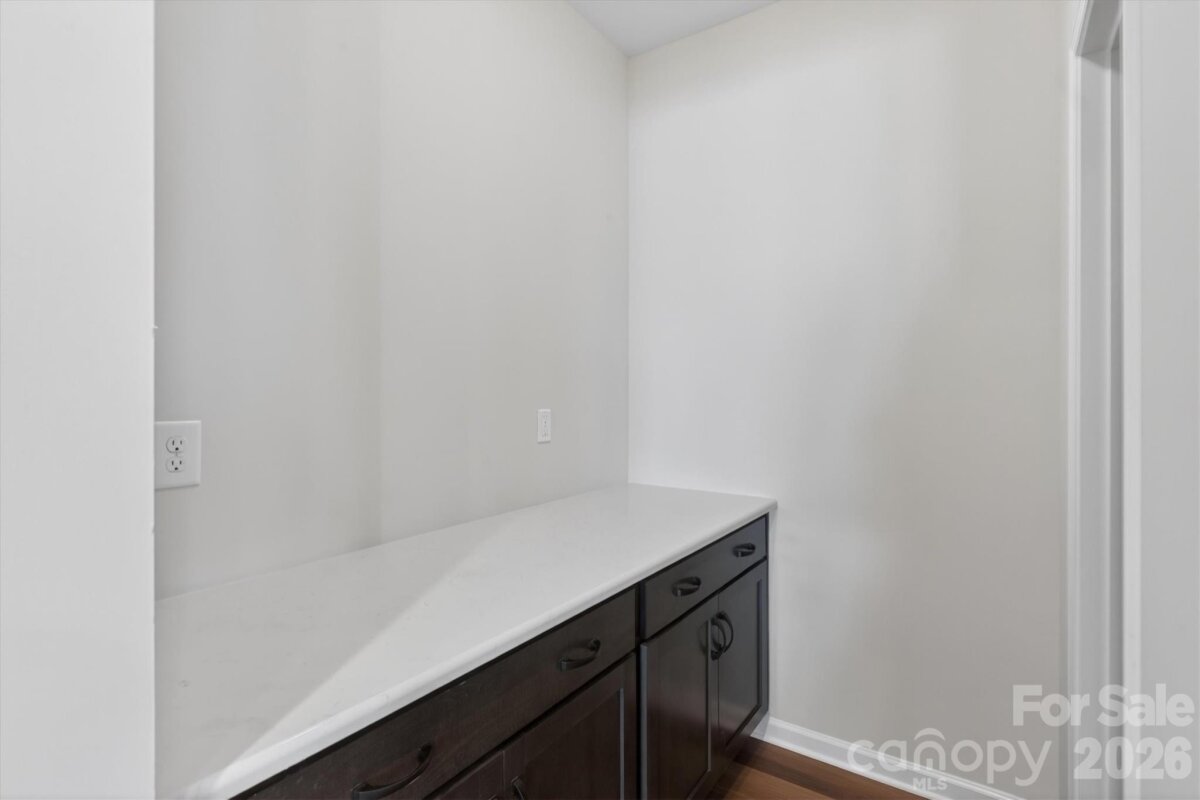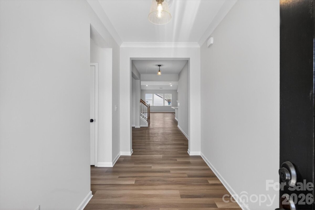 Enjoy first-floor living in this new 1.5-story home in Gastonia, with a blend of function, comfort, and style. The first floor has all the main living space, and upstairs is a spacious Rec Room, secondary bedroom and bath, plus unfinished storage space. Off the foyer is a guest bedroom and bath plus a Flex room. Beautiful, open-concept living with abundant windows for natural light; with the kitchen overlooking the dining area and family room. Kitchen features quartz counters, tile backsplash, GE stainless steel split cooking appliances with a 36" gas cooktop and extraction hood, with dark graphite-stained cabinets at the perimeter and white cabinets at the island. Off the kitchen is a Butler's Pantry which is great for entertaining, and a walk-in pantry. The Family room boasts a vaulted ceiling and gas fireplace with side niche. Enjoy the weather from the rear covered porch! Premier Suite has a tray ceiling, walk-in closet, and bathroom with large tiled shower with semi-frameless glass, quartz counters, and 12x24" floor tiles. Full baths feature quartz counters and dark-stained cabinets. LVP flooring throughout most of the first floor, with oak treads on the stairs. The laundry room is tucked away off the mudroom, which features a built-in drop zone. Home includes energy-saving features of a tankless hot water heater and radiant barrier sheathing. Community pool and tot lot! Easy access to Uptown Charlotte and the airport.