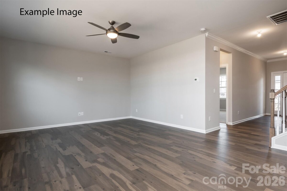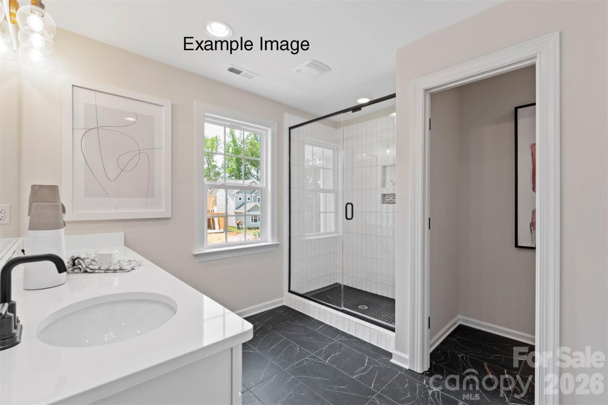 Move in before summer with this new home in Gastonia, minutes from the local YMCA and easy side-road access to the Charlotte International Airport. This home features Hardie® cement siding with stone accents and a rear covered porch, situated on a .22 acre homesite. The first-floor features a guest bedroom and full bath, and open-concept living with the family room, dining and kitchen flowing together. The L-shaped kitchen features granite counters, ivory painted perimeter cabinets with nutmeg-stained cabinets at the island, soft-close doors and drawers, tile backsplash, and GE stainless steel appliances with a gas range. Tucked just off the kitchen is a mudroom and walk-in pantry. Upstairs, you'll find a spacious Loft and the Primary Suite, complete with two walk-in closets and a 5-piece bath with a large tiled shower with semi-frameless glass, charcoal-stained cabinets, granite counters, and 12" x 24" tiled floors. Secondary baths include quartz counters, white cabinets, and tiled floors. Low-maintenance LVP floors are throughout most of the first floor plus upstairs hall and laundry room, with oak treads on the stairs. Energy-saving features include a tankless hot water heater in the garage, plus radiant barrier sheathing. This community includes a pool and tot lot, and is located near several greenways.