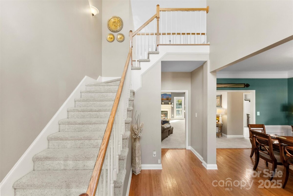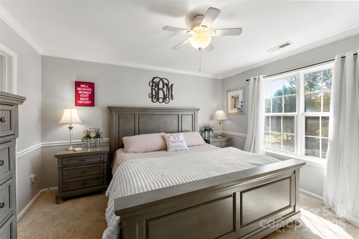 This stunning custom 4-sided brick home offers over 2,700 square feet of living space, featuring 5 spacious bedrooms with walk-in closets and 3 full bathrooms, ideal for a large or growing family. From the moment you step inside, you’ll be impressed by the sky-high ceilings, beautiful hardwood floors, crown moldings, and the inviting warmth of a gas fireplace in the 2 story living area. The open layout provides plenty of room for everyone to spread out while still feeling connected, and the natural light throughout makes the home feel bright and welcoming. A rare en-suite guest bedroom on the main floor tucked on the backside of the house. Outside, the flat front and back yards are perfect for kids to play, pets to run, or for entertaining. The 2-car garage offers convenience and extra storage. Located in a desirable neighborhood just off Gaston Day School Road, you’ll enjoy sidewalks, walking trails, and a community playground area. Add in the highly rated school district and unbeatable location close to shopping, dining, and schools, and this home truly offers the best combination of comfort, space, and everyday convenience. This home has so much to offer!