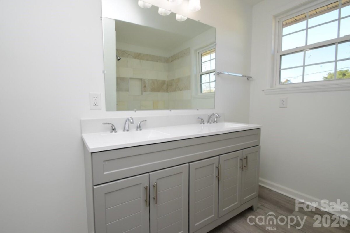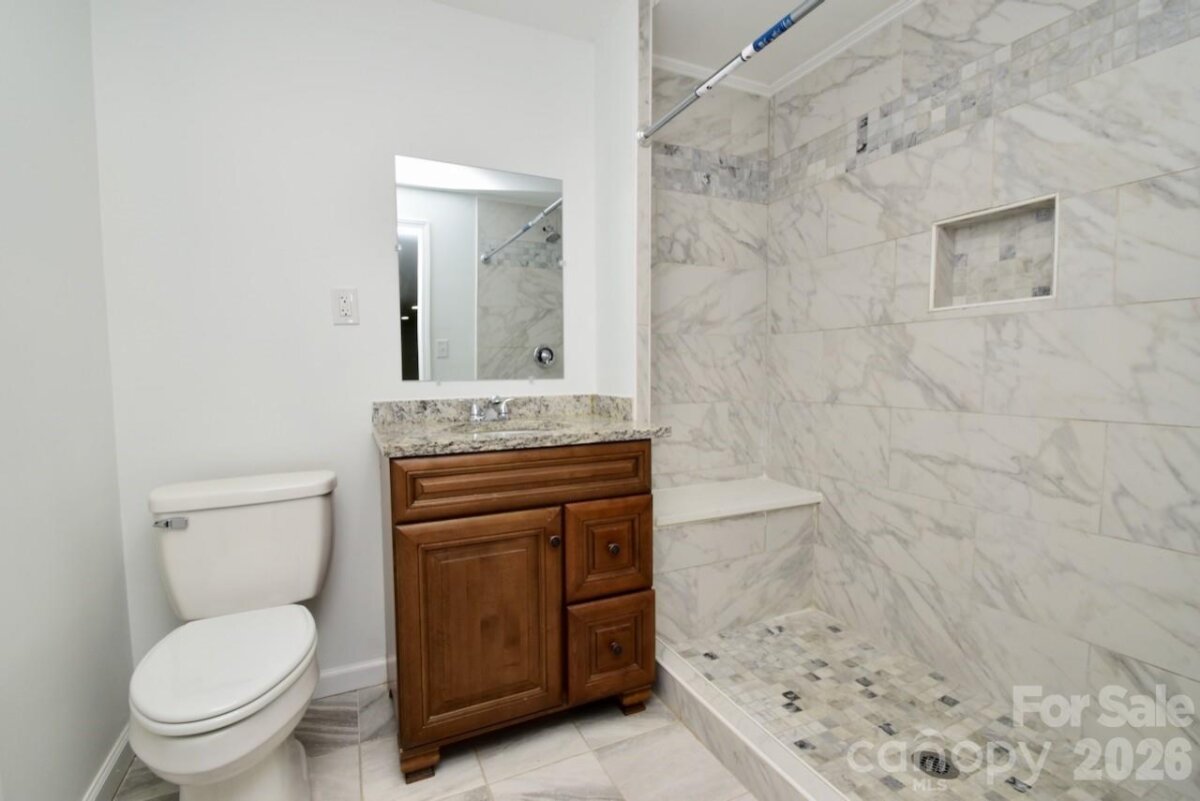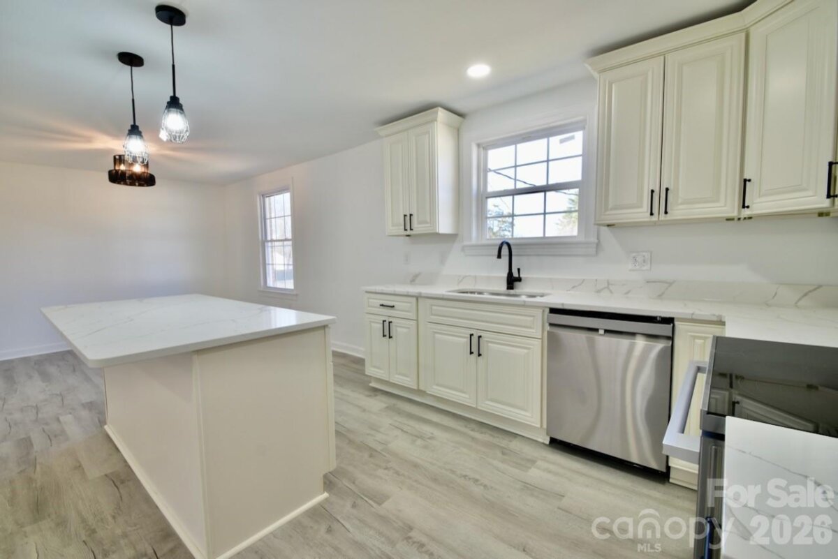 Discover this stunning, renovated full-brick ranch sitting on a private 1.21-acre lot with no HOA! Located in South Gastonia, this home perfectly blends classic durability with modern designer finishes, including a fully finished basement. The main level features a bright, open-concept layout designed for effortless entertaining. Durable LVP flooring flows through the primary living areas, anchored by a beautiful brick fireplace. The kitchen is certainly a cook's dream, boasting brand-new white cabinetry with elegant crown molding, sleek granite countertops, a center island, and new stainless steel appliances. A highlight of the main living area is the interior open staircase, which provides seamless and stylish access to the lower level while maintaining the home's airy feel. Retreat to the primary suite, where you will find a luxurious bathroom featuring ceramic tile flooring and a custom walk-in shower with a designer tile niche. The secondary bathroom on the main floor is equally impressive, offering a tile tub surround and tile flooring. The expansive finished basement significantly increases your living space, offering a large open living area and two versatile flex rooms—perfect for a home office, gym, or playroom. The third full bathroom is located in the basement and showcases premium craftsmanship with a tiled shower featuring built-in tile seating, a custom niche, and ceramic tile flooring. Above all, enjoy the freedom of nearly an acre of land in a prime Gastonia location with easy access to local amenities. This move-in-ready gem offers the space, upgrades, and privacy you have been searching for.