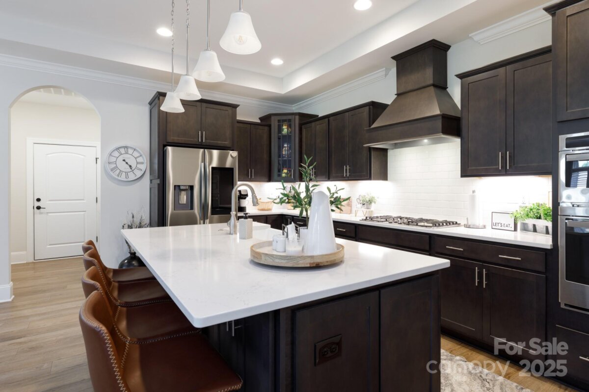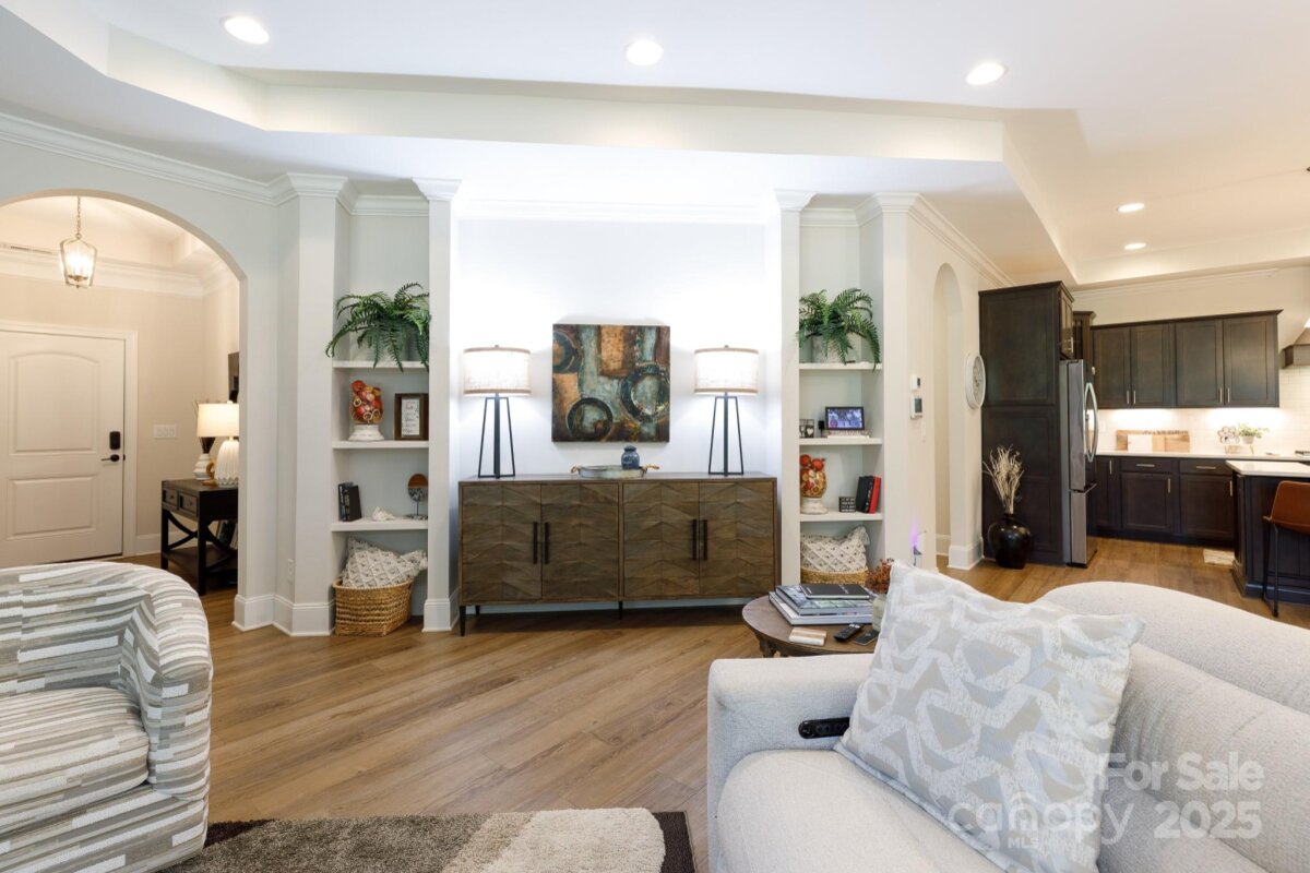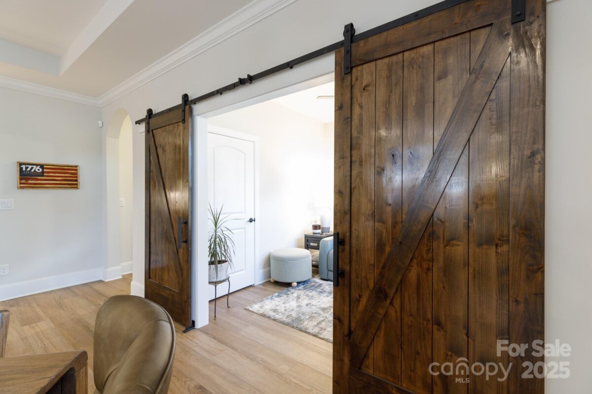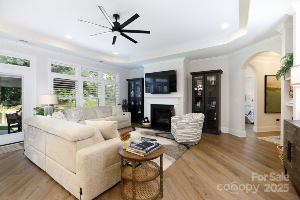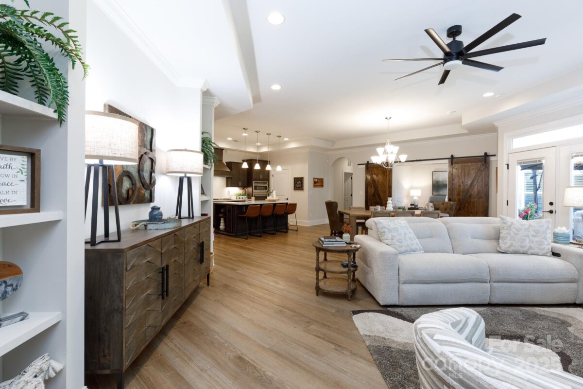 You don't have to be 55! While this is a 55+ Community, 20% of the community can fall under the age of 55. Welcome to carefree living in this stunning home. Packed with upgrades like LVP flooring runs throughout; 3½-inch plantation shutters, abundant recessed lighting, barn-style doors in the den, and Moen fixtures add designer polish in every room. Showcase kitchen with Quartz counters, a white Kohler porcelain apron sink, GE Profile appliances including gas cooktop, wall oven, and a wall microwave that doubles as a convection oven plus under-cabinet lighting and pull-out shelves in cabinets. Primary suite has a walk-in closet and a bath with a fully-tiled shower with bench and dual niches, comfort-height toilets, ceramic tile, and designer mirrors. Whole-home Coax and Cat 6 wiring. Outdoor retreat is a designer coated patio with privacy. All the luxury finishes you crave. Schedule your private tour and experience the perfect blend of style, convenience, and tranquility!