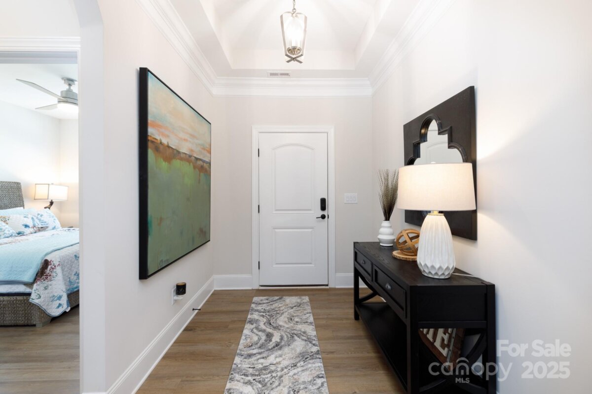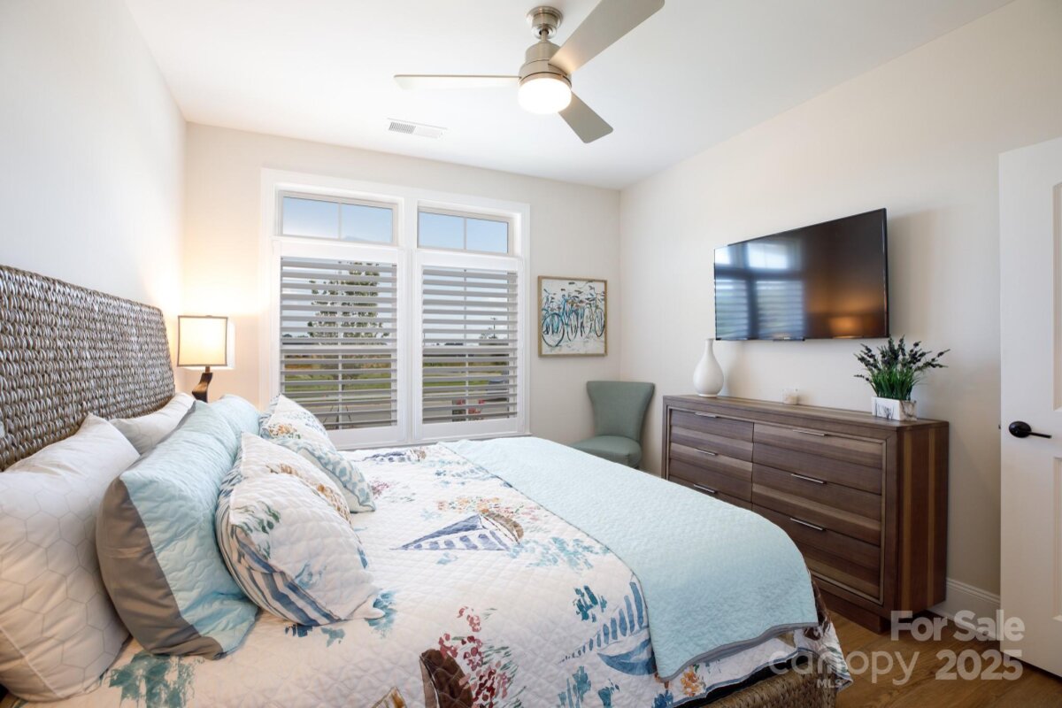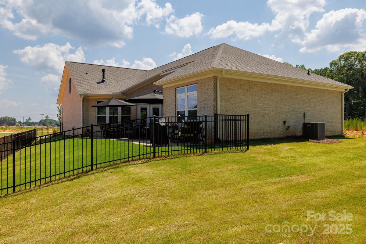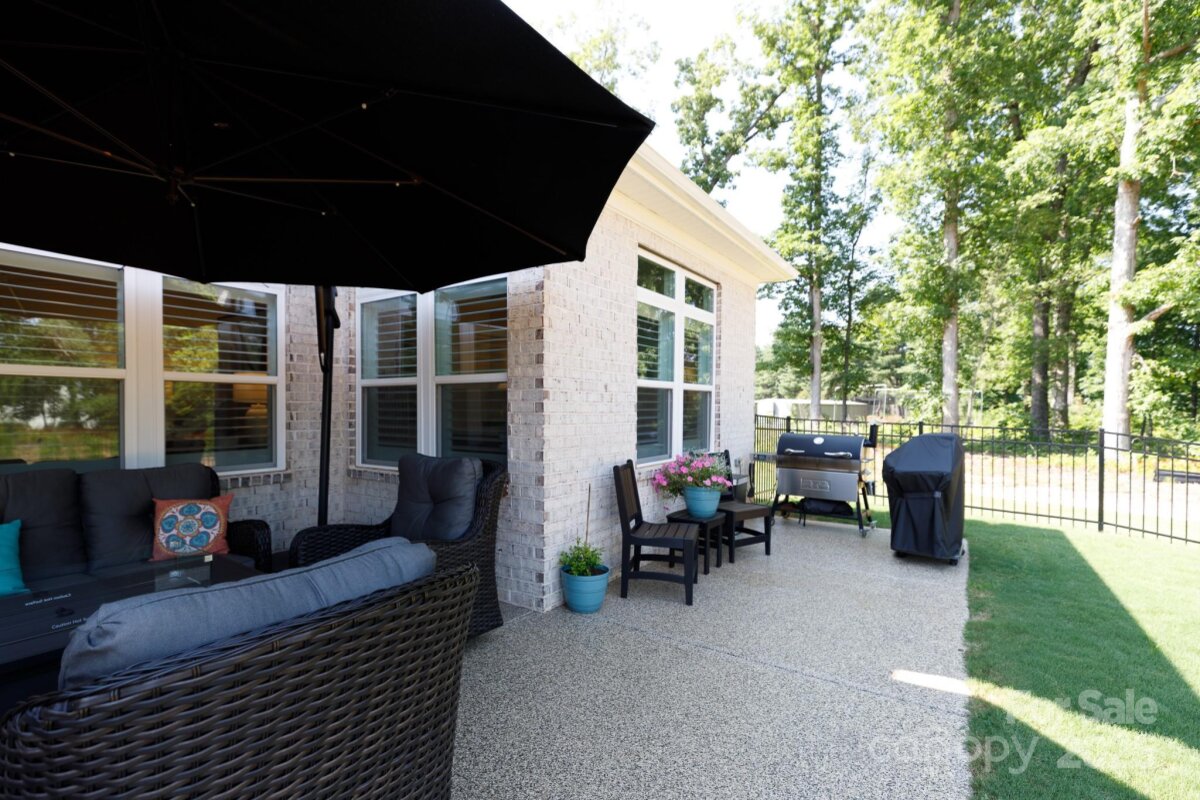 You don't have to be 55! While this is a 55+ Community, 20% of the community can fall under the age of 55. Welcome to carefree living in this stunning home. Packed with upgrades like LVP flooring runs throughout; 3½-inch plantation shutters, abundant recessed lighting, barn-style doors in the den, and Moen fixtures add designer polish in every room. Showcase kitchen with Quartz counters, a white Kohler porcelain apron sink, GE Profile appliances including gas cooktop, wall oven, and a wall microwave that doubles as a convection oven plus under-cabinet lighting and pull-out shelves in cabinets. Primary suite has a walk-in closet and a bath with a fully-tiled shower with bench and dual niches, comfort-height toilets, ceramic tile, and designer mirrors. Whole-home Coax and Cat 6 wiring. Outdoor retreat is a designer coated patio with privacy. All the luxury finishes you crave. Schedule your private tour and experience the perfect blend of style, convenience, and tranquility!