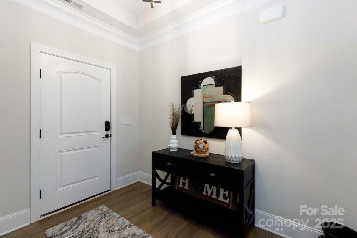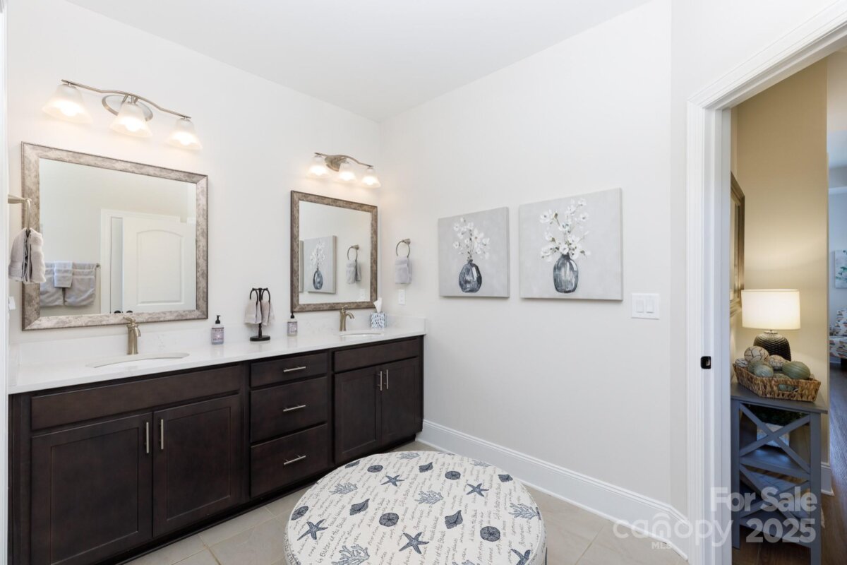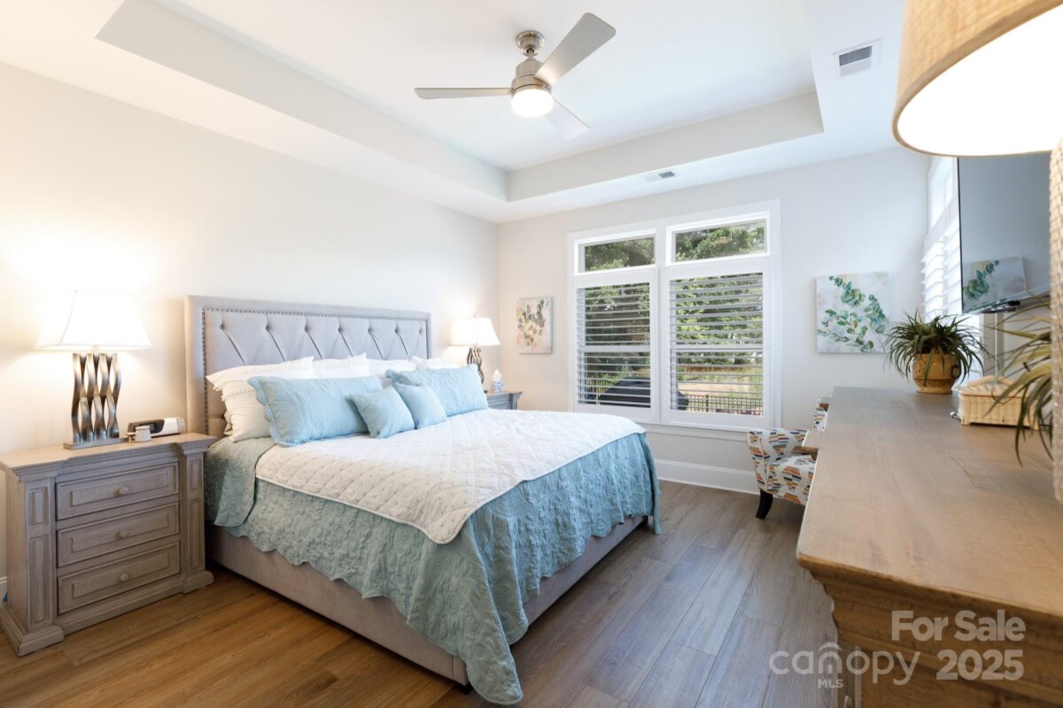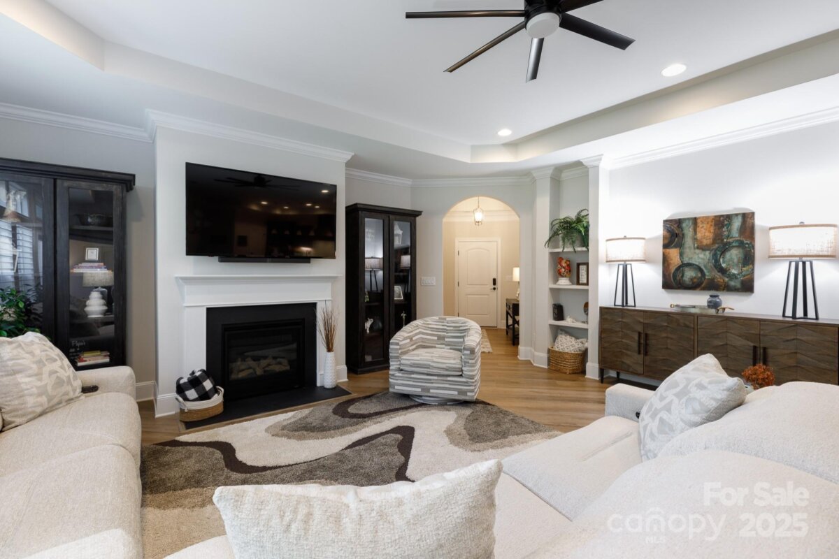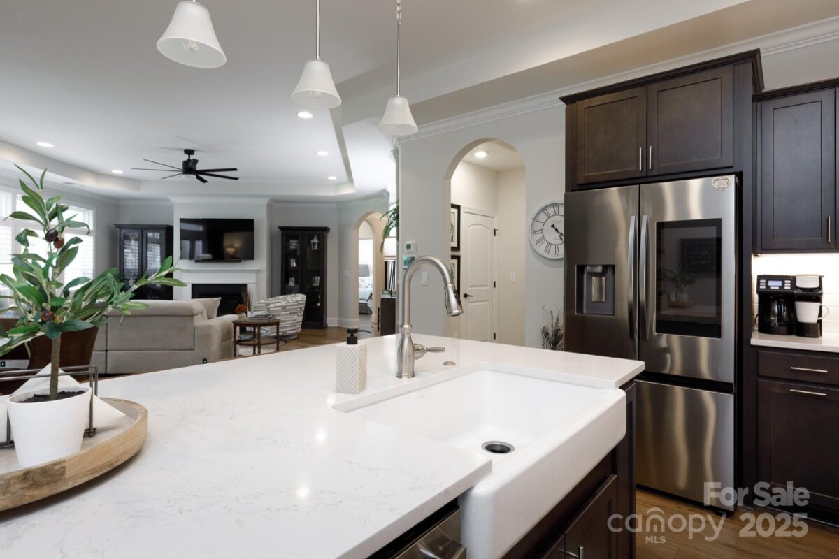 You don't have to be 55! While this is a 55+ Community, 20% of the community can fall under the age of 55. Welcome to carefree living in this stunning home. Packed with upgrades like LVP flooring runs throughout; 3½-inch plantation shutters, abundant recessed lighting, barn-style doors in the den, and Moen fixtures add designer polish in every room. Showcase kitchen with Quartz counters, a white Kohler porcelain apron sink, GE Profile appliances including gas cooktop, wall oven, and a wall microwave that doubles as a convection oven plus under-cabinet lighting and pull-out shelves in cabinets. Primary suite has a walk-in closet and a bath with a fully-tiled shower with bench and dual niches, comfort-height toilets, ceramic tile, and designer mirrors. Whole-home Coax and Cat 6 wiring. Outdoor retreat is a designer coated patio with privacy. All the luxury finishes you crave. Schedule your private tour and experience the perfect blend of style, convenience, and tranquility!