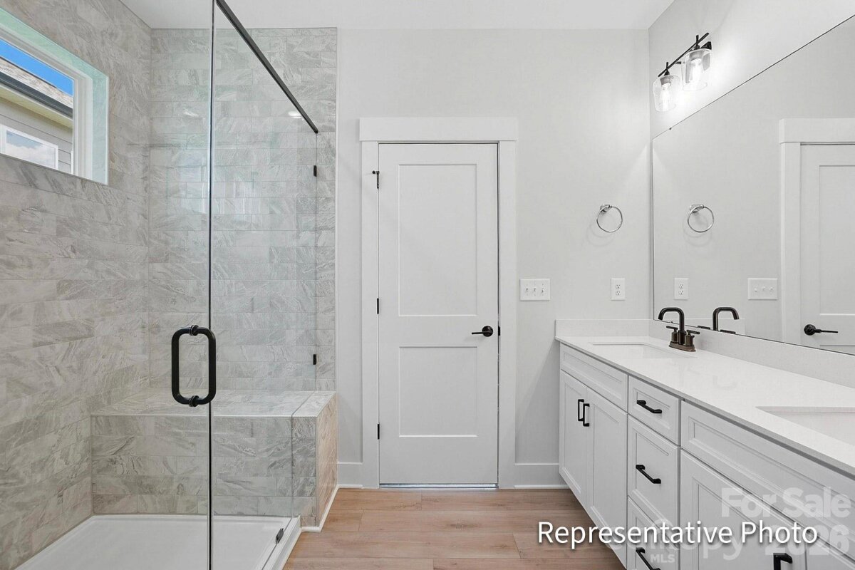 GRAND OPENING of Founders Landing, an age-restricted community close to shopping, dining and other conveniences. This 1.5-story Avery plan features 3 bedrooms, 3 full baths, and more than 2,500 square feet of living space. The designer kitchen has white cabinets, quartz counters, tile backsplash, stainless range hood, and stainless appliances, including a gas cooktop. The primary bath features a luxury shower with semi-frameless door, while the second bath on the main has a 4-foot, tiled shower, and the upstairs bath has a tub/shower combo. The primary bedroom and one other bedroom are on the main, and the upper floor has an additional bedroom along with a full bath, large loft & unfinished storage. This home also has an office with French doors. Make an appointment today to find out more about this exciting new community!