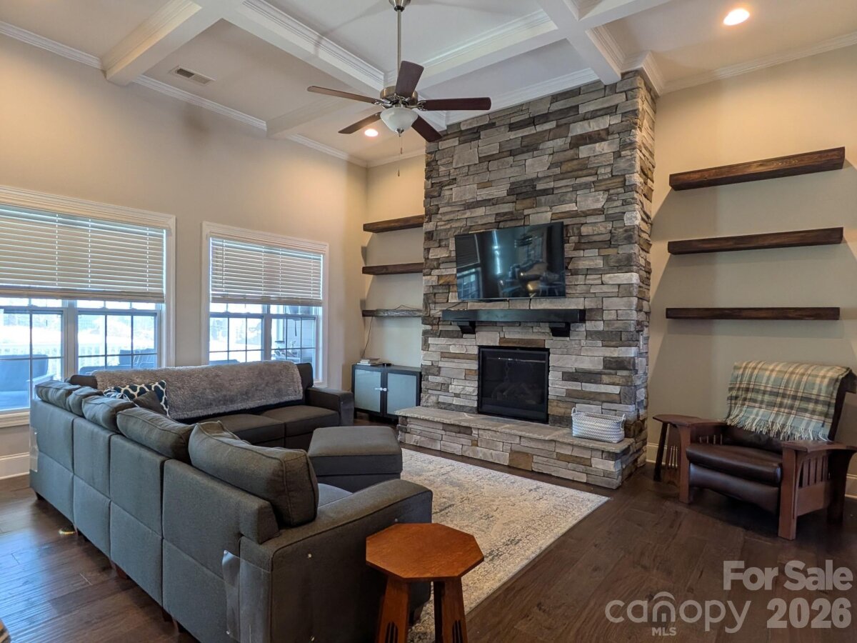 Timeless craftsmanship and modern comfort are highlighted in this beautiful 4 bedroom, 3.5 bath home in the popular Grantham neighborhood in Harrisburg. The open concept living space is the first of many thoughtful design elements. The chefs kitchen featuring a huge kitchen island, quartz countertops, butlers pantry and breakfast nook overlooks your living room with coffered ceiling, floor to ceiling stone fireplace hugged by earthy wood floating shelves. The main level primary suite offers a retreat style lay out with a sitting area, trayed ceiling and a primary bath that won’t disappoint! The main level continues behind a sliding barn door to 2 additional bedrooms and private staircase leading to another bedroom and full bathroom and large bonus room. A wonderful screened porch with tv and projector make for great entertaining or relaxing options! Situated less than a mile from I-485 and minutes from the heart of Harrisburg, this home blends architecture with luxury and offers both comfort and character in a perfect location!