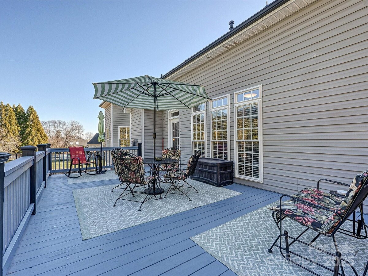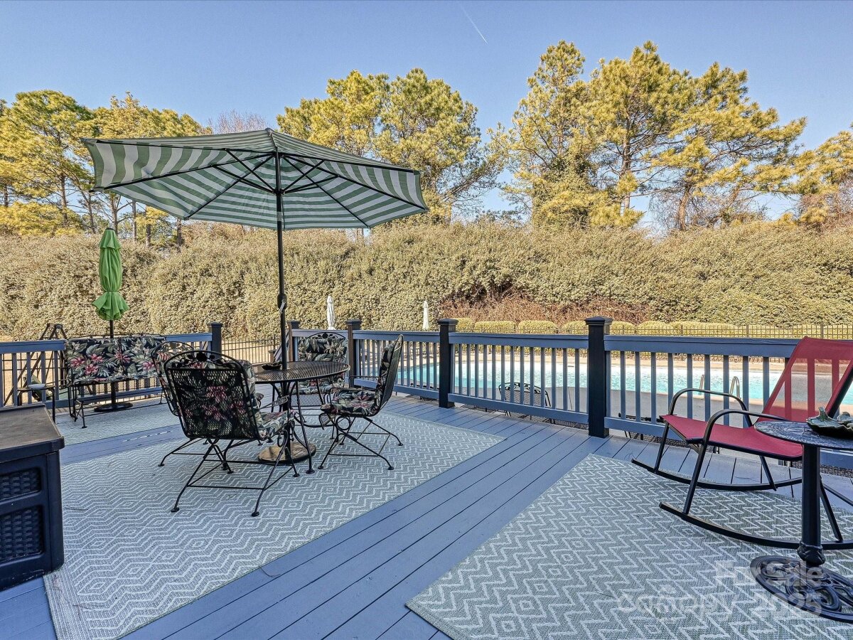 Immaculate custom brick ranch home for sale in desirable Harrisburg, NC, offering true move-in ready condition and an exceptional outdoor living experience. This well-maintained home features a 22,000-gallon inground pool, expansive patio, and a large deck replaced in 2018, all overlooking a beautifully landscaped backyard with an established privacy screen, ideal for entertaining or relaxing at home. Inside, the open floor plan showcases hardwood floors, abundant natural light, and updated interior paint completed in 2020. The desirable split bedroom layout provides added privacy. The kitchen is designed for both function and entertaining, featuring granite countertops, tile backsplash, a large bar area, and oak cabinetry with pull-out shelving. The oversized primary suite includes a bay window sitting area perfect for a reading nook or quiet retreat. The primary bathroom offers a dual vanity, jetted tub, and walk-in shower. Upstairs, a spacious bonus room includes a full bathroom, walk-in closet, and walk-out attic storage, making it ideal for a guest suite, home office, or separate living arrangement. Major system updates add peace of mind, including two HVAC units replaced in 2020, a water heater replaced in 2023, and a new roof in 2024. The home also has an existing transferable termite bond and a crawl space with vapor barrier. This property combines quality construction, thoughtful updates, and sought-after features in one of Harrisburg’s most popular locations, close to shopping, dining, and commuter routes.