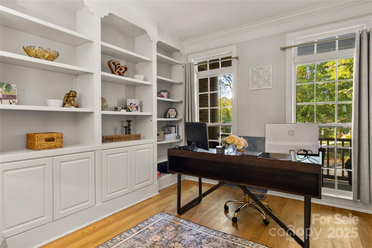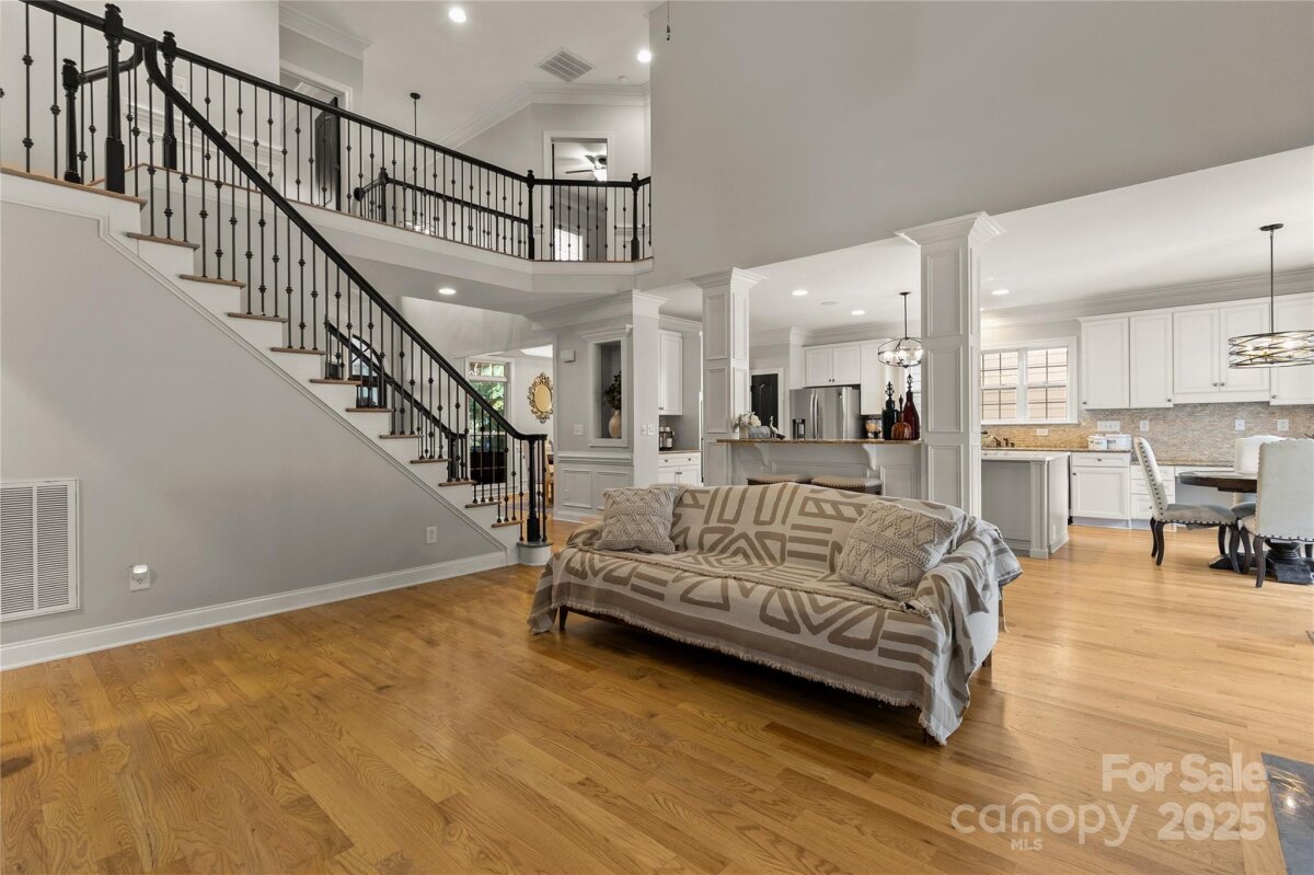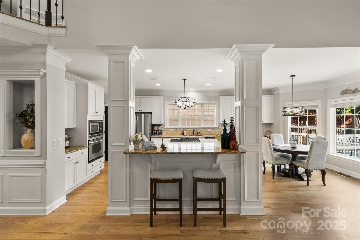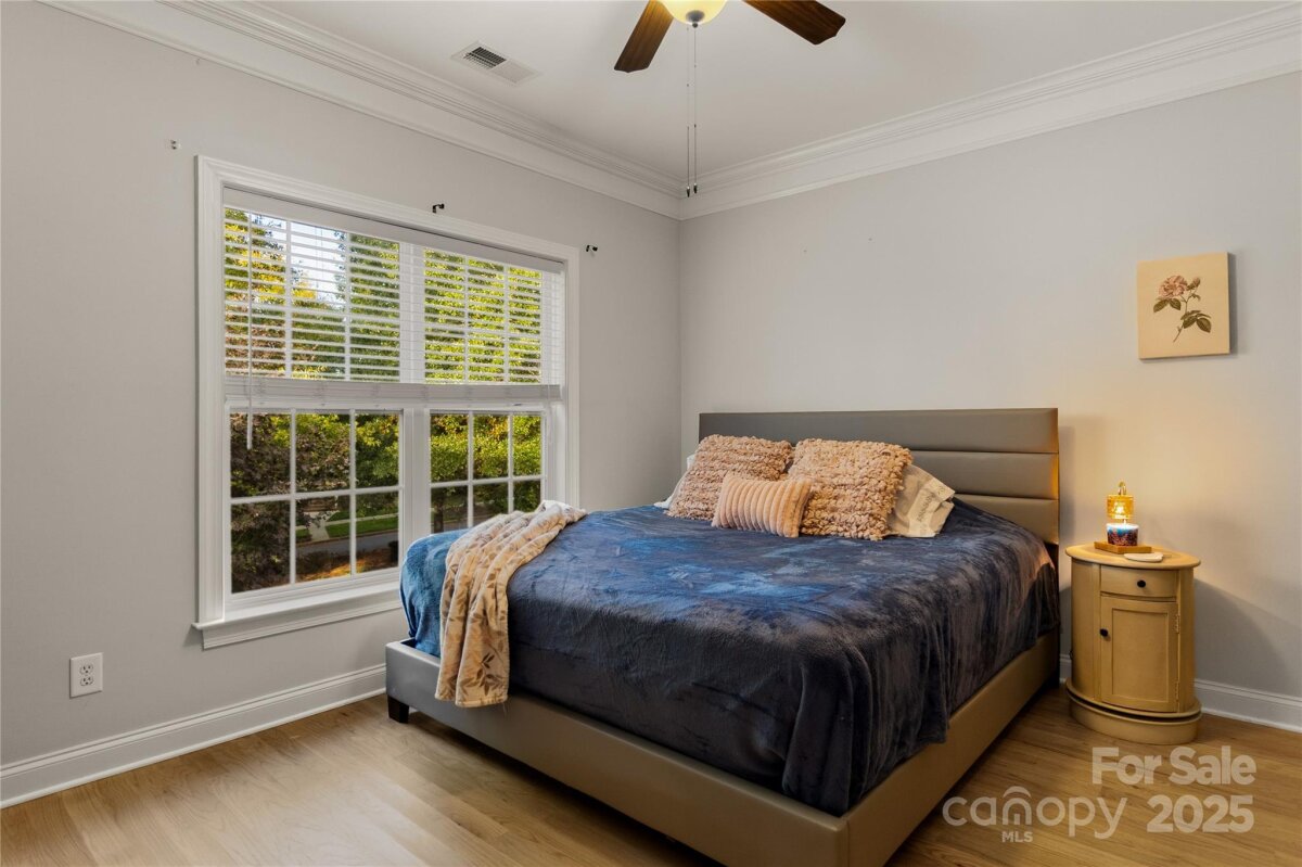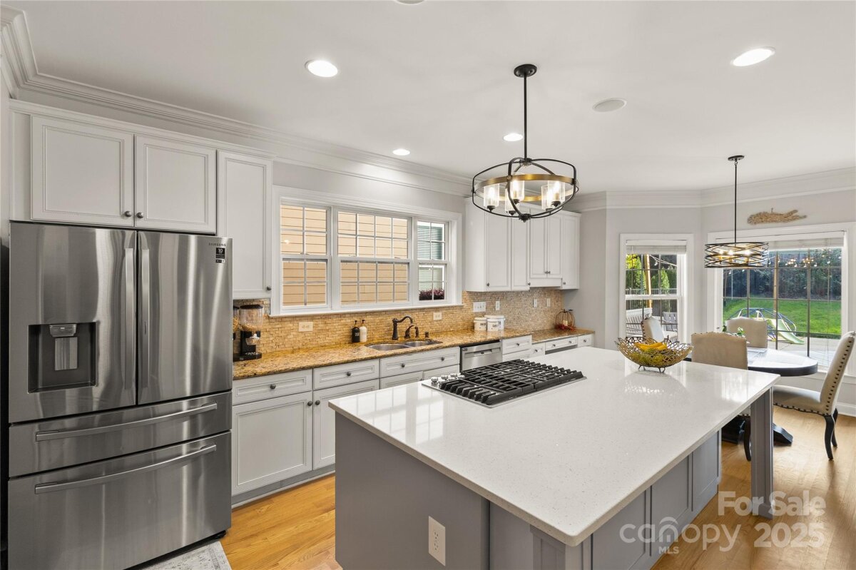 Welcome to this elegant 4-bedroom, 3.5-bath brick home offering 3,596 square feet of beautifully designed living space. Perfectly positioned on a corner lot with a fenced yard, this home blends luxury, comfort, and functionality. Step through the double-door entry into a grand foyer showcasing soaring ceilings and hardwood floors throughout the main living area. The primary suite on the main level offers convenience and privacy, while the dedicated office with French doors provides an ideal workspace. The gourmet kitchen is a chef’s dream—featuring a sprawling island, gas range, premium finishes, and open flow to the living and dining areas. A see-through fireplace elegantly connects the two-story great room and sunroom, adding warmth and ambiance. The dining room with trey ceiling is perfect for hosting family or formal gatherings.Upstairs, you’ll find 3 spacious secondary bedrooms, a jack-and-jill bathroom, and a huge bonus room with attached full bathroom which makes it ideal for a media space, playroom, or fitness area. Don't miss the massive storage closet too. Enjoy mornings on the cozy front porch overlooking tree-lined streets, or entertain outdoors on the sprawling back deck. You'll love the abundance of parking options, including a 3-car garage and additional driveway. The Vermillion community offers resort-style amenities including an inground pool, clubhouse, playground, dog park, picnic area, community garden, and walking trails. This exceptional home combines timeless craftsmanship with modern comfort—all in one of the area’s most desirable neighborhoods.