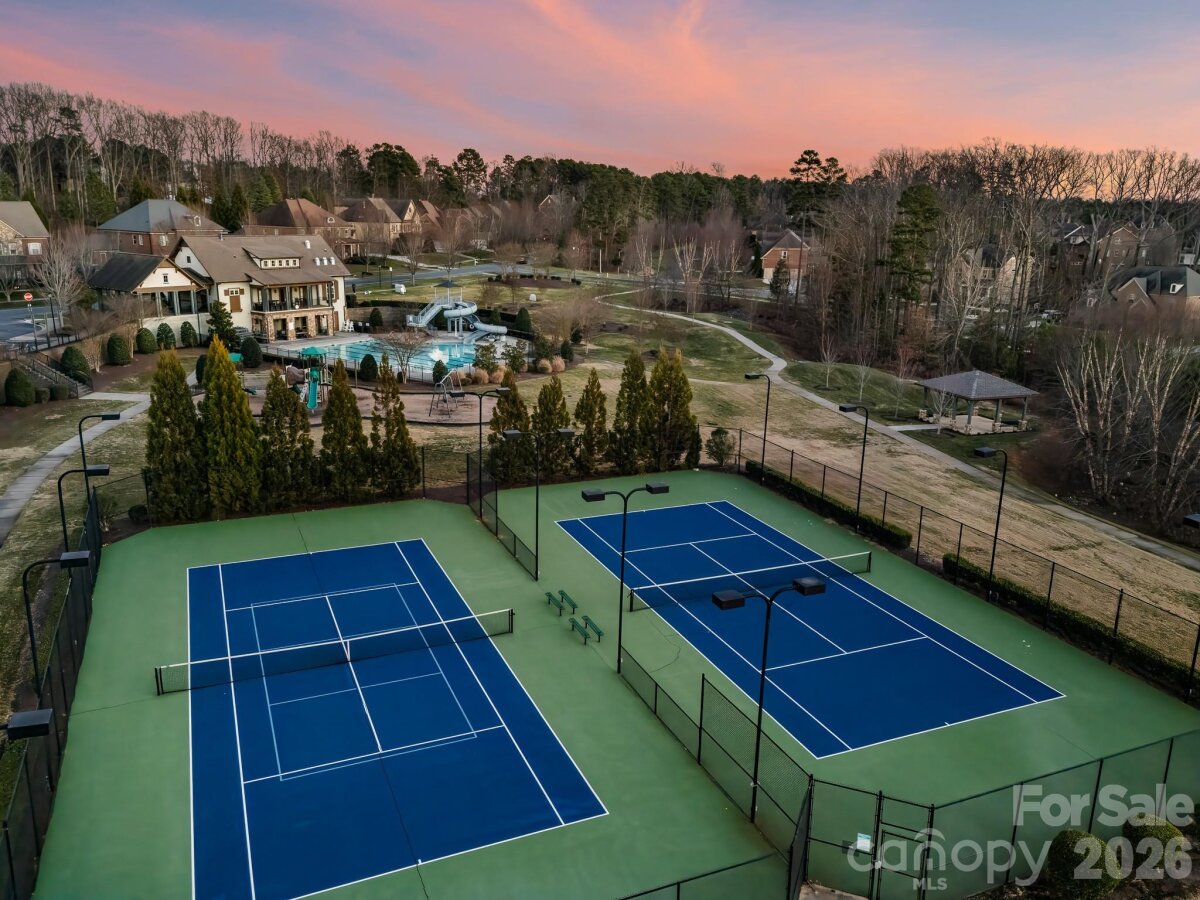 Welcome home to this exceptional John Wieland residence, perfectly tucked on a quiet cul-de-sac with its own charming pocket park. Set on one of Olmsted’s most private lots—over half an acre backing to protected woods—this home offers year-round tranquility and a truly picturesque setting. The current owners have taken meticulous care and made meaningful upgrades throughout. The screened porch has been transformed into a heated, stunning 4-season sunroom featuring remote-controlled shades, and breathtaking views of the trees and your beautiful, private yard. Inside, thoughtful design meets elevated finishes. The main level offers open, light-filled living spaces and a chef’s kitchen with gas cooking, stainless steel appliances, granite countertops, and soft-close drawers. Upstairs, you’ll find four bedrooms including a serene primary suite, along with a loft and a convenient upper-level laundry room. The fully finished basement with a full bath offers exceptional flexibility, ideal for fitness, media, hobbies, or multigenerational living. TVs convey in both the large recreation room and the bedroom. An additional flex room features plumbing already in place for a future wet bar. With walk-out access to the backyard, this level is both functional and inviting for guests. Smart-home features, remote-operated blinds throughout the house, well-chosen upgrades and all the space you need to make daily living effortless. Residents of Olmsted enjoy resort-style amenities including a clubhouse, fitness center, pool, playground, tennis courts, walking trails, and vibrant community events—one of the many reasons this neighborhood remains among Huntersville’s most desirable. This is a rare opportunity to own a beautifully maintained, move-in-ready home on one of the community’s premier lots.