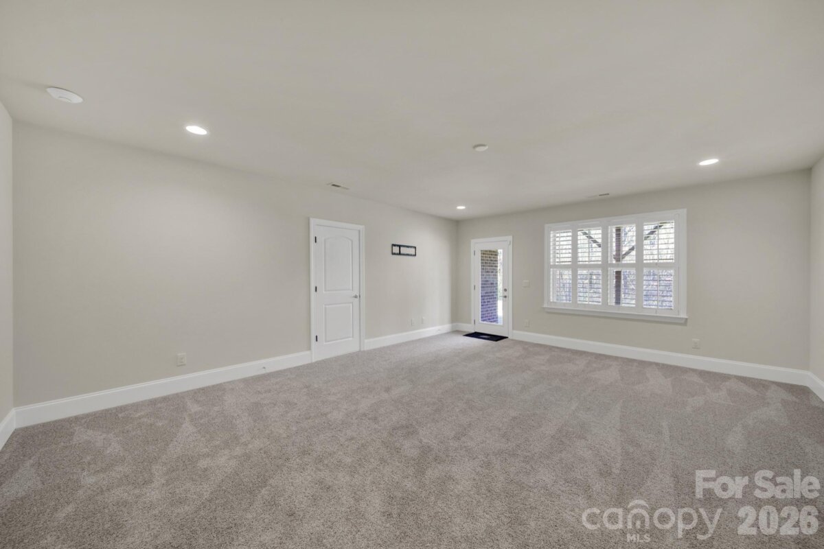 Looking for a full brick basement home that’s better than new? This stunning home combines elegance, flexibility, and value—without new construction pricing. It’s move-in ready with premium finishes throughout. Set on a private, landscaped lot, the home features a fully finished walkout basement, 10-foot ceilings and storage galore. The chef’s kitchen boasts an expansive quartz island, smart appliances, soft-close cabinetry, and a custom pantry. Main-level highlights include a formal dining room, private office, guest suite, coffee bar, and mudroom with built-ins. The oversized three-car garage offers epoxy floors, storage, and upgraded lighting. Outdoor living shines with a 400+ sq ft deck perfect for entertaining. Upstairs, the luxurious primary suite includes a spa-like bath and custom closet, plus three bedrooms, three full baths, a media room, and dream laundry room. The walkout basement adds a fitness room, guest suite, media space, and 600+ sq ft of storage—with plumbing ready for a second kitchen and laundry (ideal for multi-generational living or private guest quarters). Located in a resort-style community with pool, courts, lake, trails, and easy access to Birkdale, Concord Mills, Uptown Charlotte, and Charlotte Douglas airport, this home delivers luxury, convenience, and peace of mind.