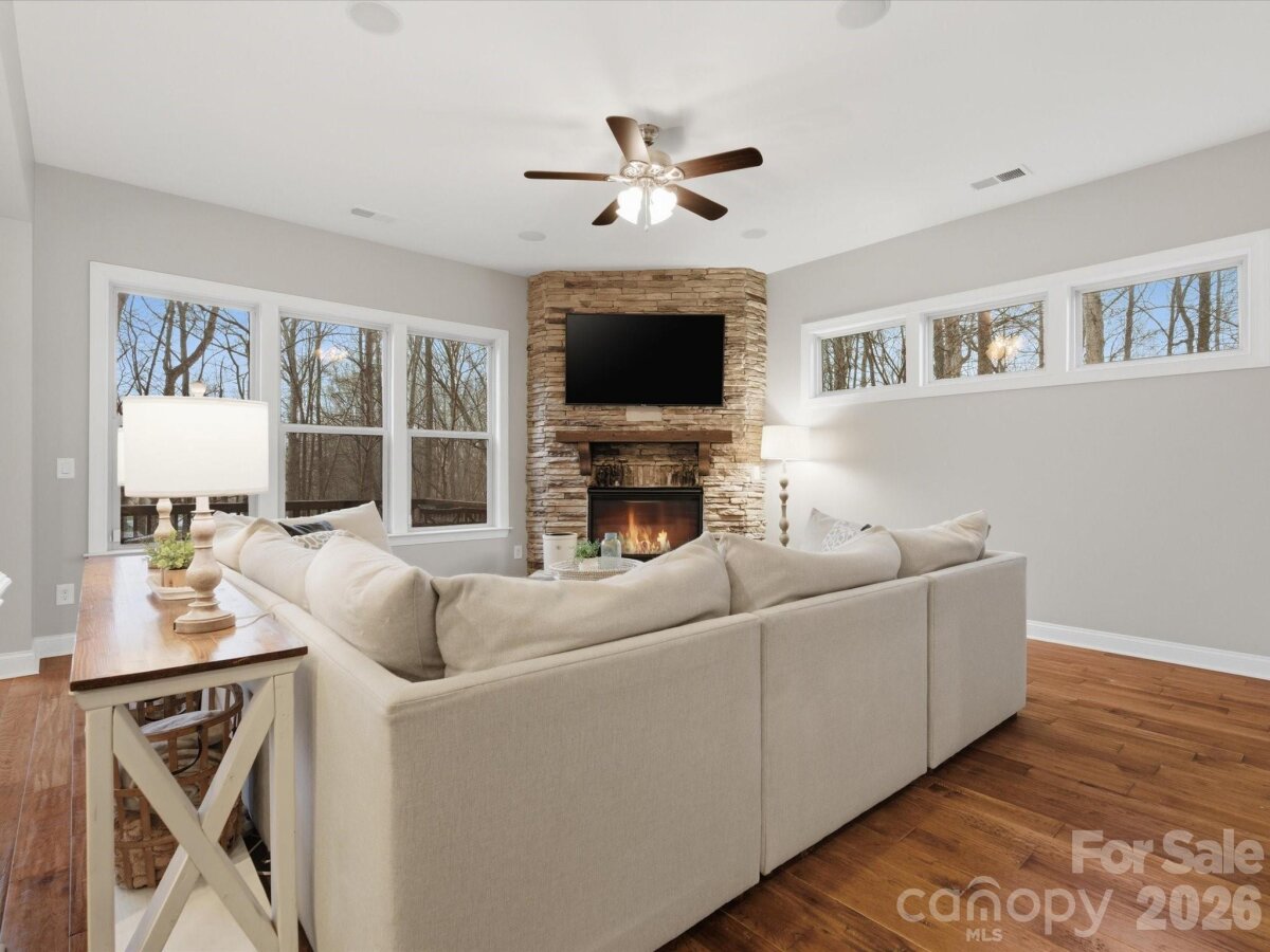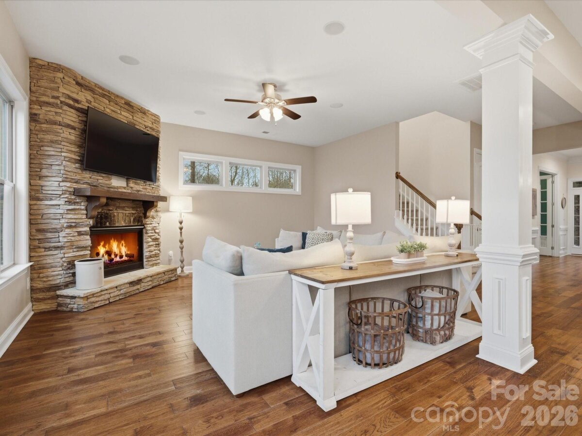 Stunning home in the highly sought-after Barber Rock community, offering an unbeatable location in the heart of Indian Land just minutes from Ballantyne and Fort Mill. Enjoy convenient access to top-rated Indian Land schools, along with premier dining, shopping, and everyday amenities nearby. This beautifully maintained home features a finished basement and a private setting with mature trees surrounding the property. From the moment you step inside, you’ll appreciate the open floor plan, rich hardwood floors, and thoughtful design throughout. The main level offers a spacious living area with a gas fireplace, a formal dining room, office, breakfast area, and a gorgeous kitchen complete with a gas cooktop & oven, kitchen island, pantry, and all stainless appliances. Refrigerator, washer, and dryer are included for added convenience. Upstairs, the expansive primary suite features an en-suite bath with a garden tub, walk-in shower, and generous walk-in closet. Three additional bedrooms and a bonus room provide plenty of space for family, guests, or recreation. The finished basement adds even more versatility with a bedroom, full bath, and additional living space, plus a dedicated movie area complete with a projector and screen. Step outside to enjoy a welcoming covered front porch, back patio, and built-in fire pit, ideal for relaxing or hosting gatherings year-round. Additional highlights include a 3-car garage, surround sound, and included security system equipment. Top tier community amenities include a clubhouse, outdoor pool, playground, and walking trails. Don’t miss your chance—schedule your showing today!